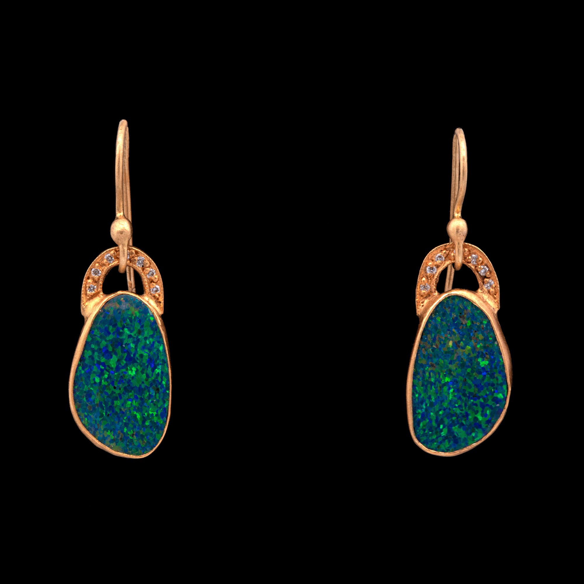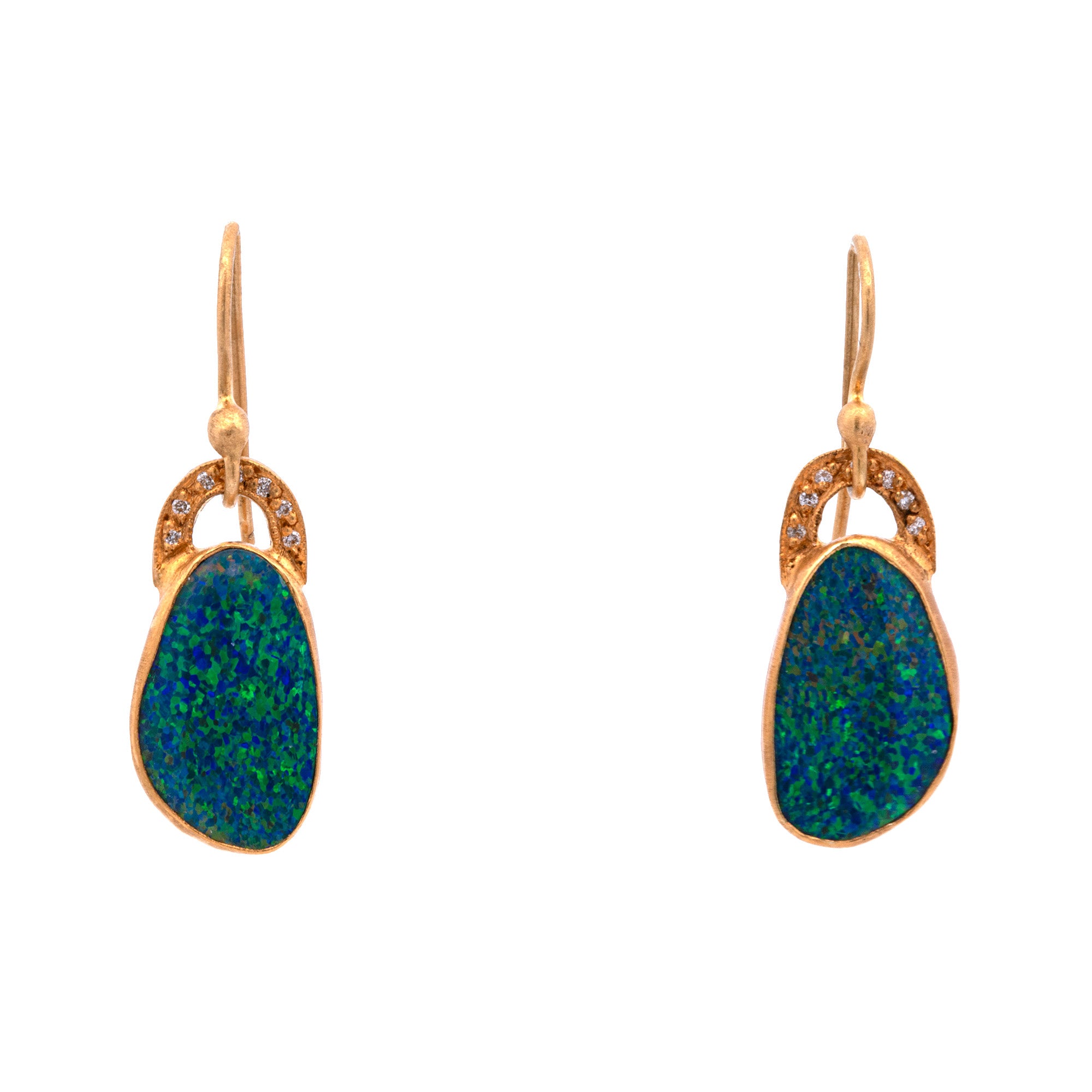 18K And 24K Yellow Gold Opal And Diamond Dangle Earrings