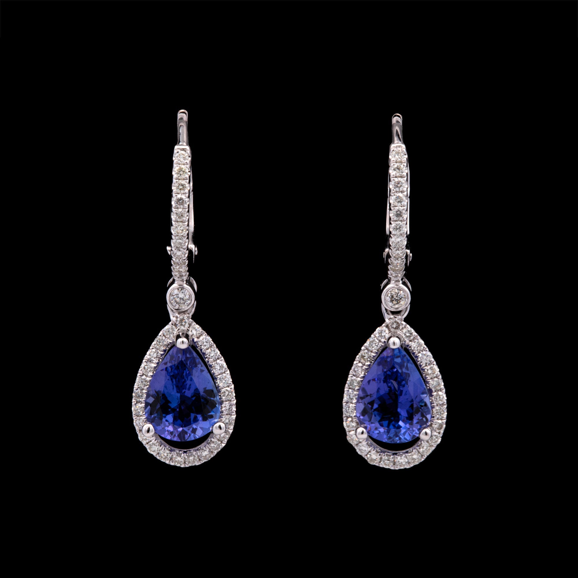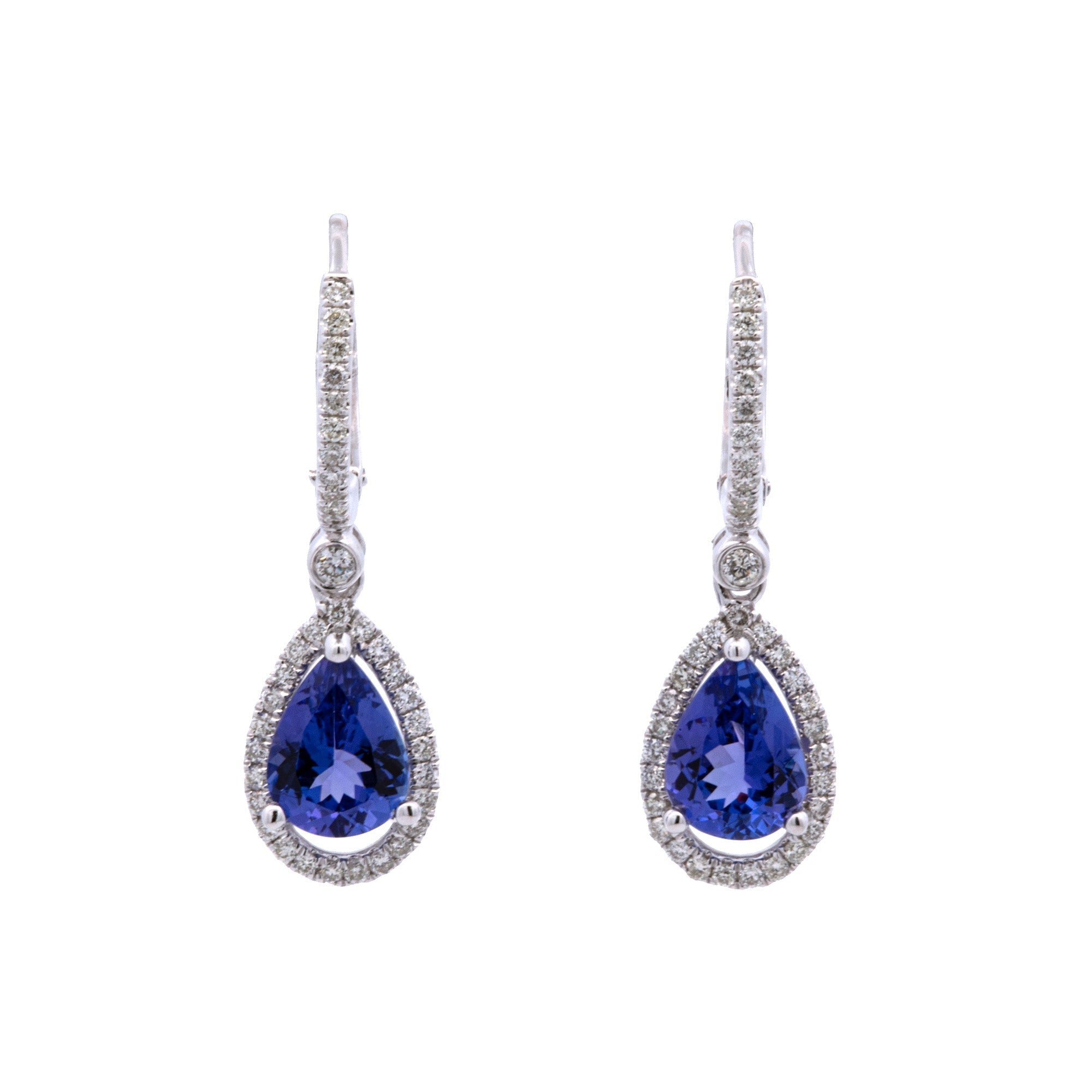 14K White Gold Tanzanite And Diamond Drop Earrings