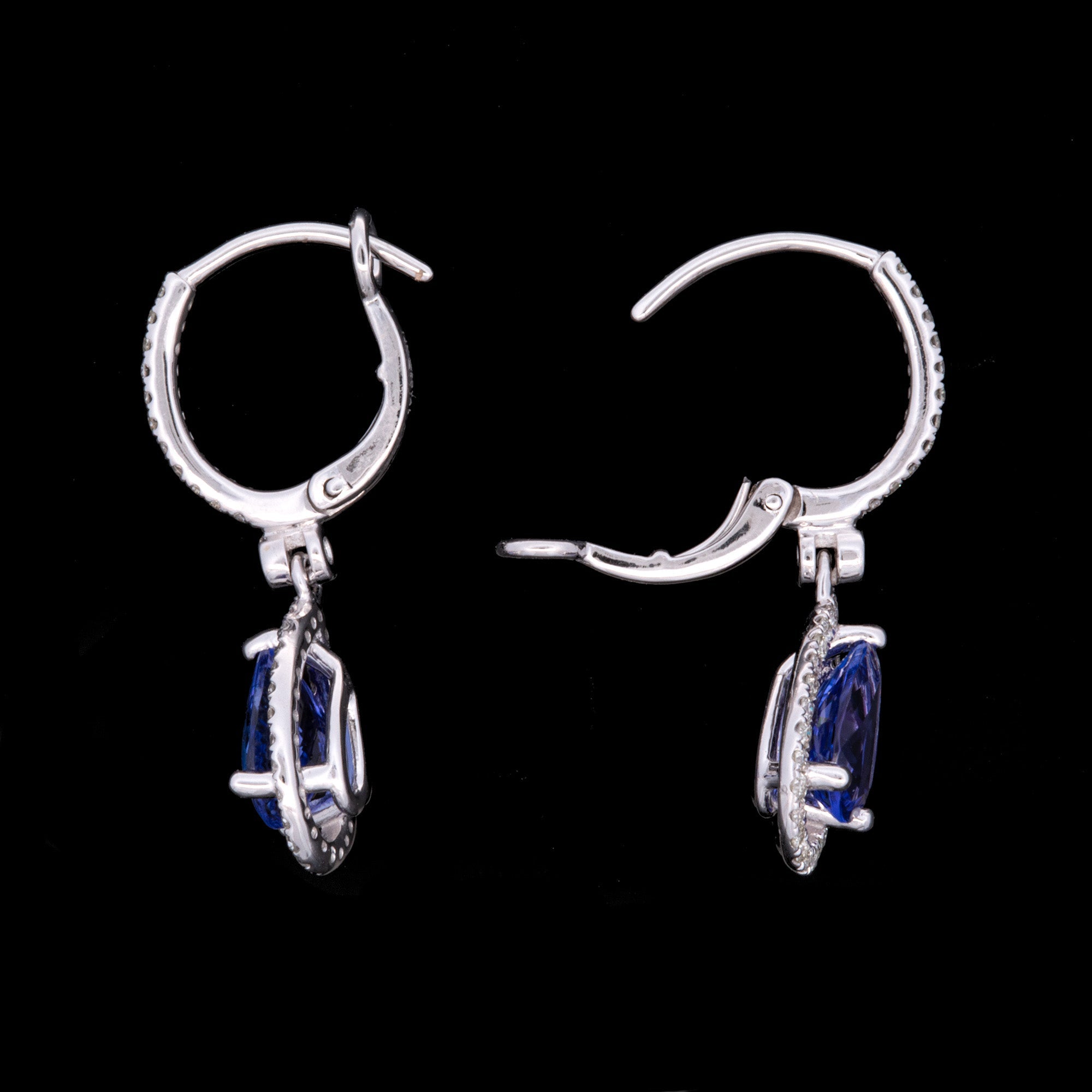 14K White Gold Tanzanite And Diamond Drop Earrings. Tanzanite's Weigh A Total Of 2.20 Carats. Diamonds Weigh A Total Of 0.42 Carats.
