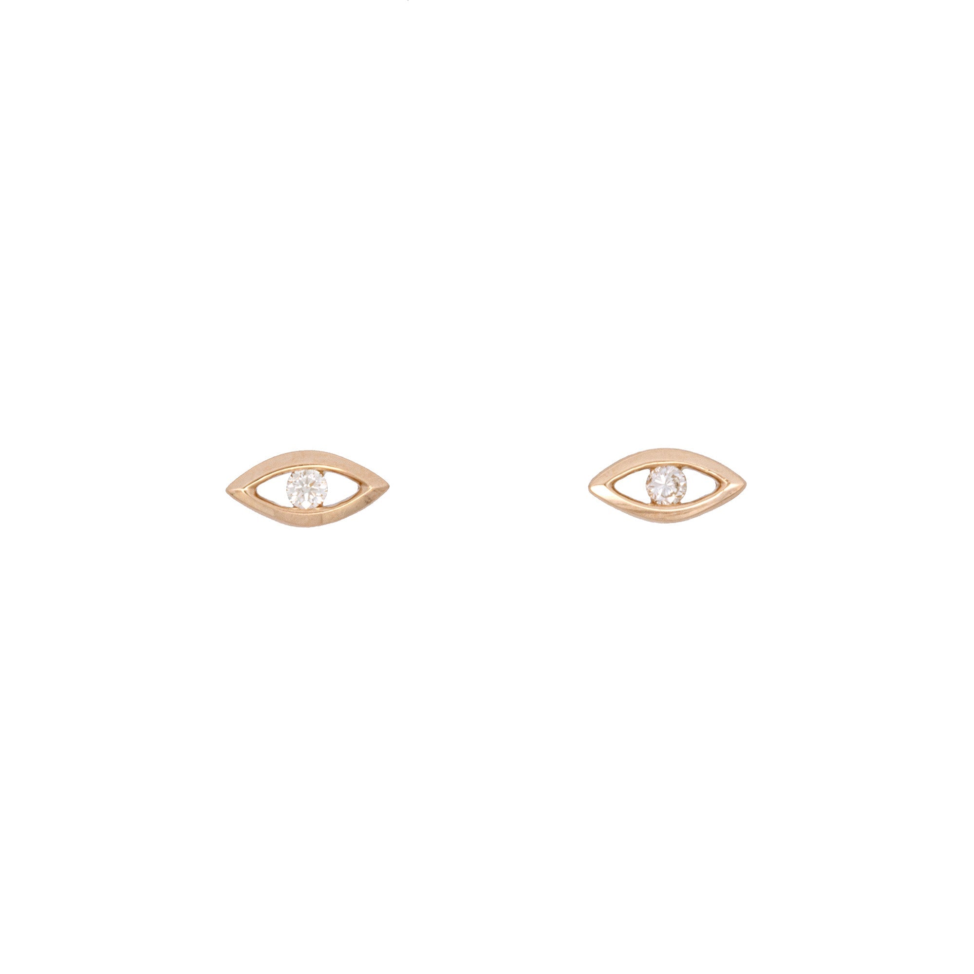 14K Yellow Gold Diamond Eye Stud Earrings. Diamonds Weigh A Total Of 0.07 Carats.