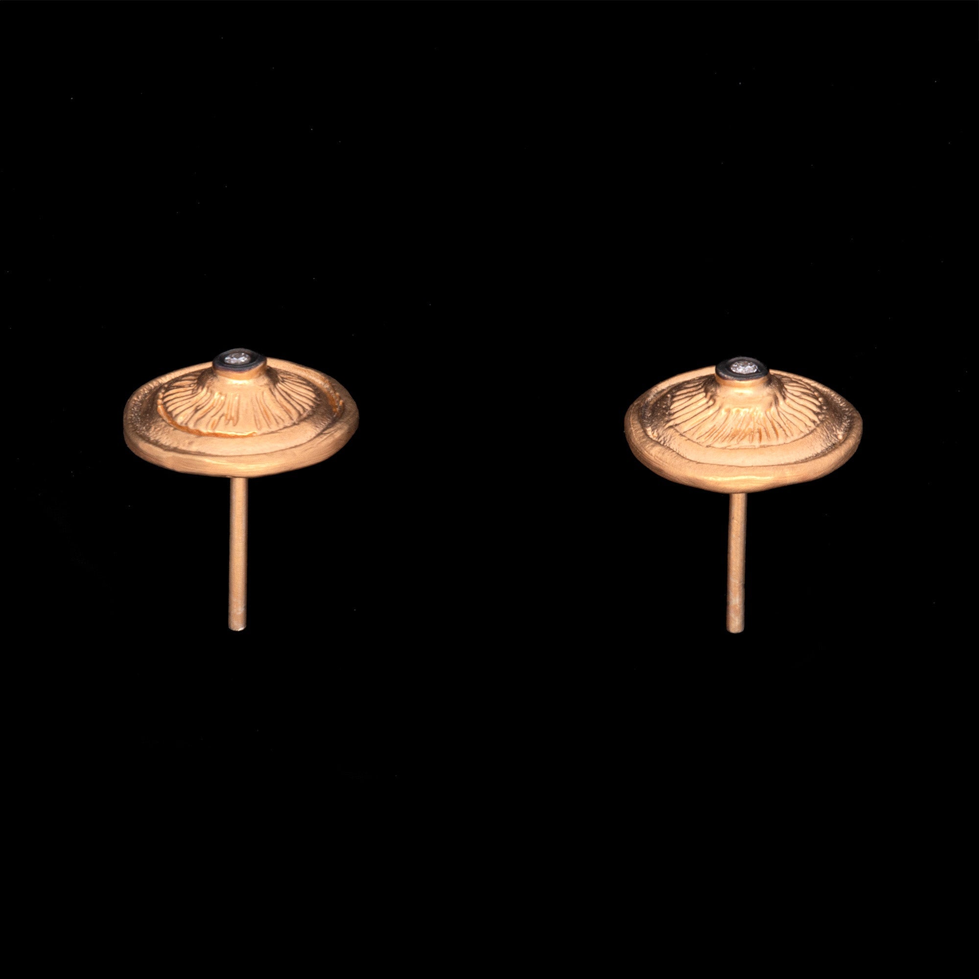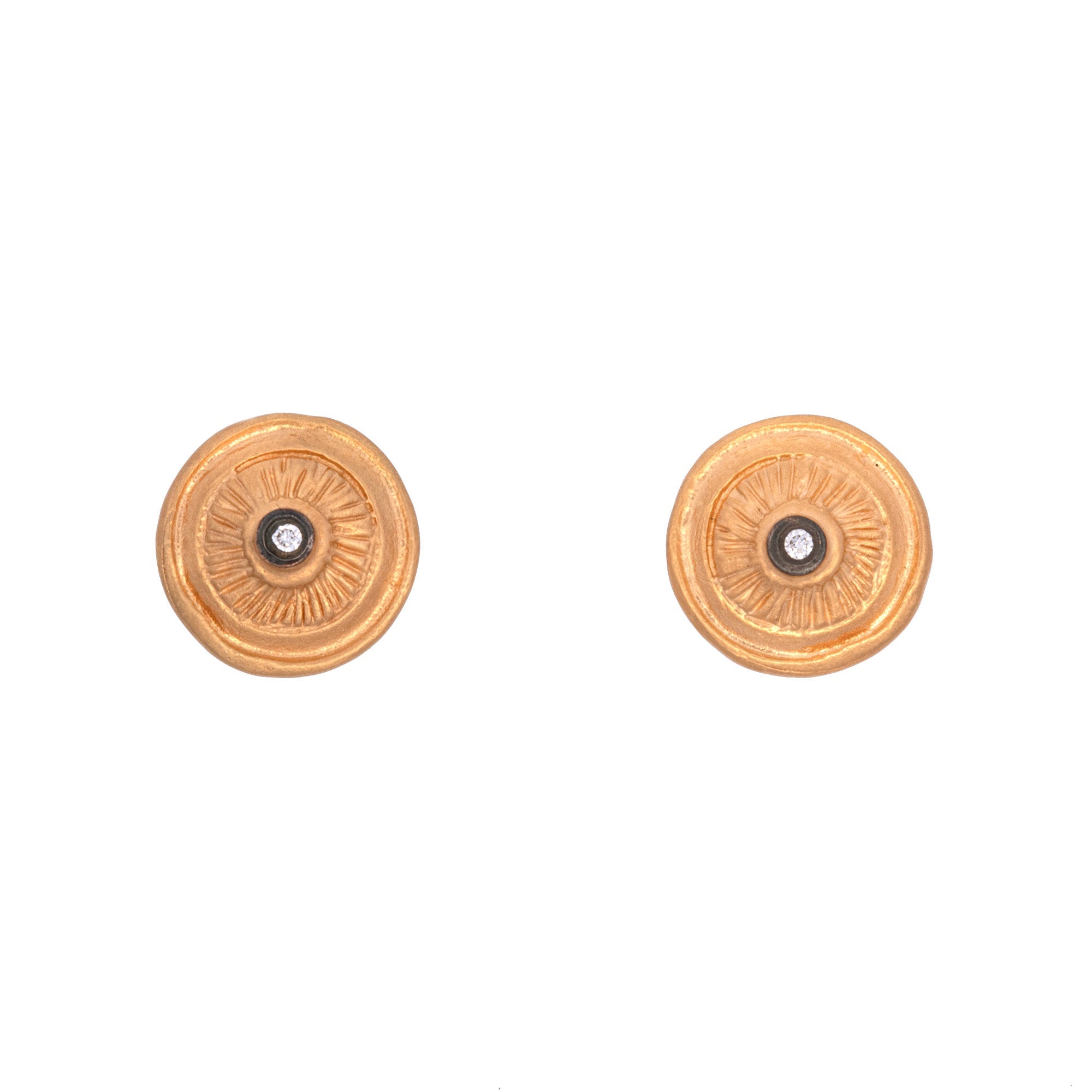 Sterling Silver And 24K Yellow Gold Classic Circular Stud Earring With Diamond Accent.