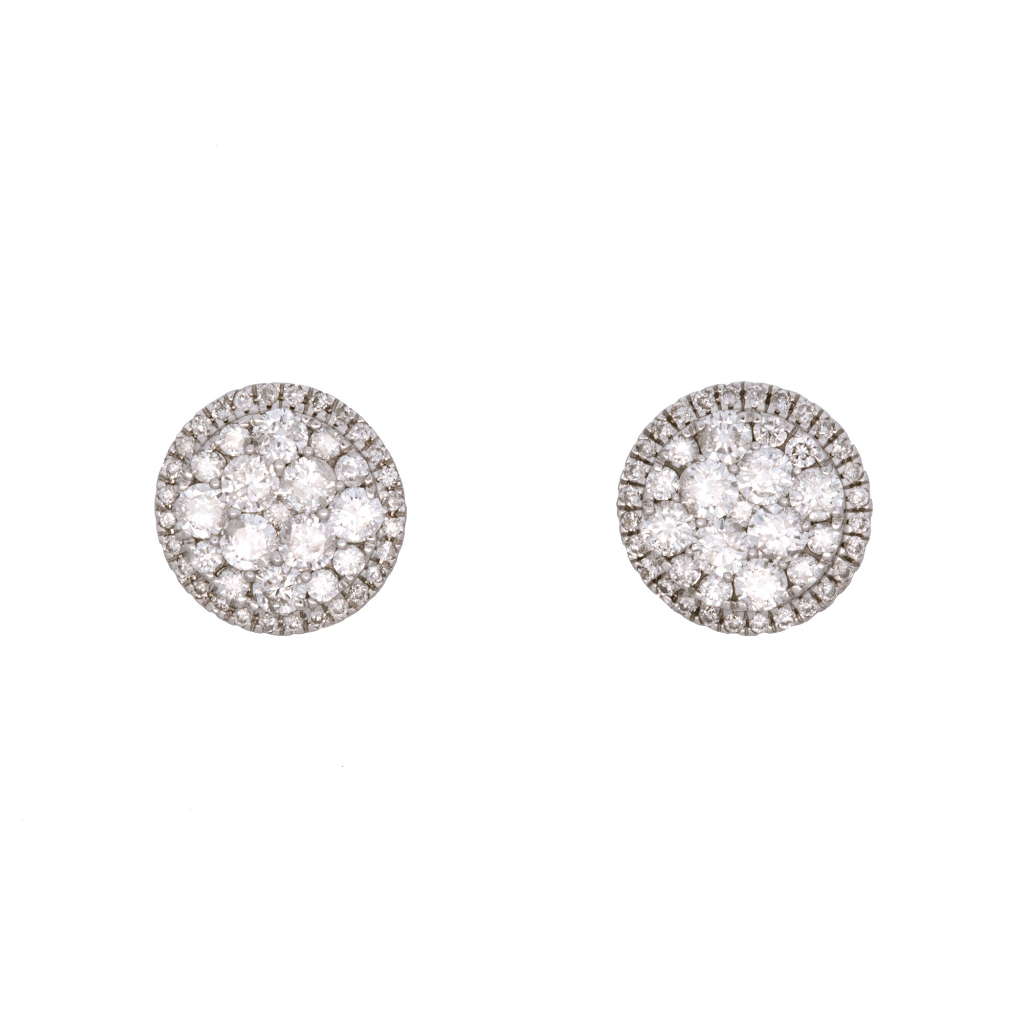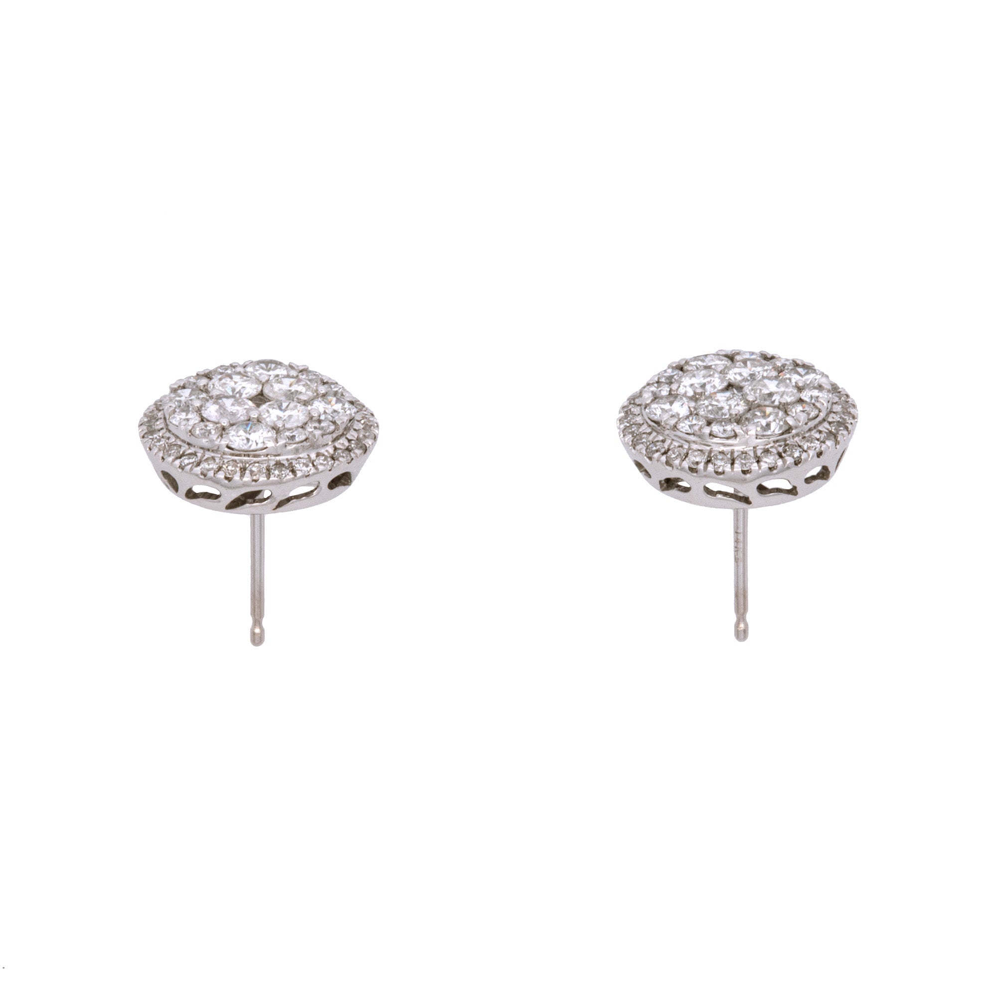 14K White Gold Cluster Diamond Stud Earrings With Diamond Halo. Diamonds Weigh A Total Of 1.40 Carats.