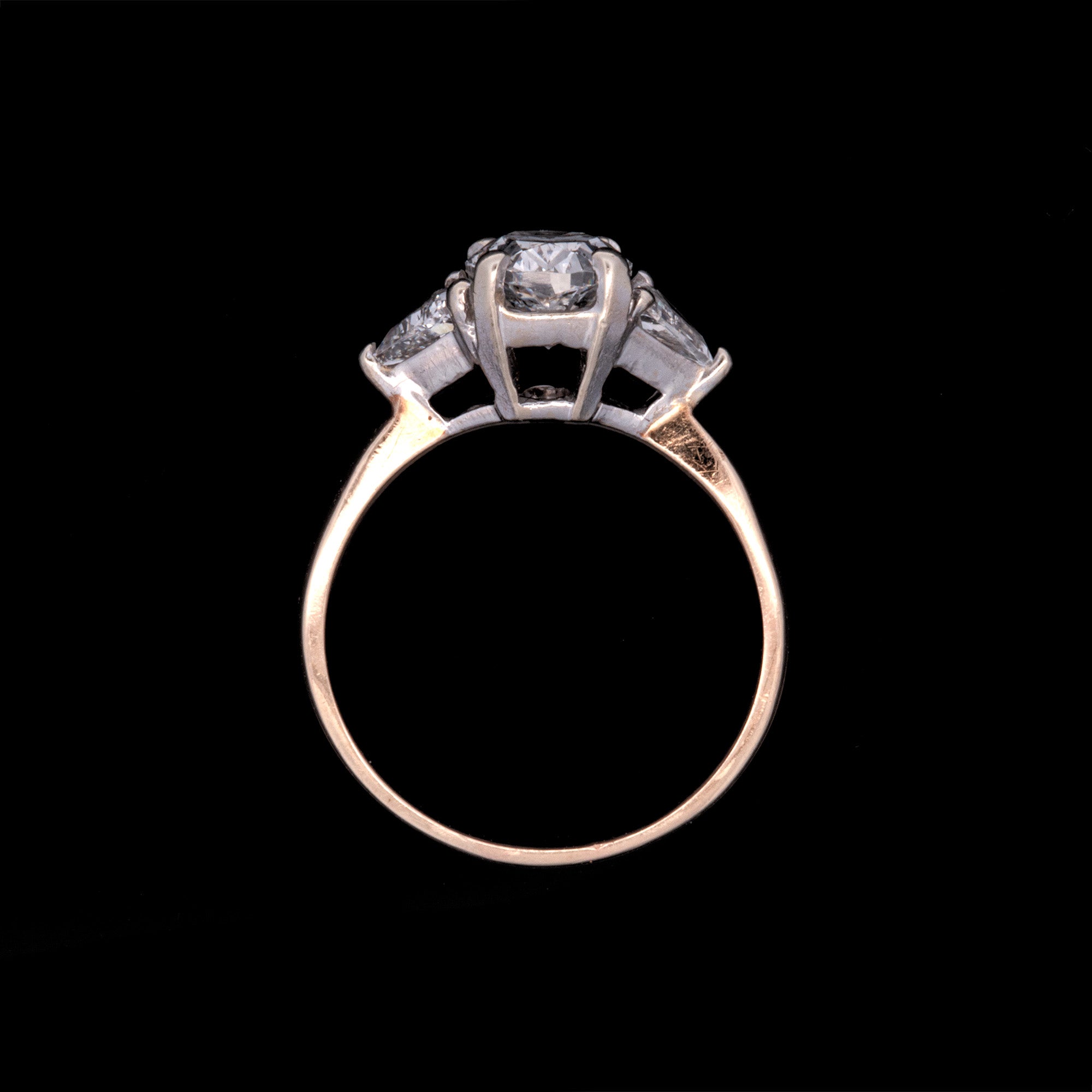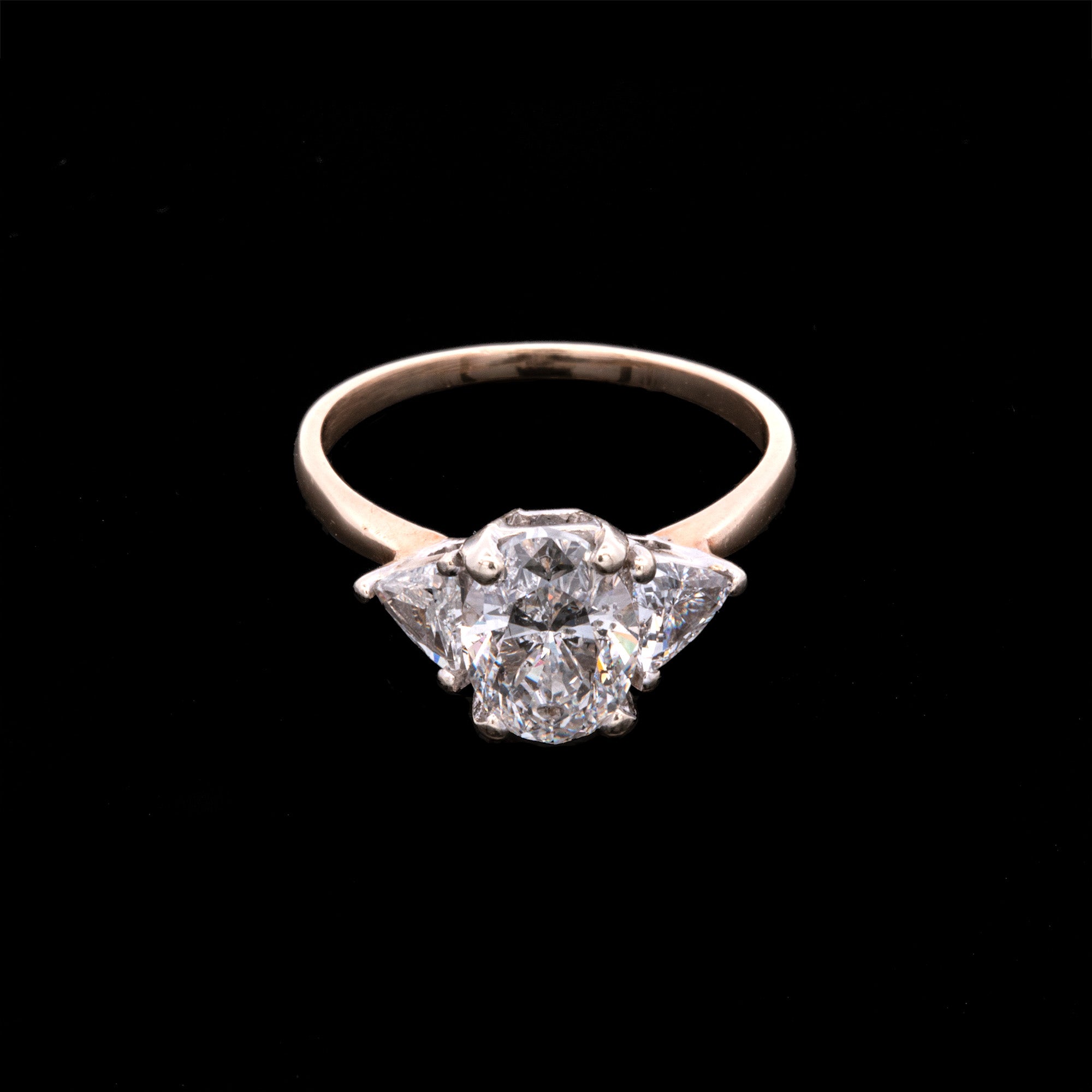 14K Yellow And White Gold Oval And Trillion Diamond Ring