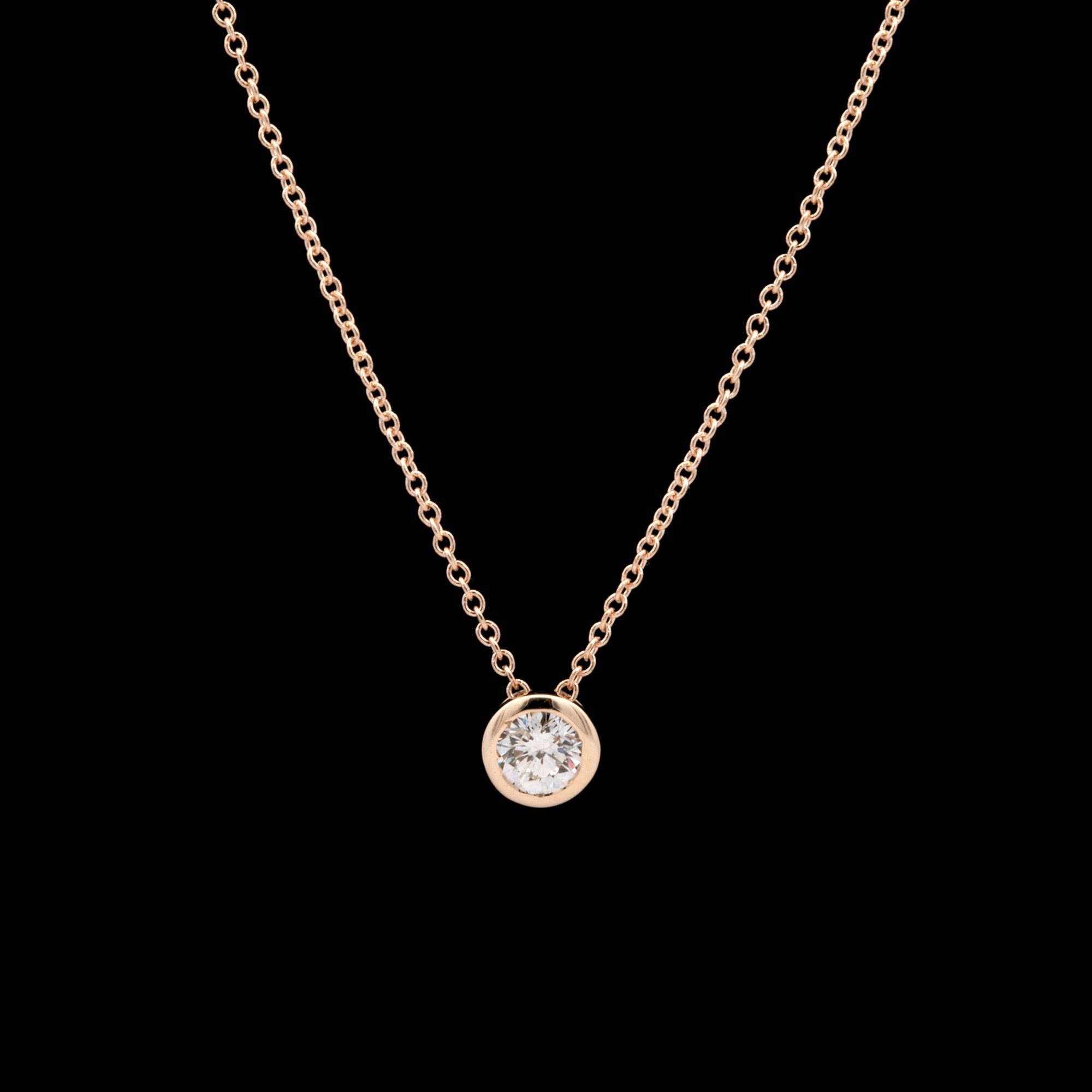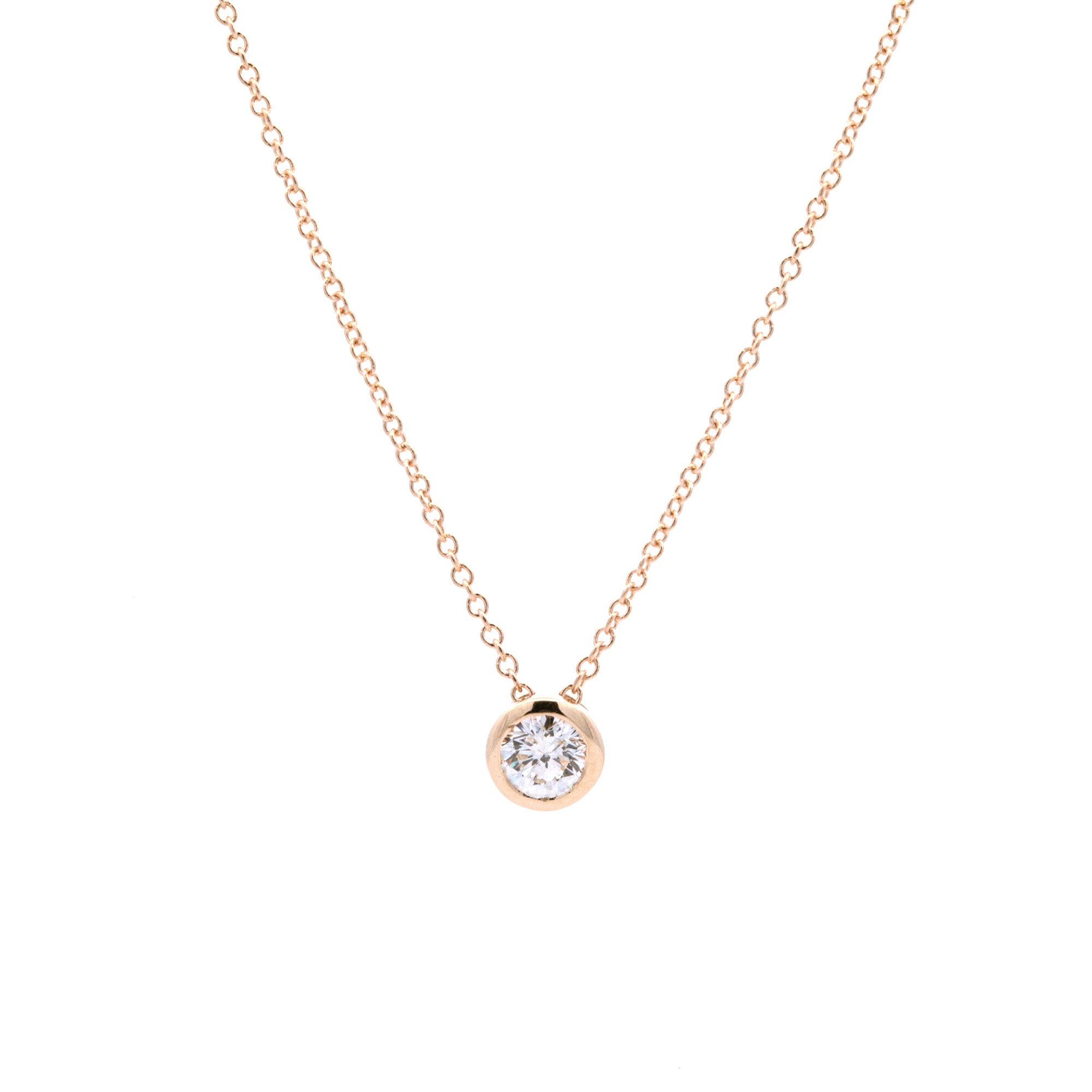 14K Yellow Gold Bezel Set 0.35ctw Round Brilliant Cut Diamond Pendant With 18 Inch 1mm Cable Link Chain