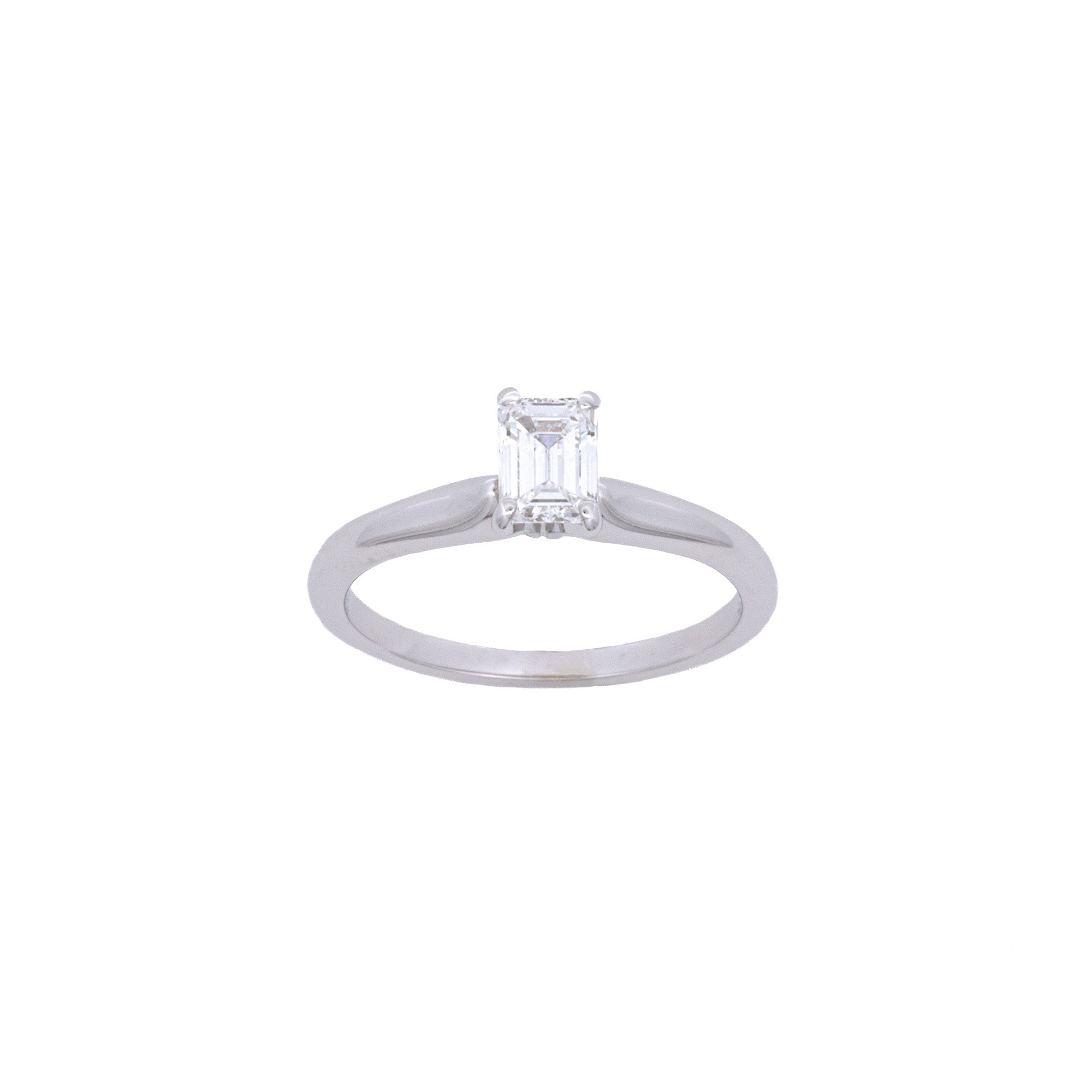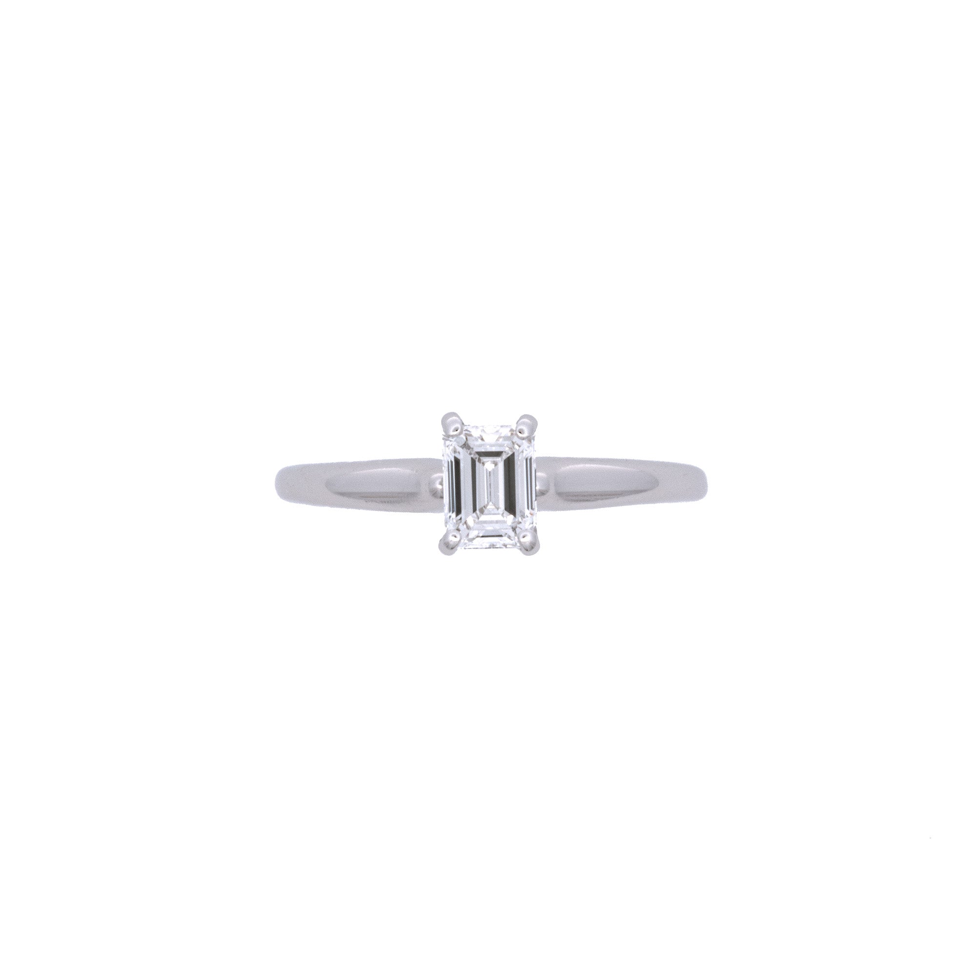 18K White Gold Emerald Cut Diamond Solitaire Ring
