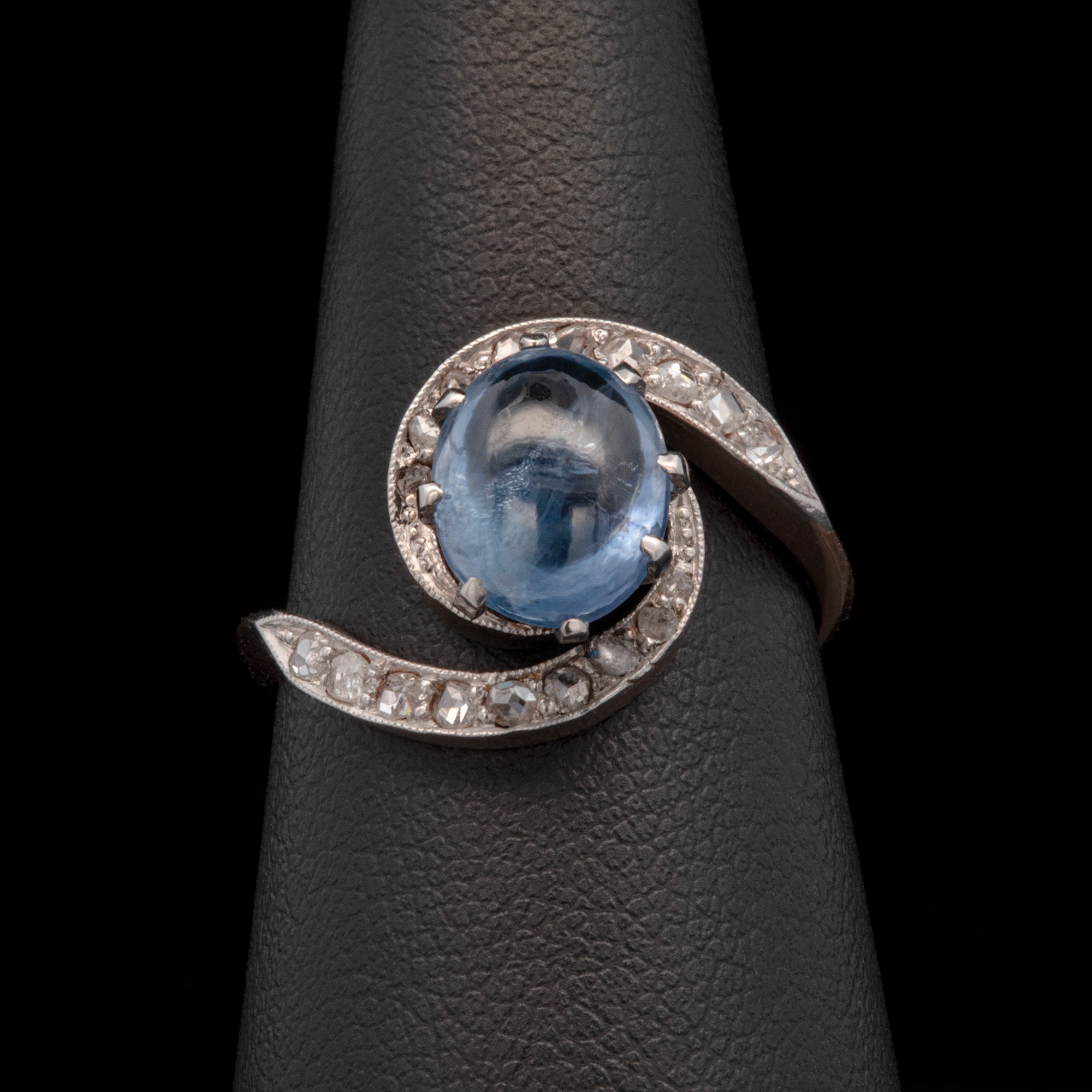 Cabochon Sapphire And Rose Cut Swirl Ring