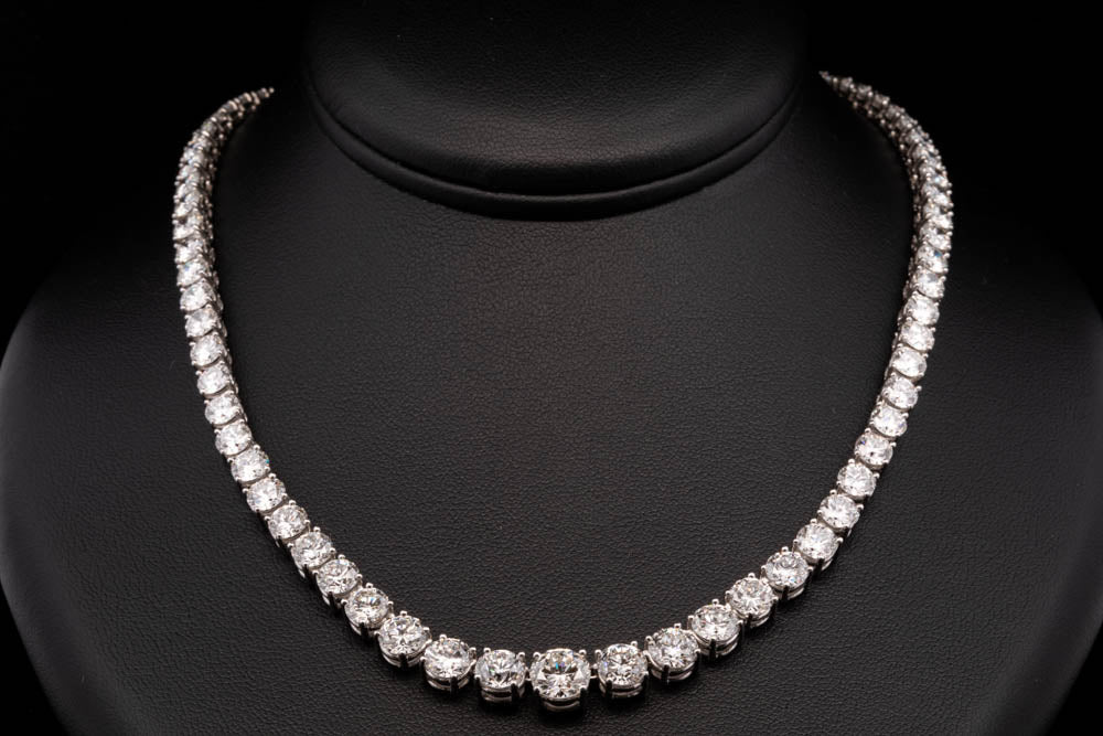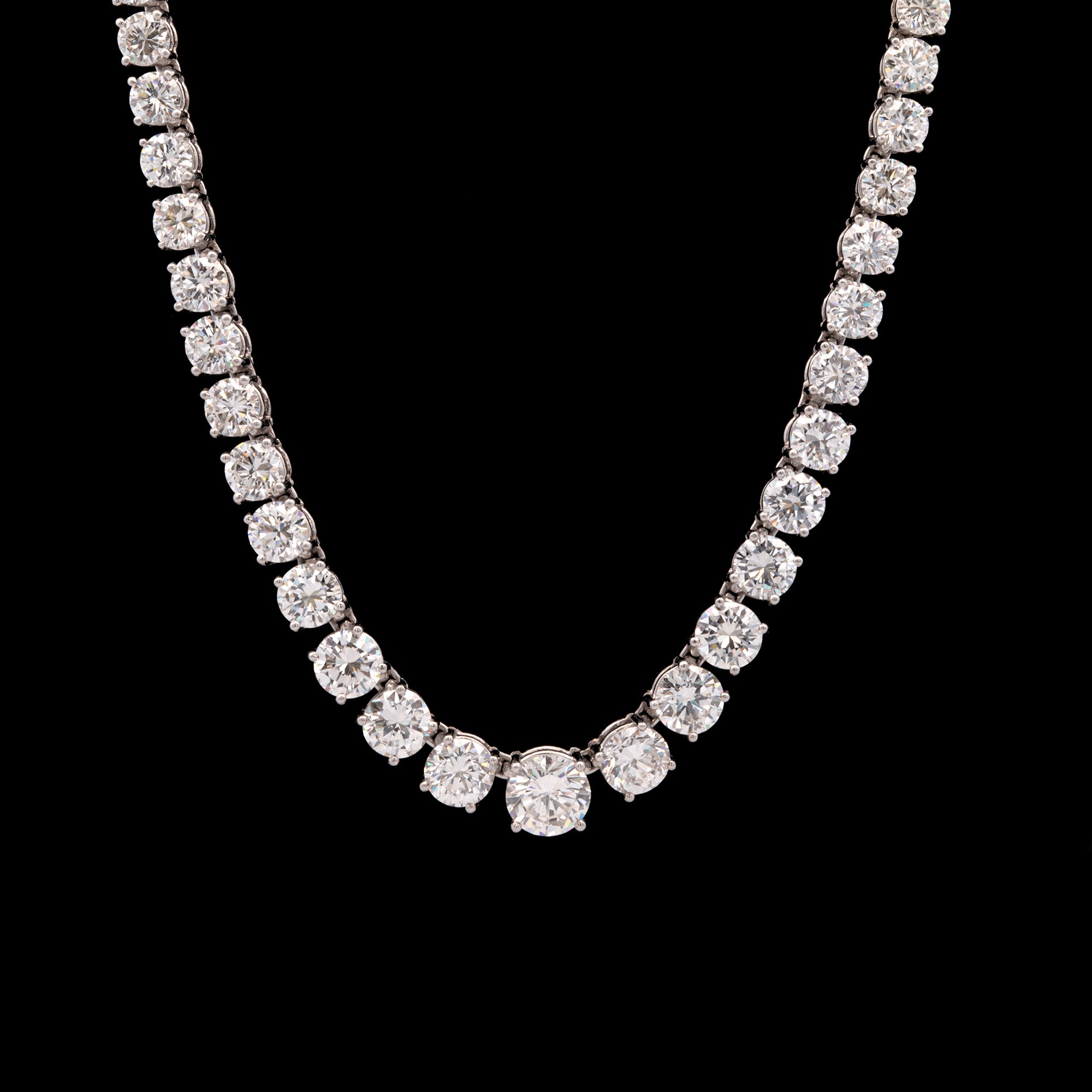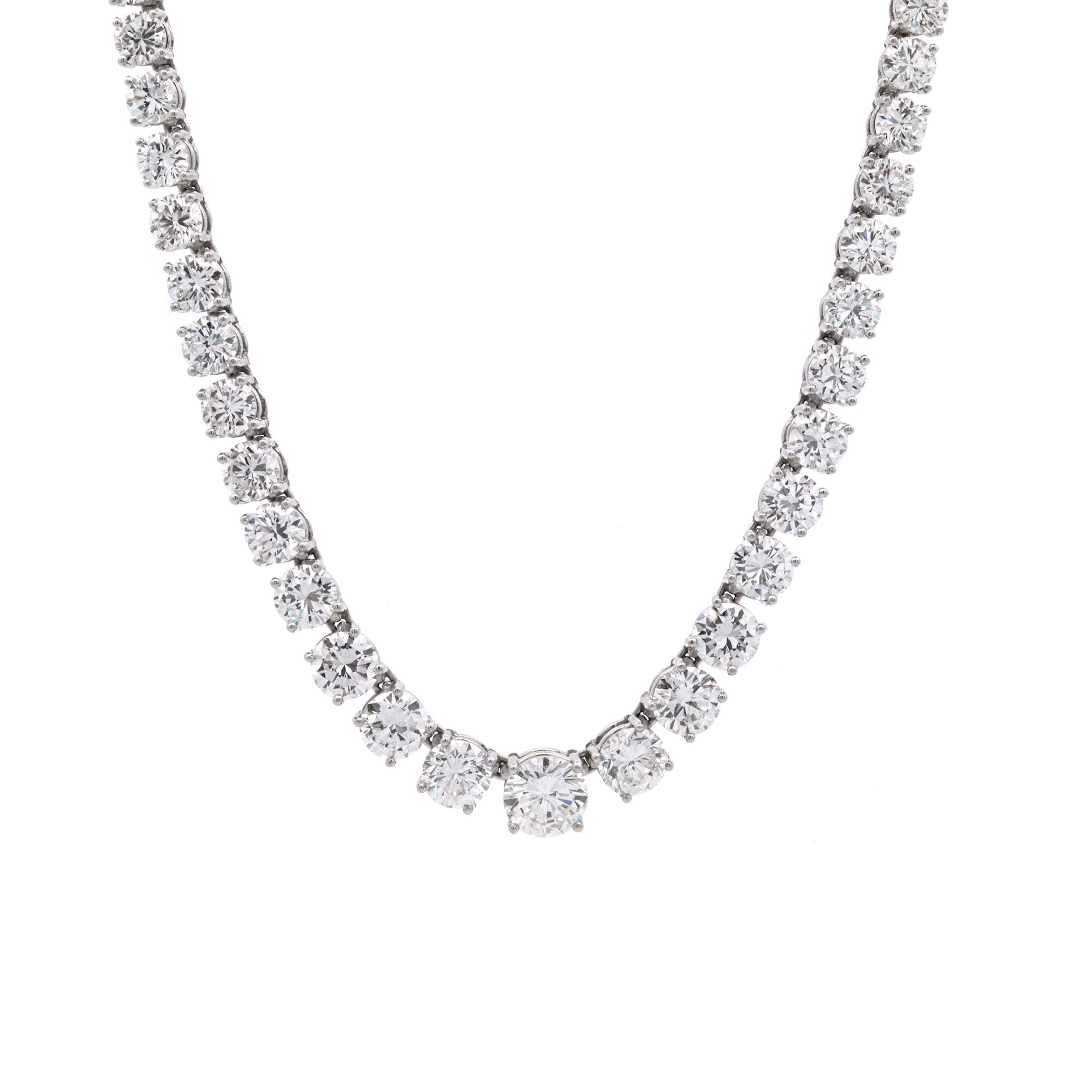 Platinum "Tiffany & Co." 22.60ctw Graduated Diamond Necklace, 15 Inches. Diamonds Weigh A Total Of 22.60 Carats And Have F-g Color, VVS1-VS1 Clarity.