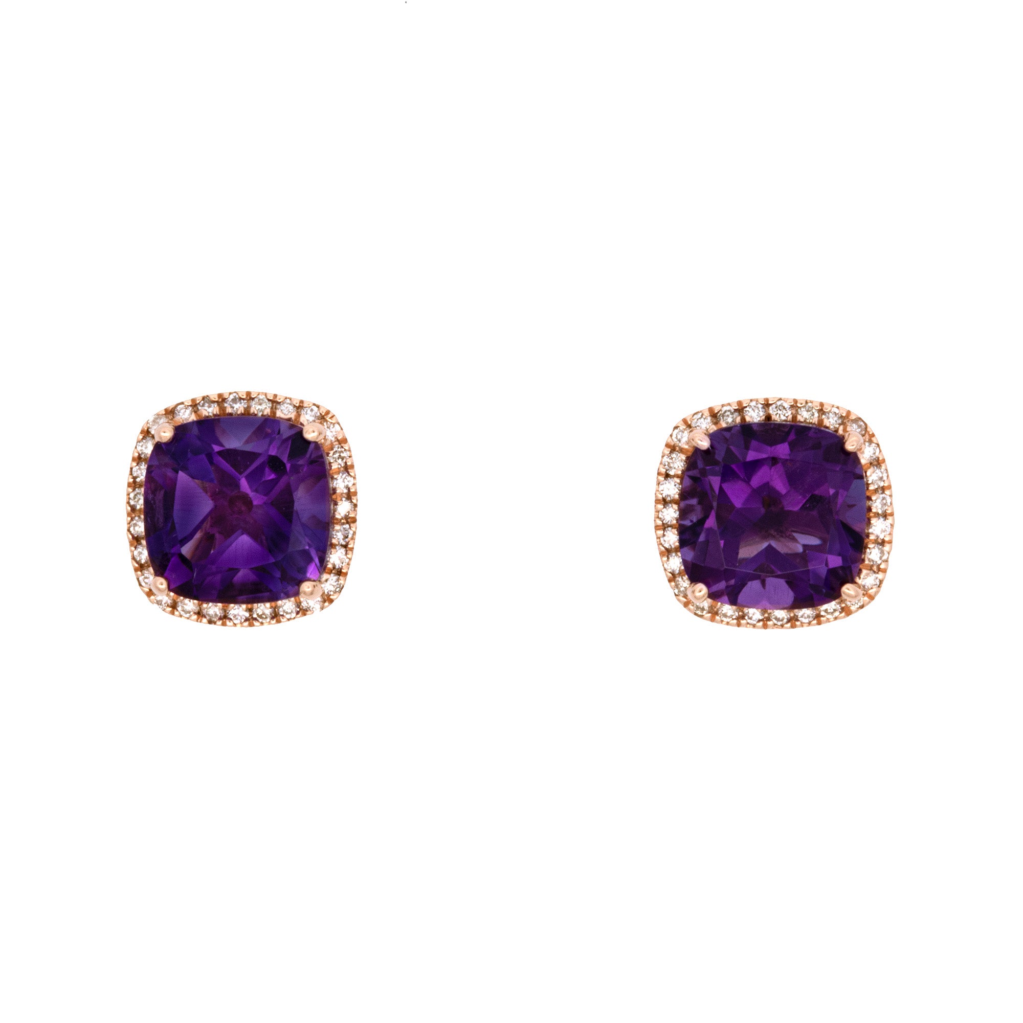 14K Rose Gold Amethyst And Diamond Halo Stud Earrings