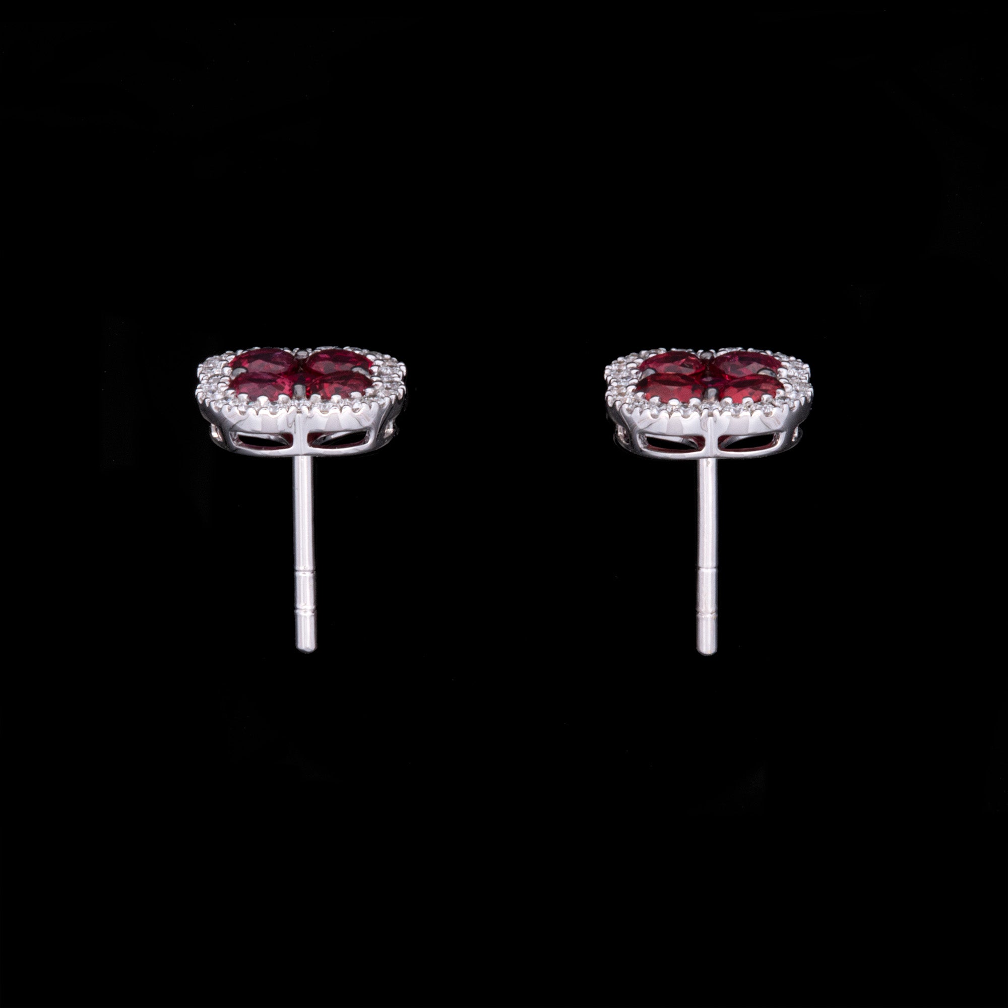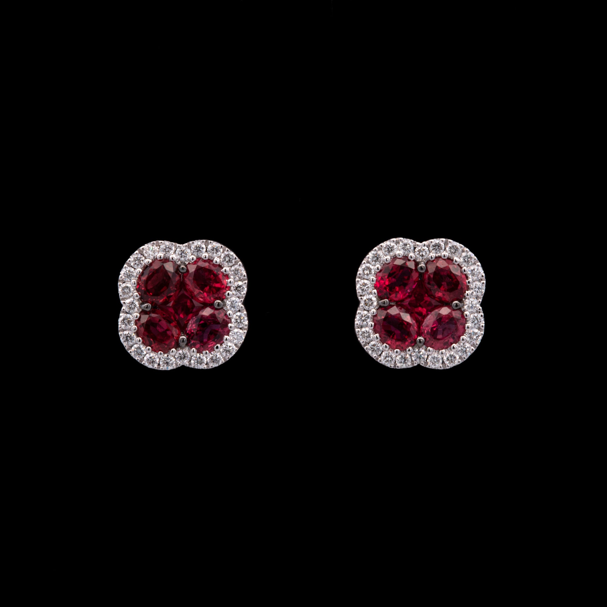 18K White Gold Ruby And Diamond Clover Stud Earrings