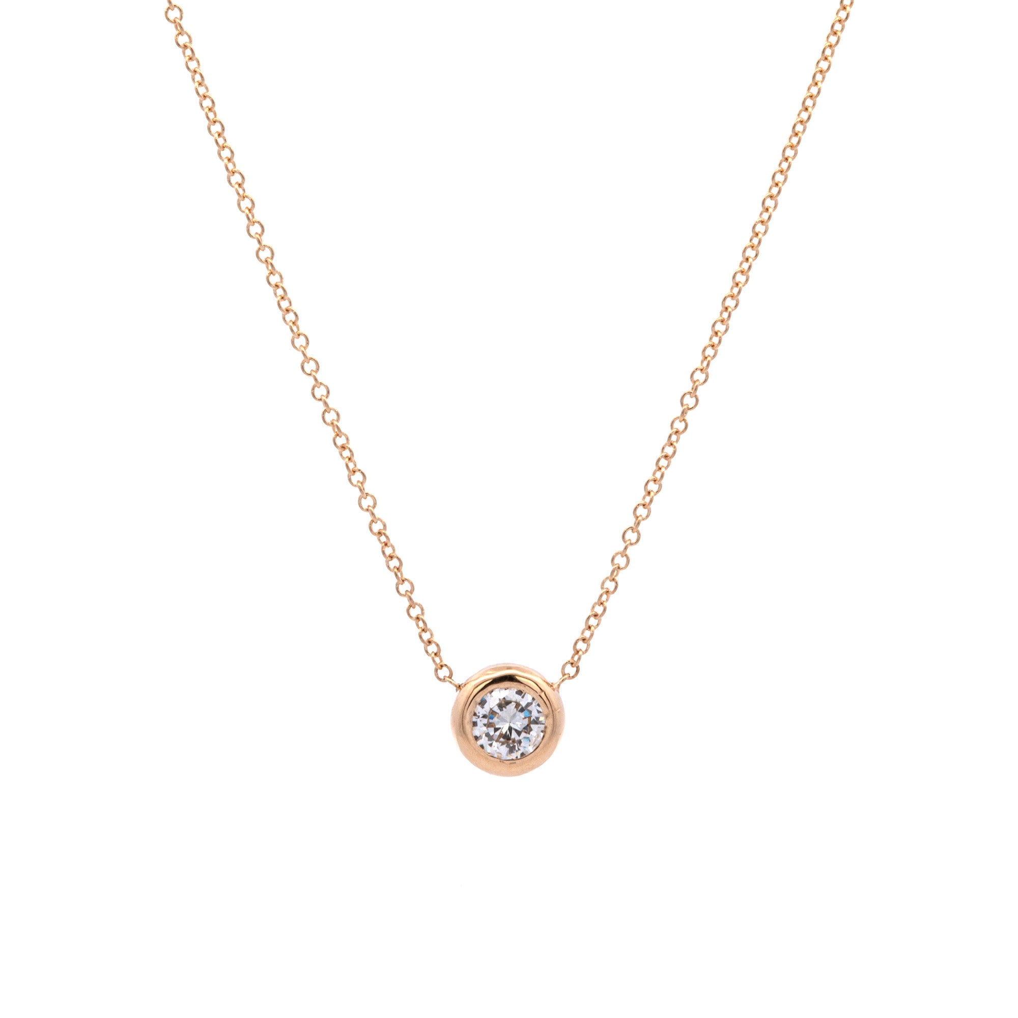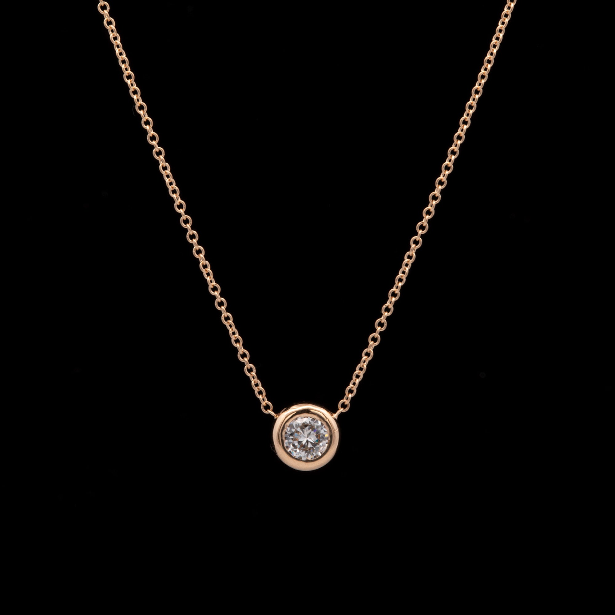 18K Yellow Gold Bezel Set Diamond Necklace, 18 Inches