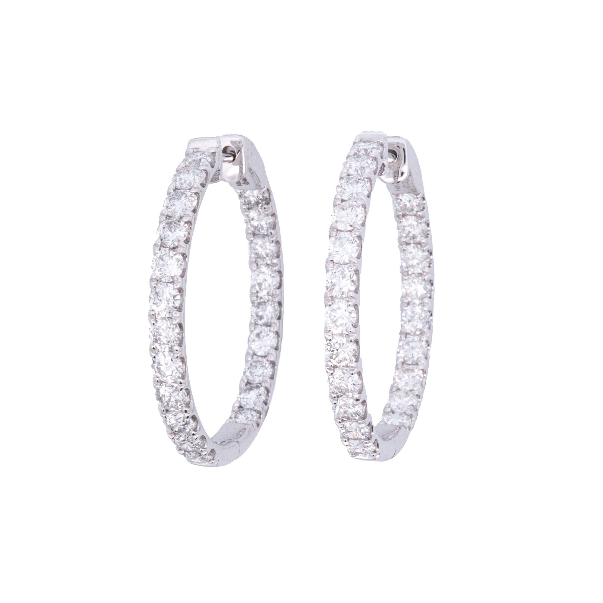 14K White Gold 29mm Hoop Earrings. The Diamonds Weigh a Total of 4.00 Carats.