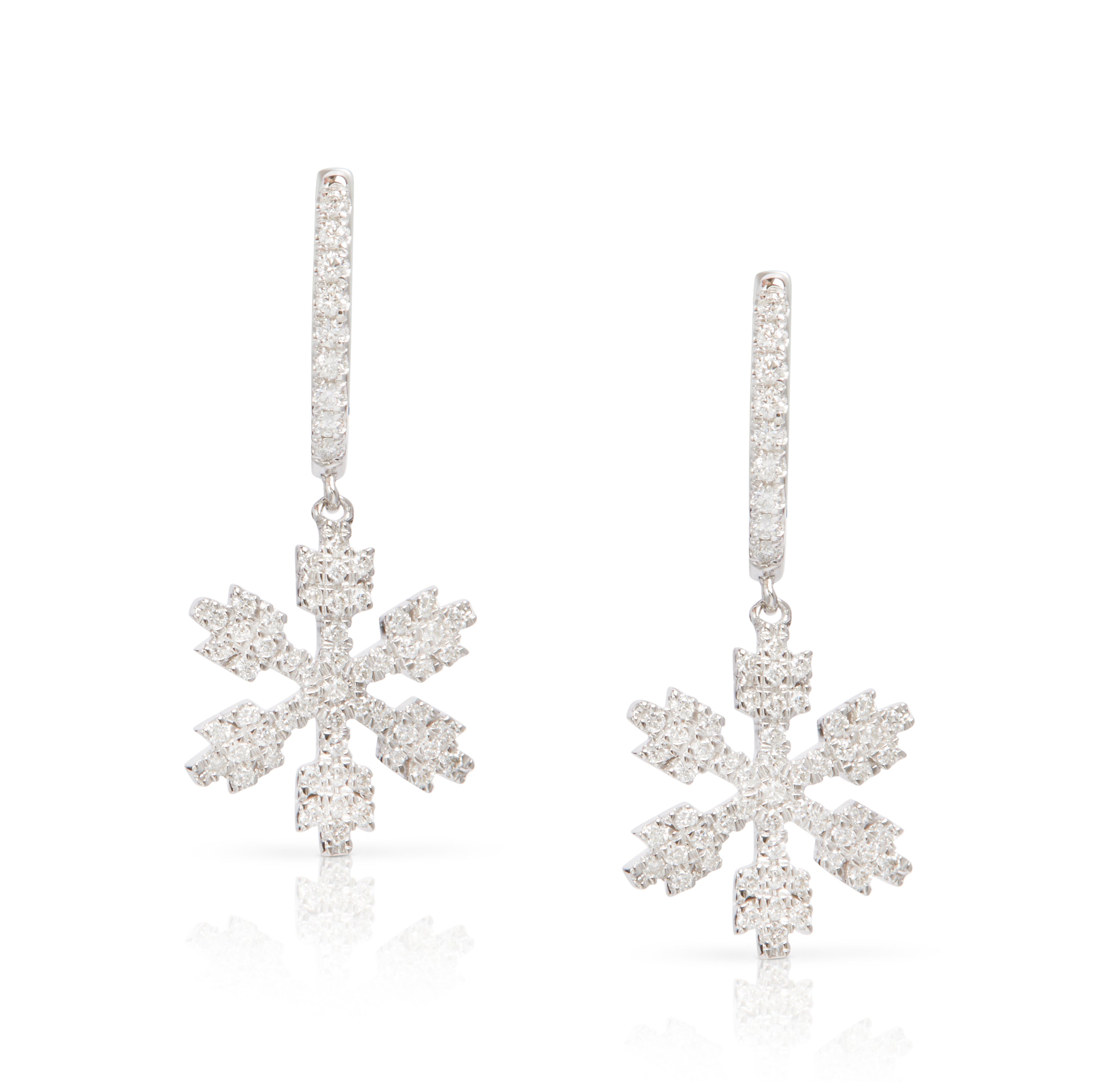 14K White Gold Small Calais Diamond Dangle Earrings. The Diamonds Weigh A total Of 0.50 Carats.