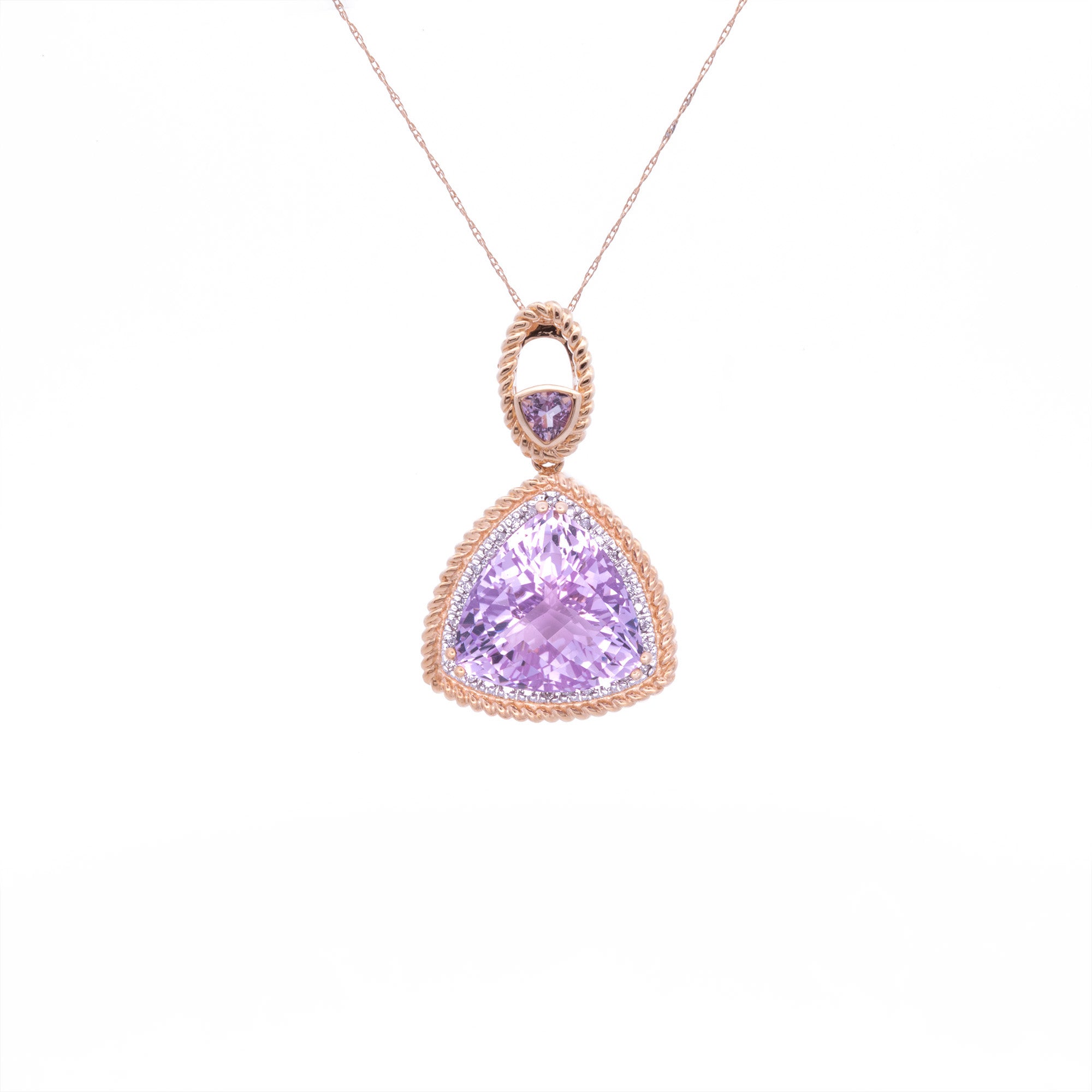 14K Yellow Gold Amethyst and Diamond Pendant with Chain