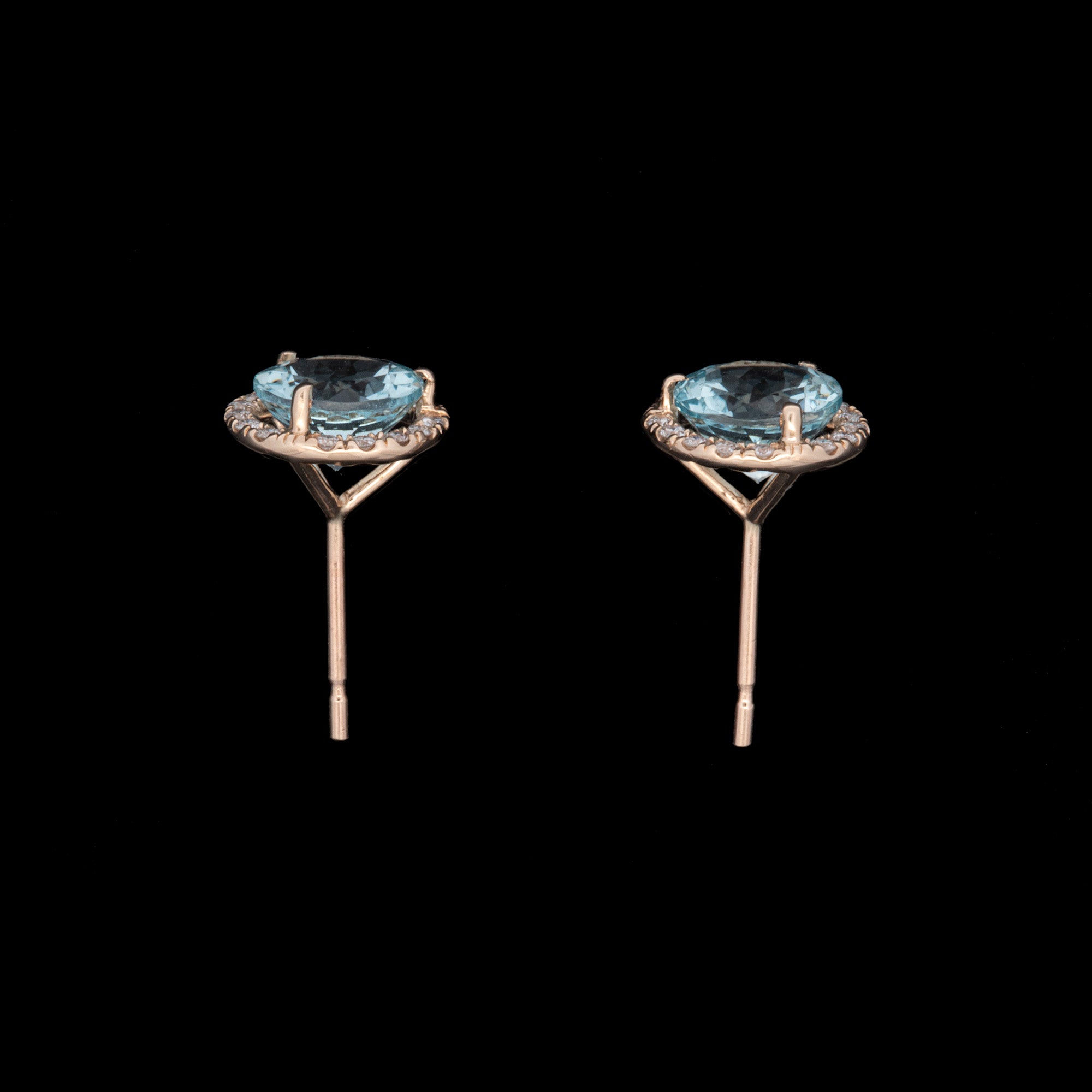 14K Yellow Gold Aquamarine And Diamond Halo Stud Earrings. Aquamarines Weigh A Total Of 2.25 Carats. Diamonds Weigh A Total Of 0.18 Carats.