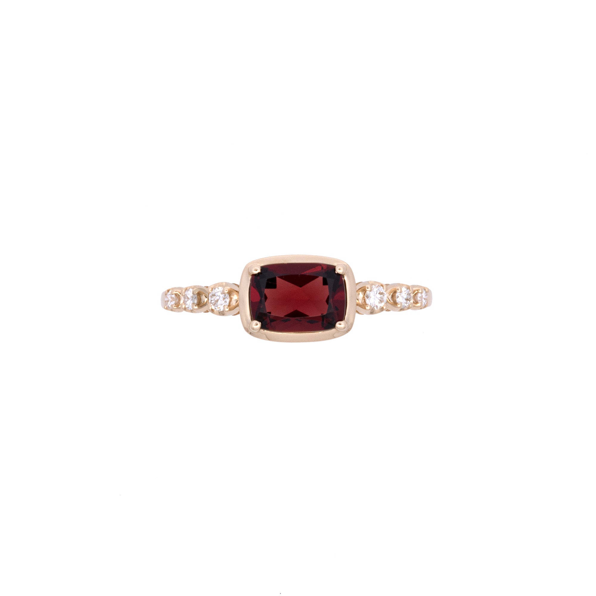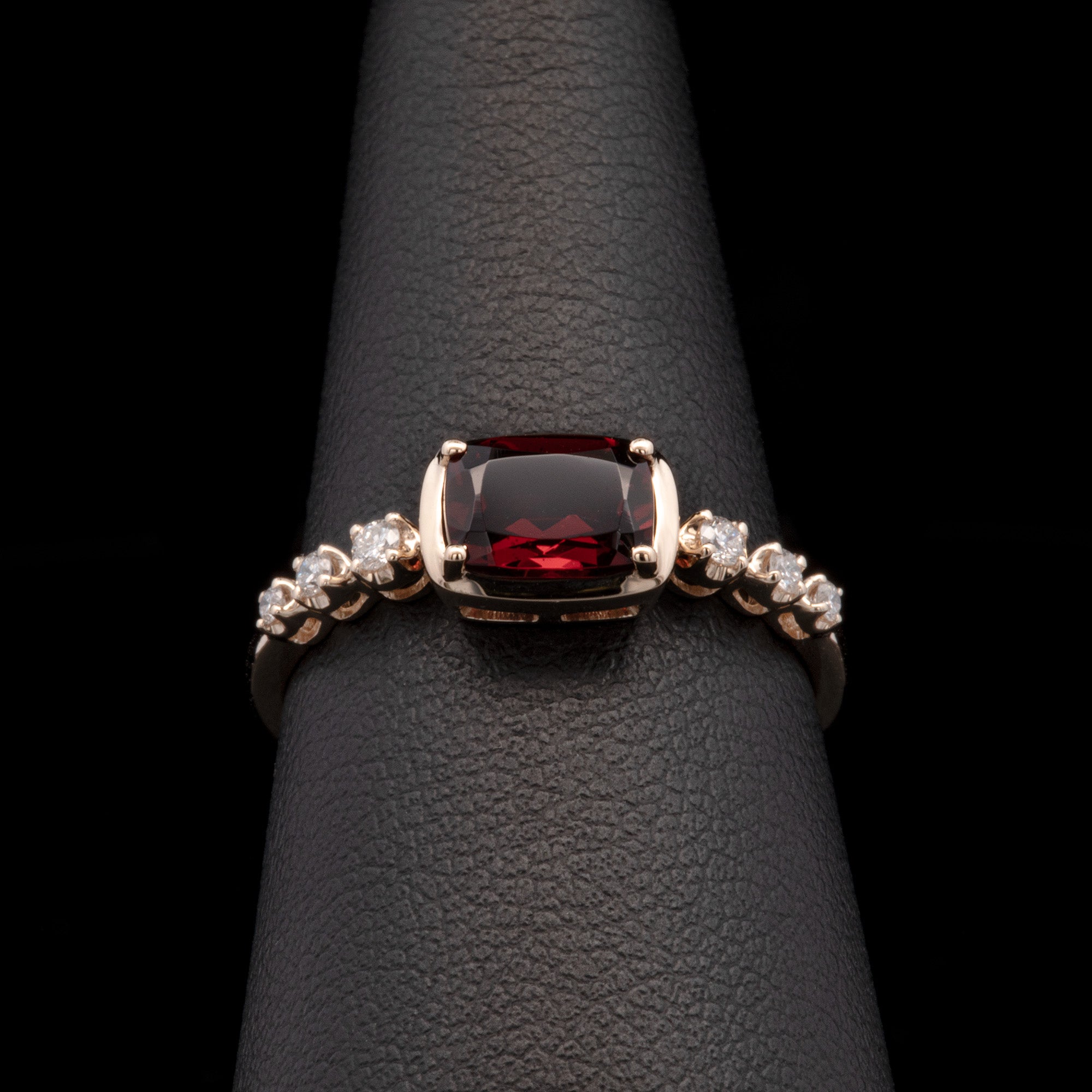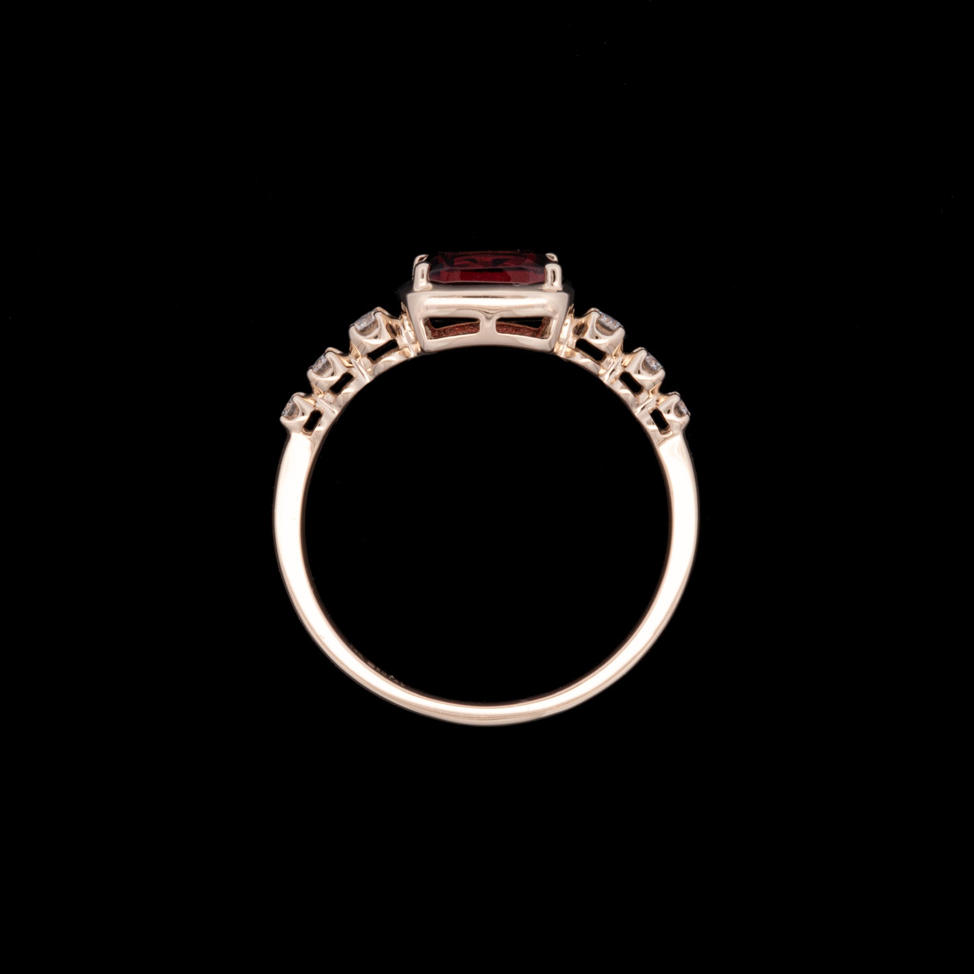 14K Yellow Gold Emerald Cut Garnet And Diamond Ring