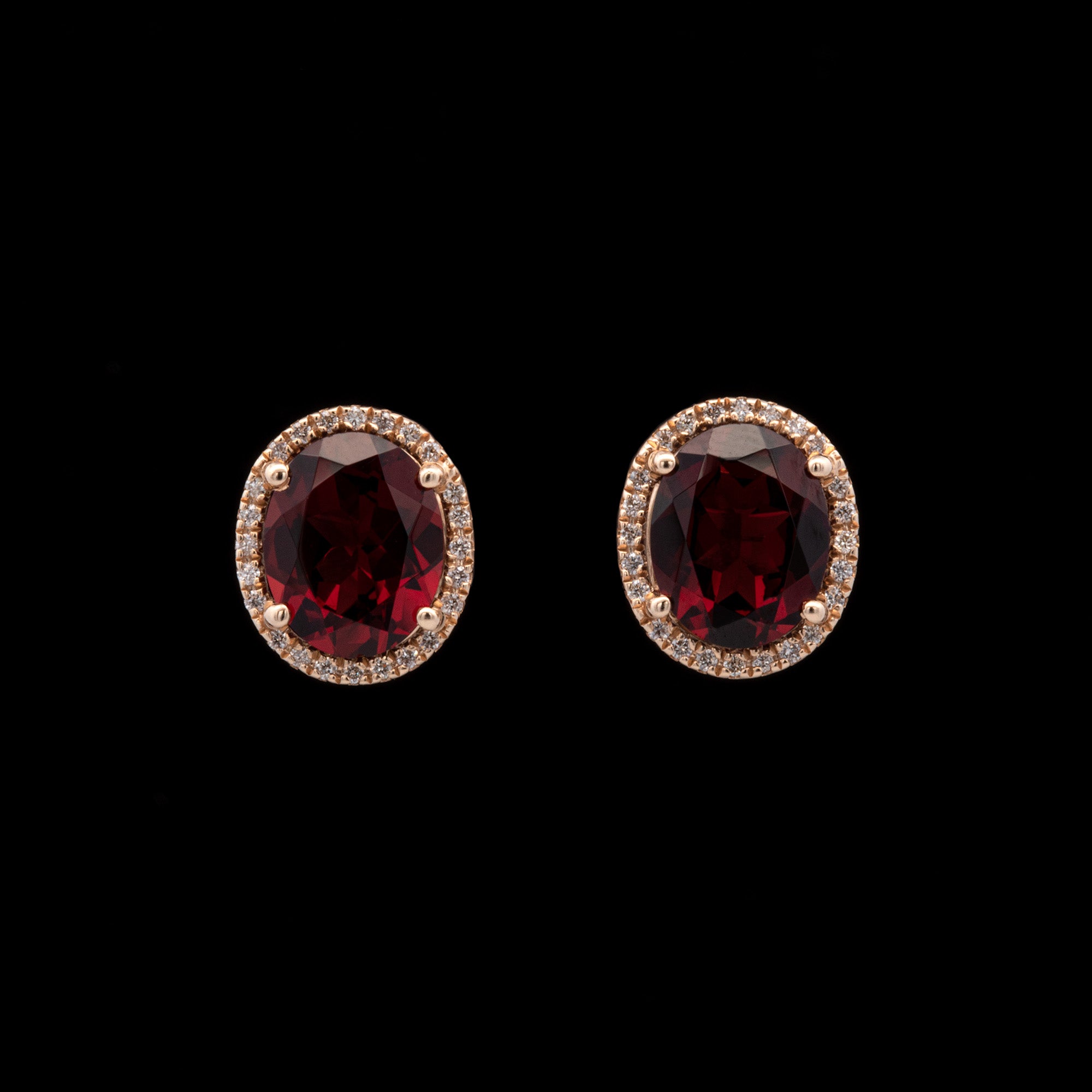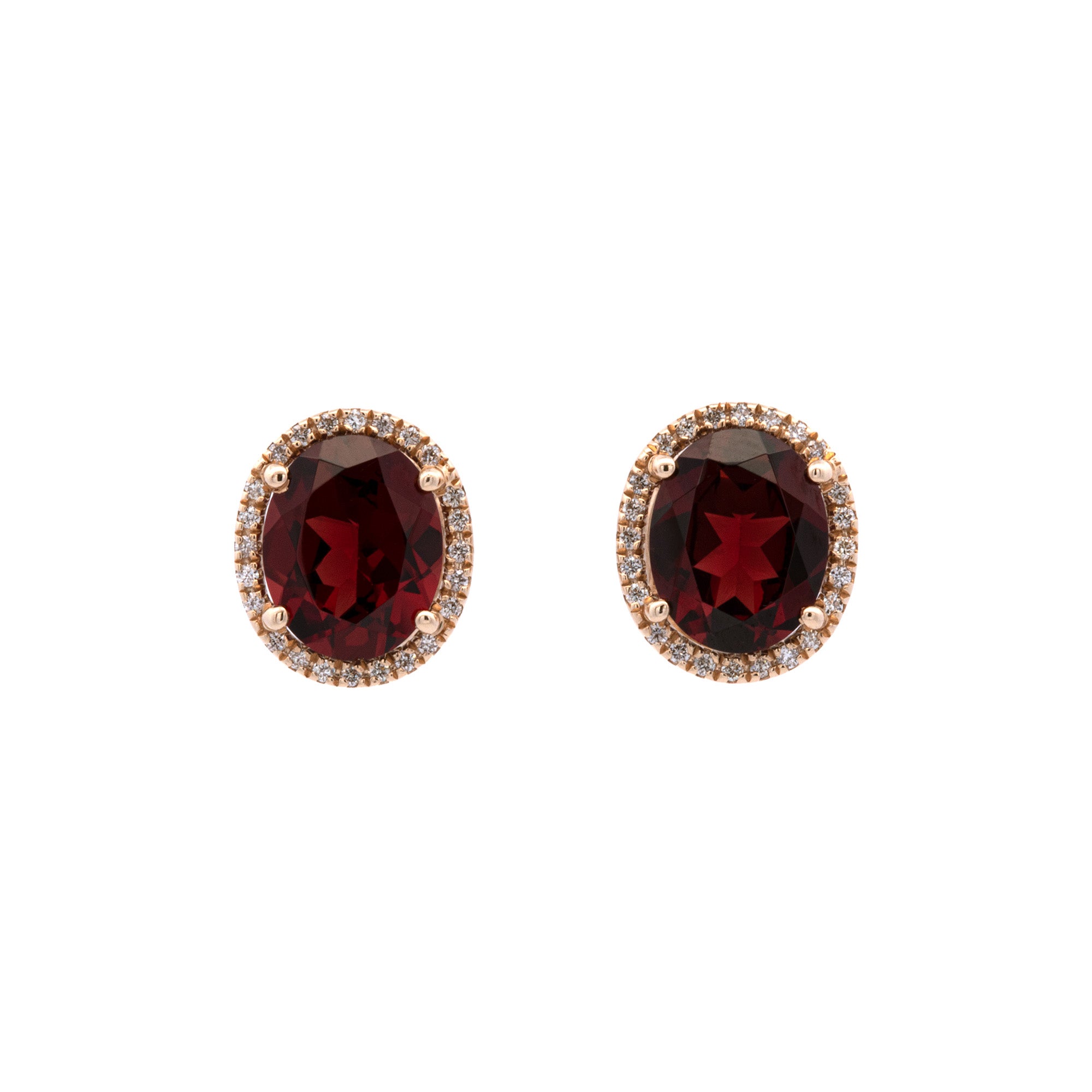 14K Yellow Gold Oval Garnet And Diamond Halo Stud Earrings