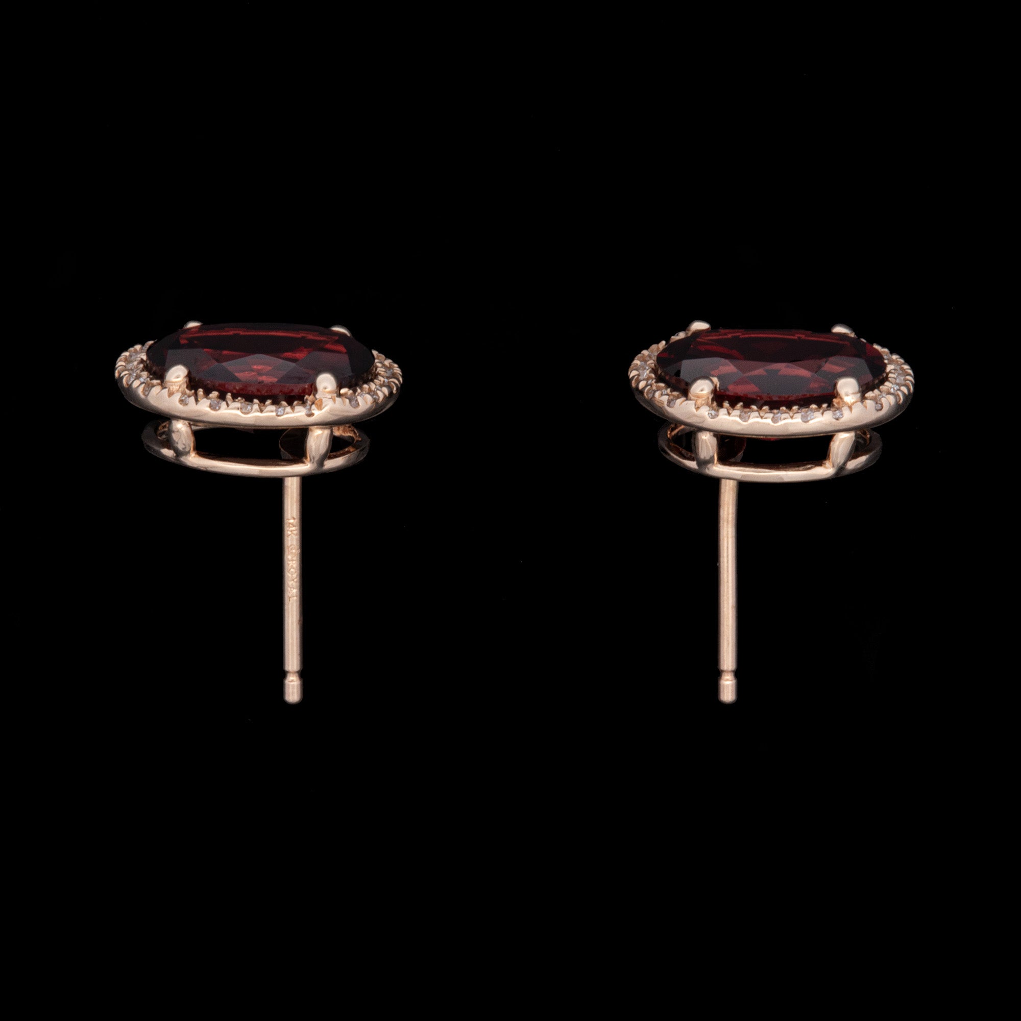 14K Yellow Gold Oval Garnet And Diamond Halo Stud Earrings. Garnets Weigh A Total Of 5.50 Carats. Diamonds Weigh A Total Of 0.35 Carats.