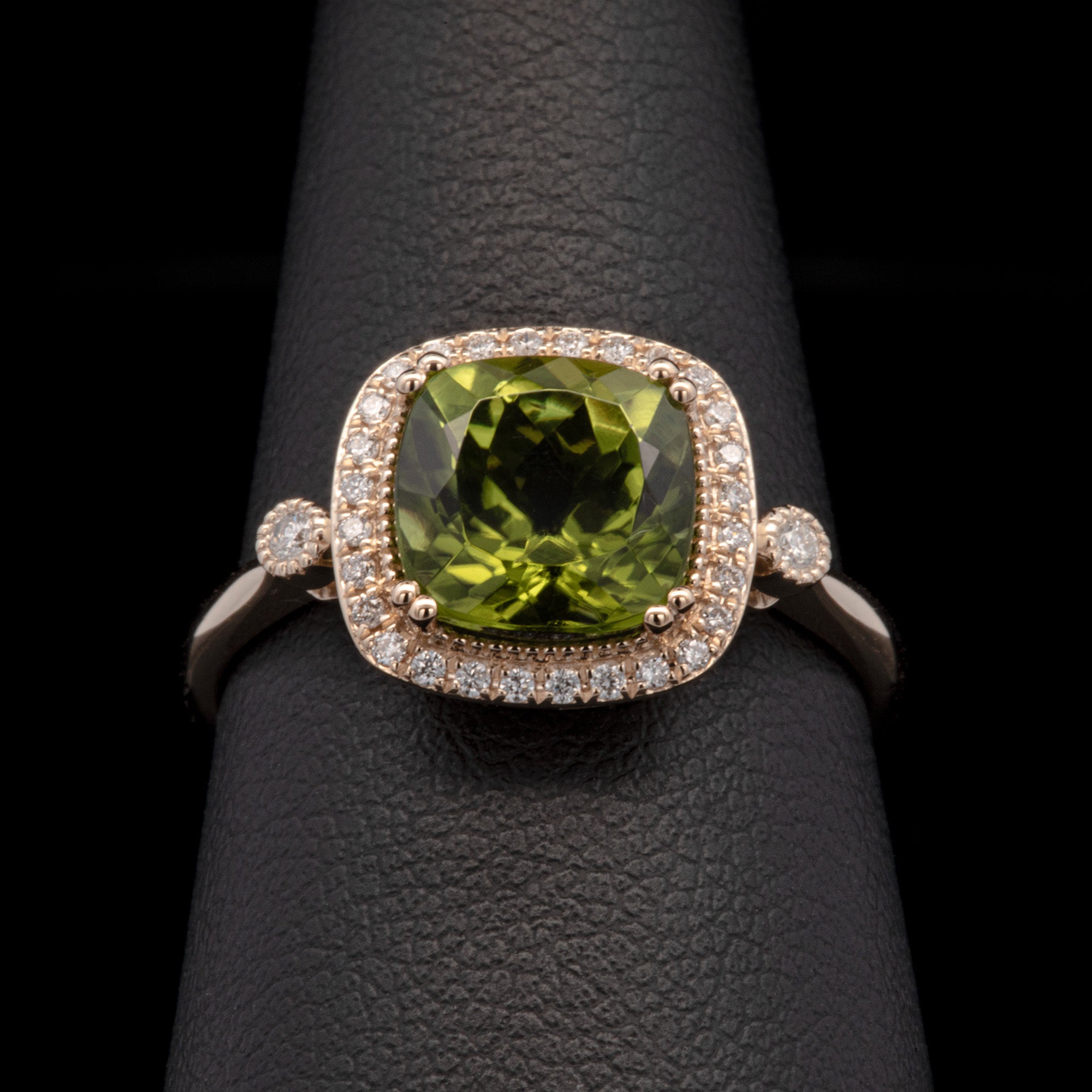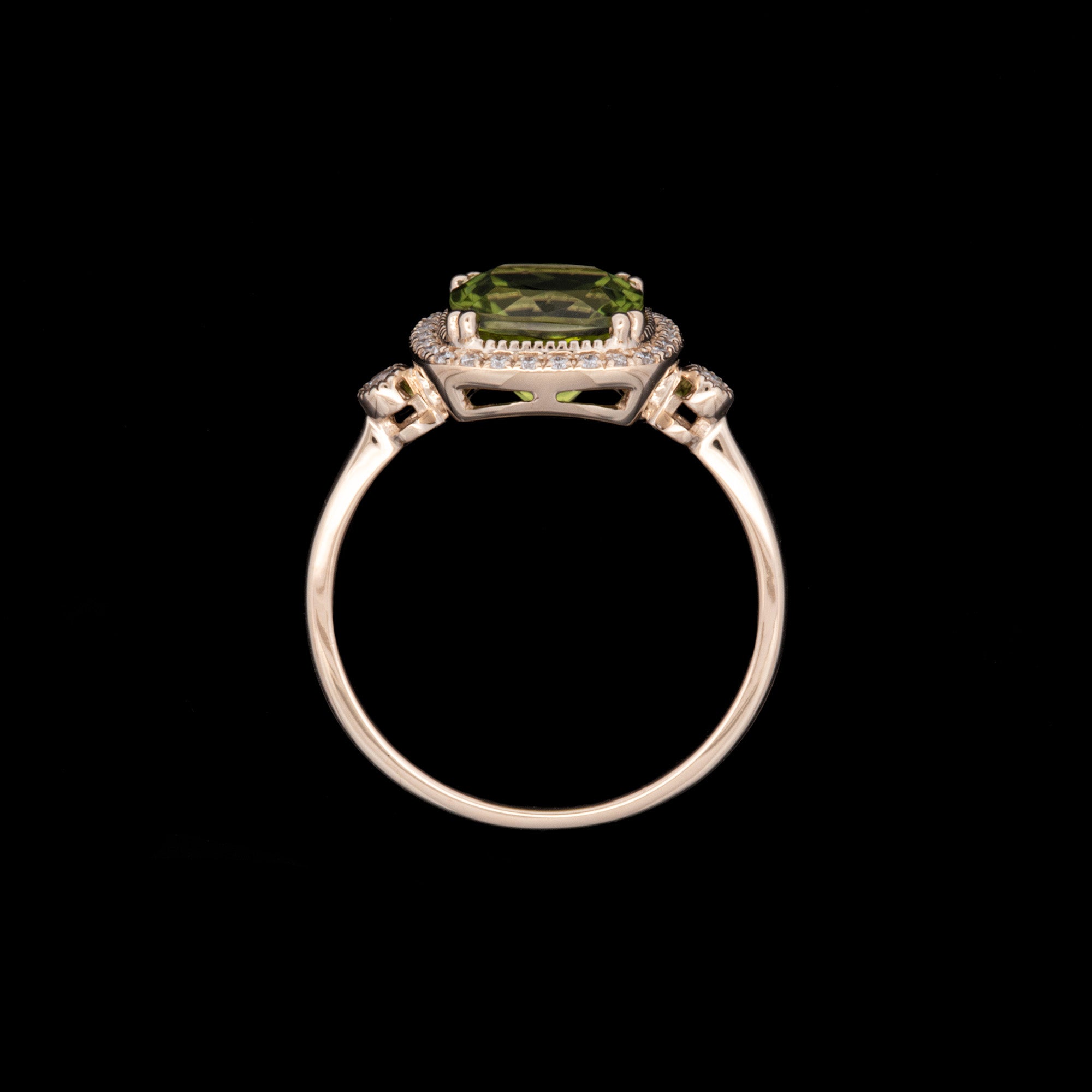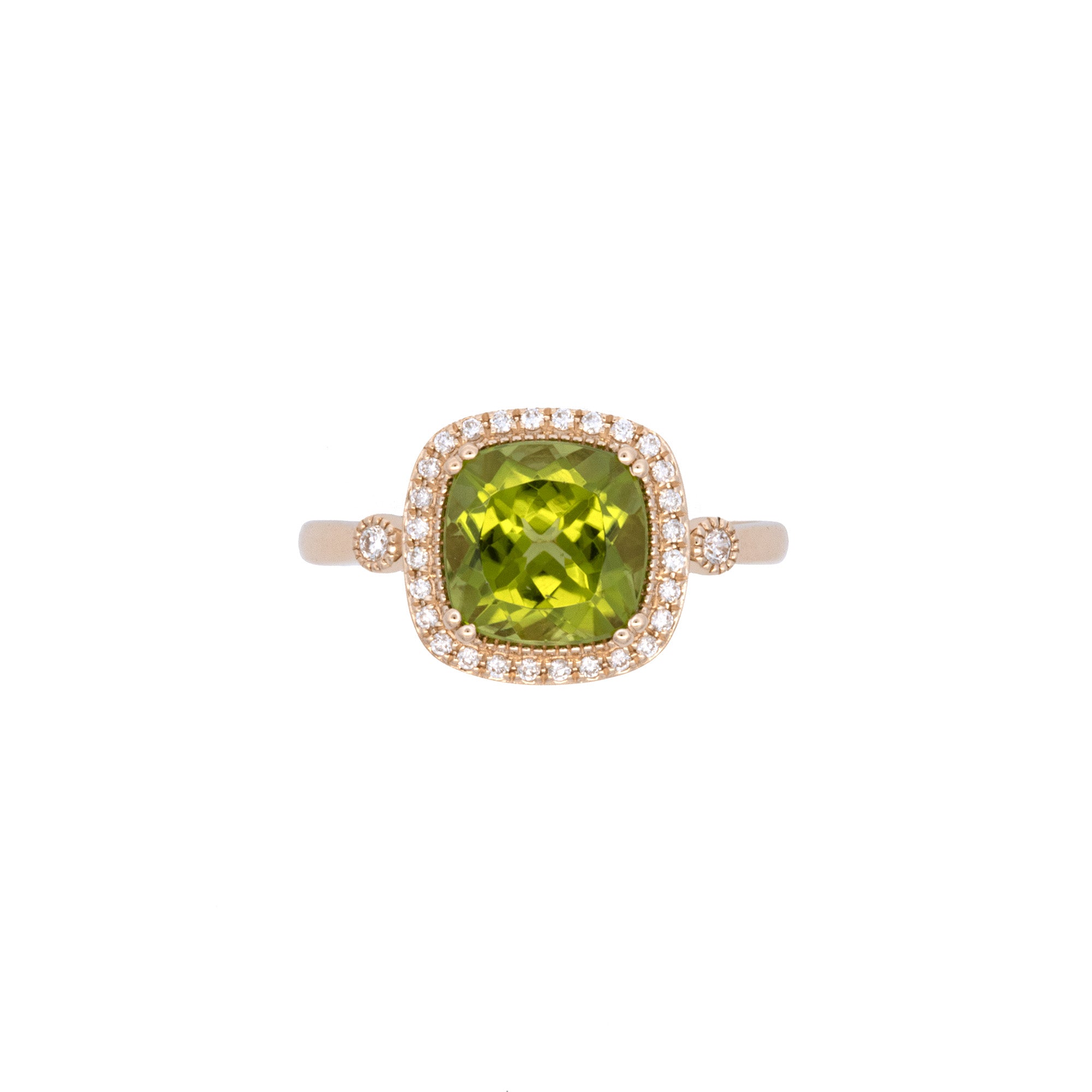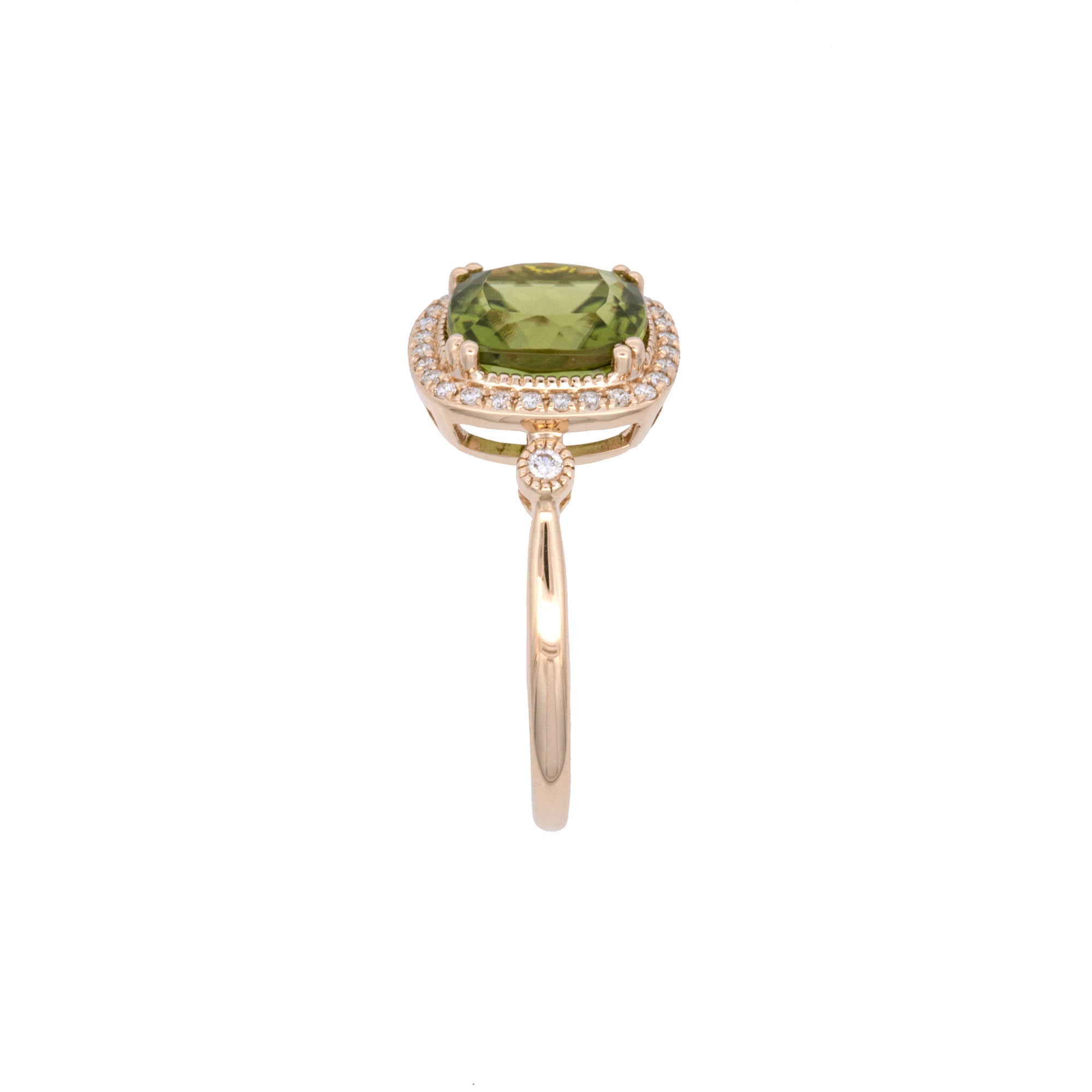 14K Yellow Gold Peridot And Diamond Halo Ring