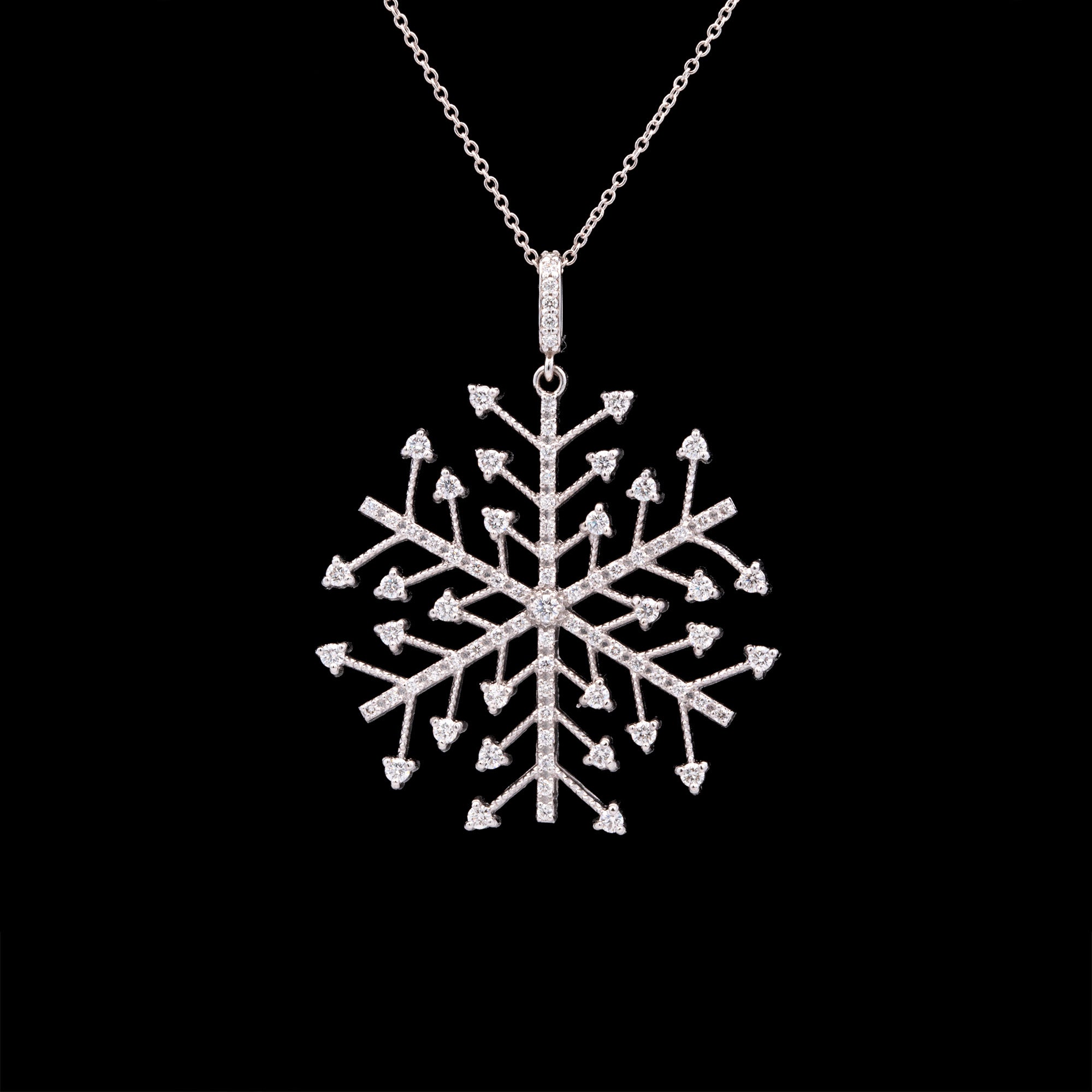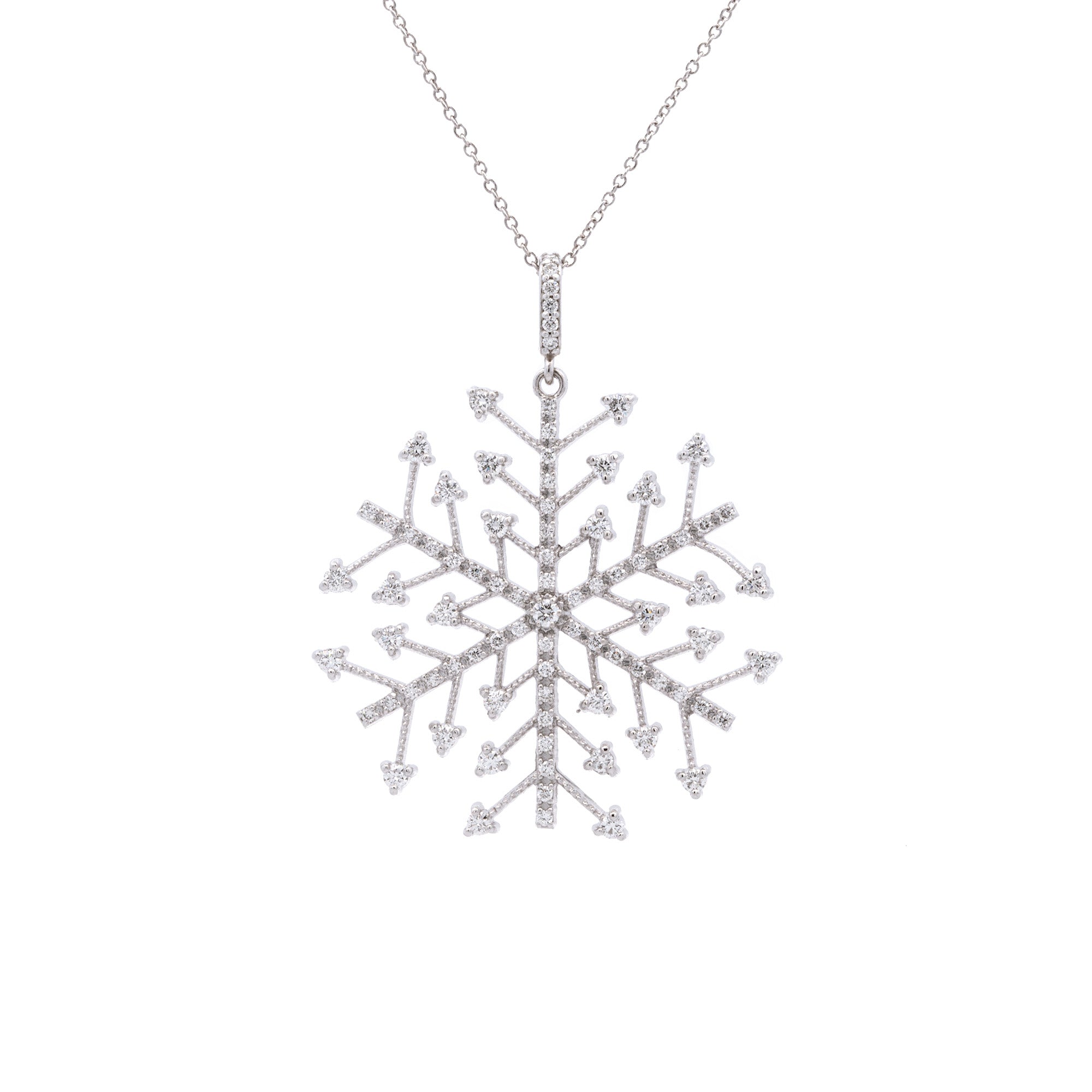 14K White Gold Large Essex Diamond Snowflake With 18" Chain. The Diamonds Weigh A Total of 1.59 Carats. Diameter Measures 37mm.