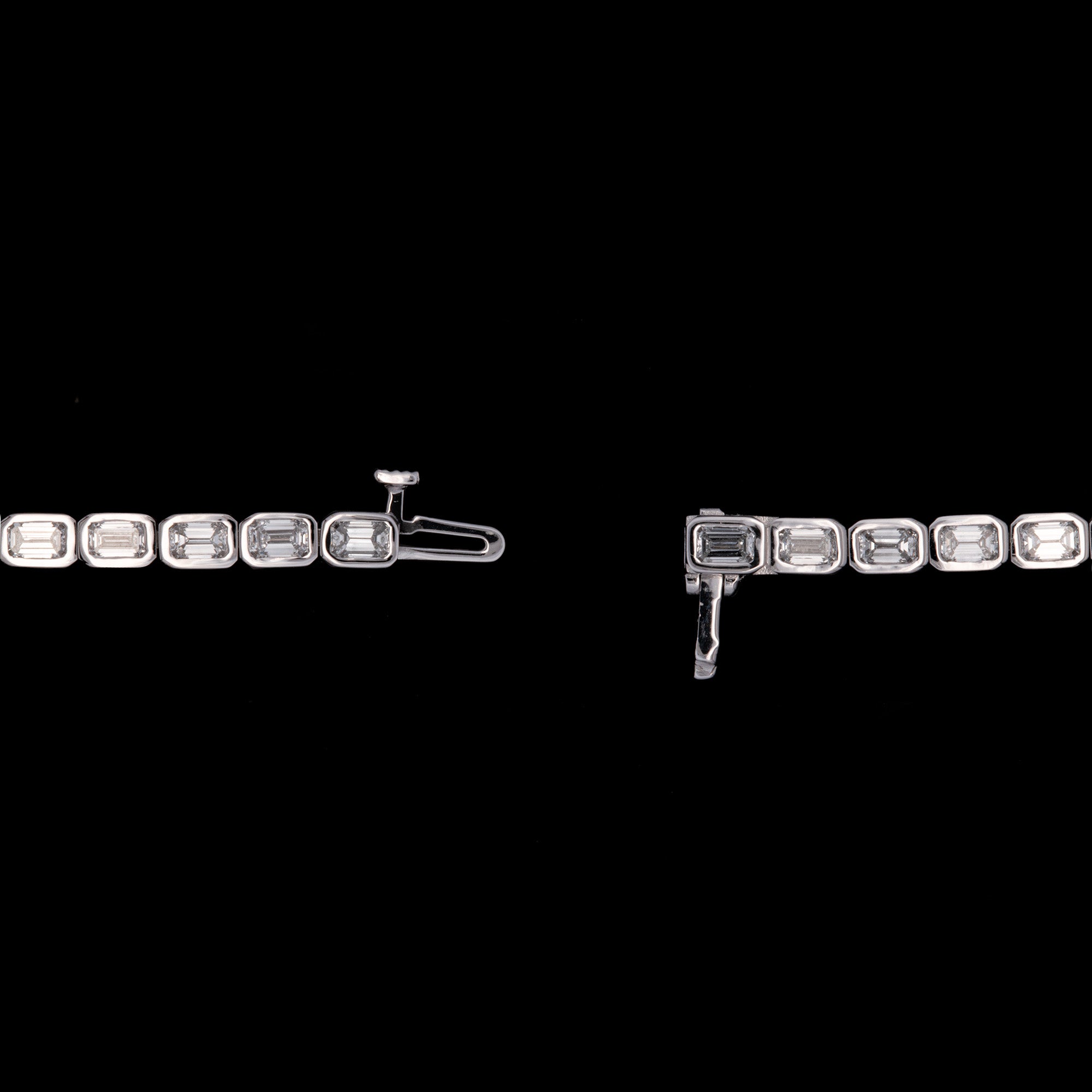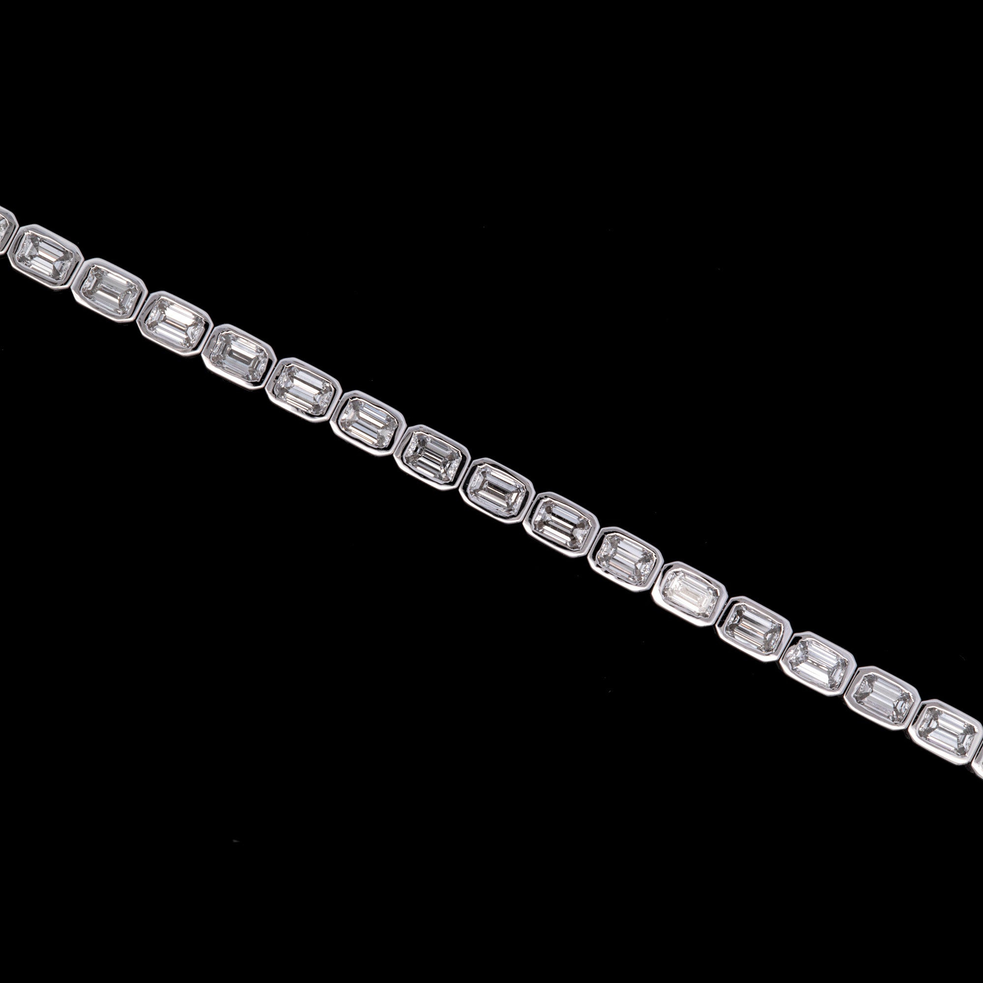 Custom 18K White Gold Bezel Set Emerald Cut Diamond Line Bracelet, 7.25 Inches