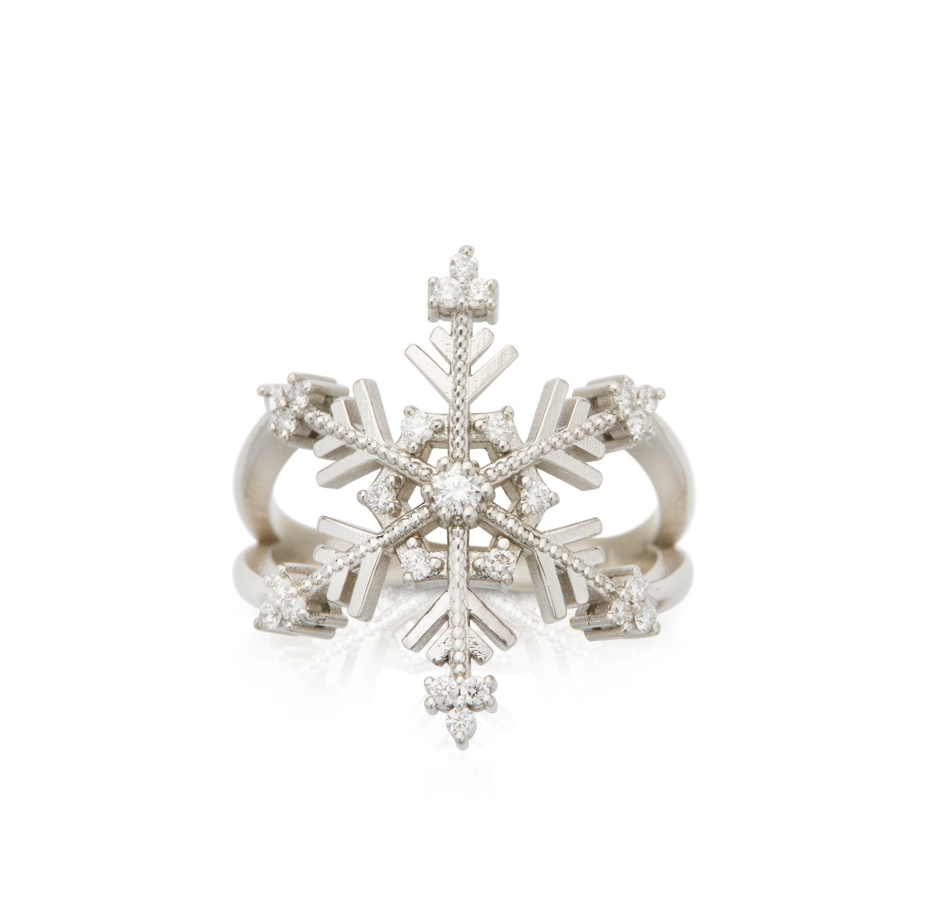 14K White Gold Fairfax Diamond Snowflake Ring. The Diamonds Weigh A Total Of 0.265 Carats and Have F-G Color And VS Clarity. The Ring Can Be Sized.