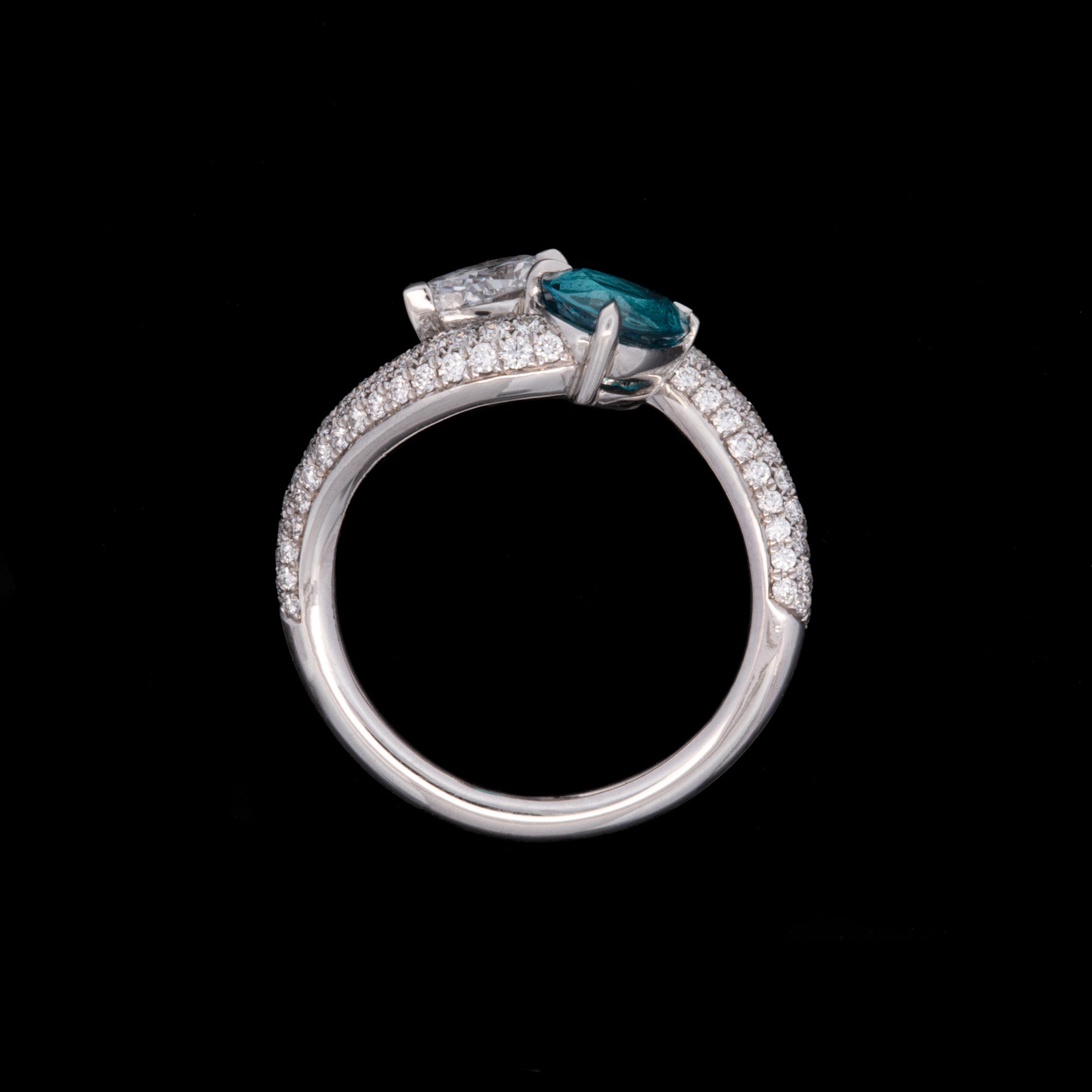 Platinum No Heat Paraiba Tourmaline And Diamond Bypass Ring