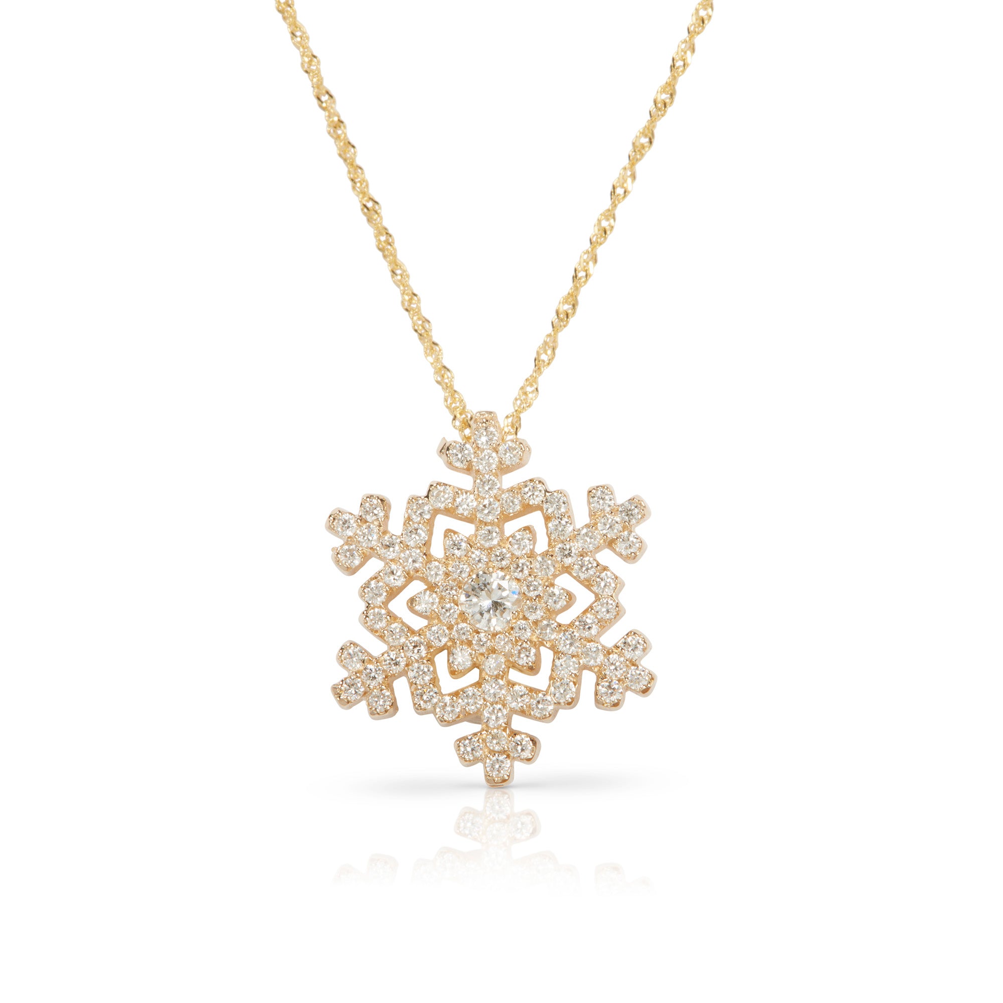 14K Yellow Gold Waterbury Diamond Snowflake Pendant With Center Stone and 18 Inch Chain. The Diamond Weighs a Total of 0.61 Carats. The Diamonds Have G-H Color And VS1 Clarity.