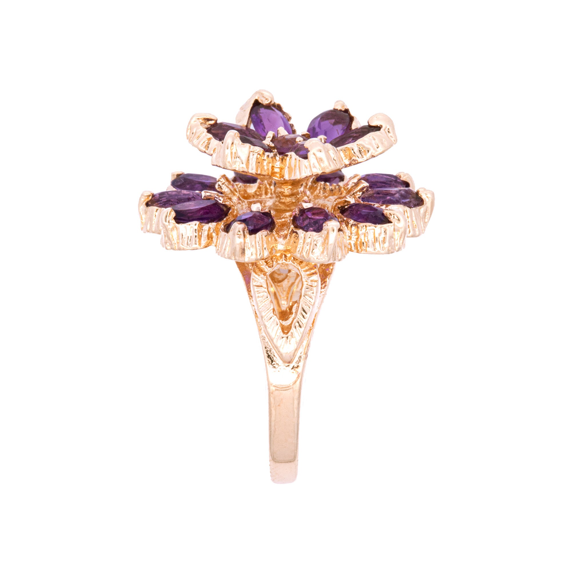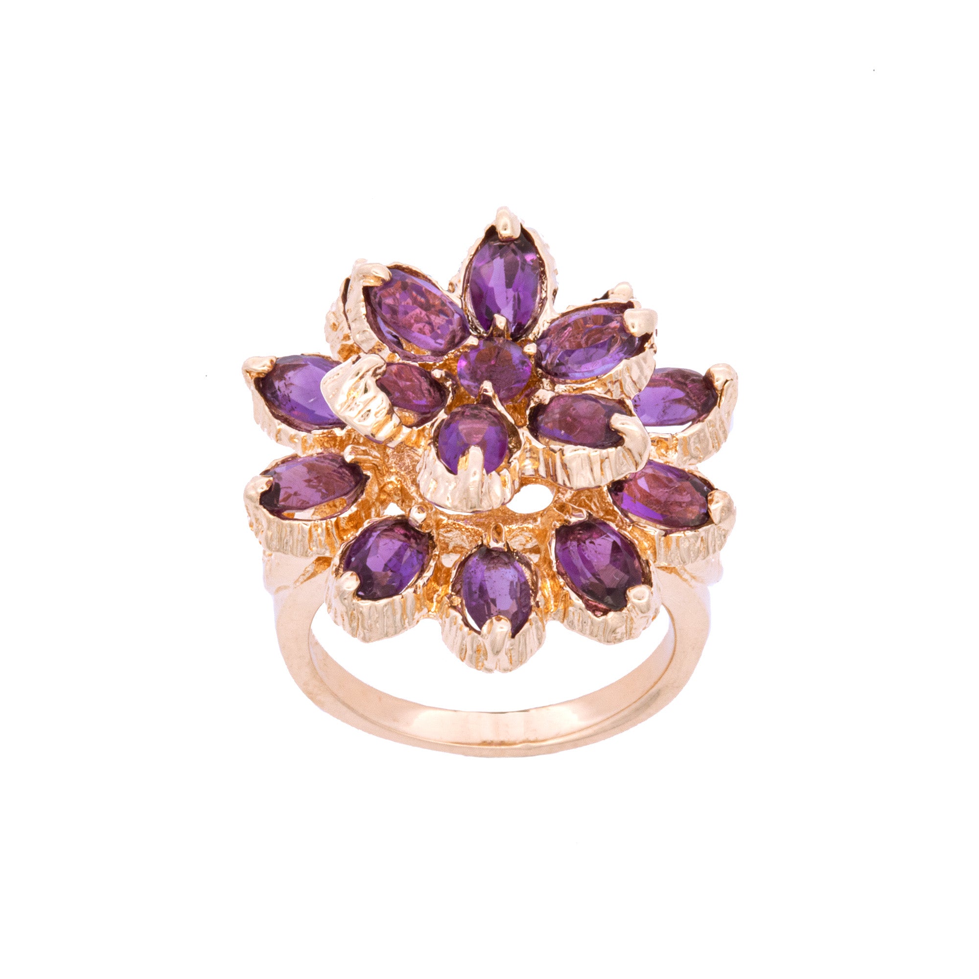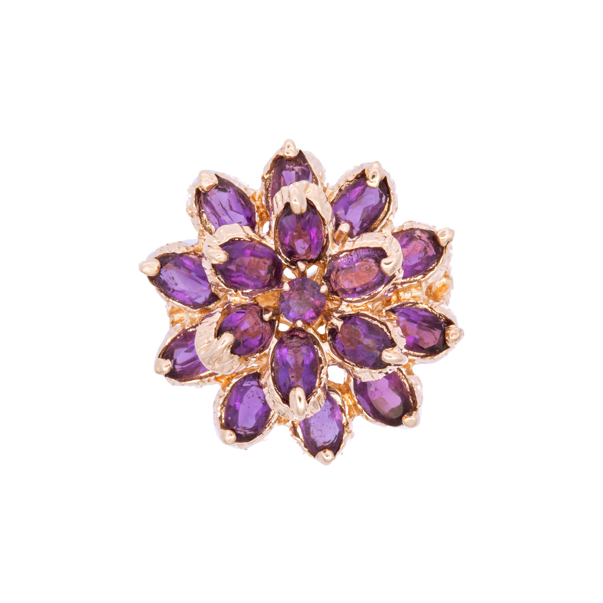 14K Yellow Gold Mix Cut Amethyst Tiered Flower Cocktail Ring