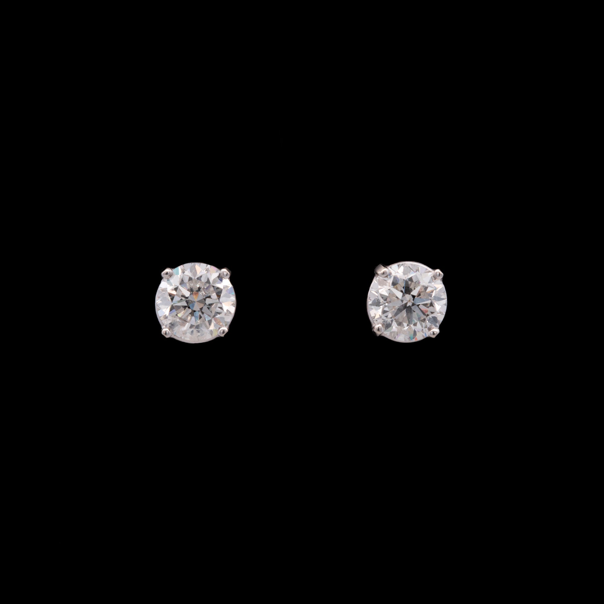 14K White Gold 1.60ctw Round Brilliant Cut Diamond Stud Earrings. Diamonds Weigh A Total Of 1.60 Carats And Have G Color, SI1 Clarity.