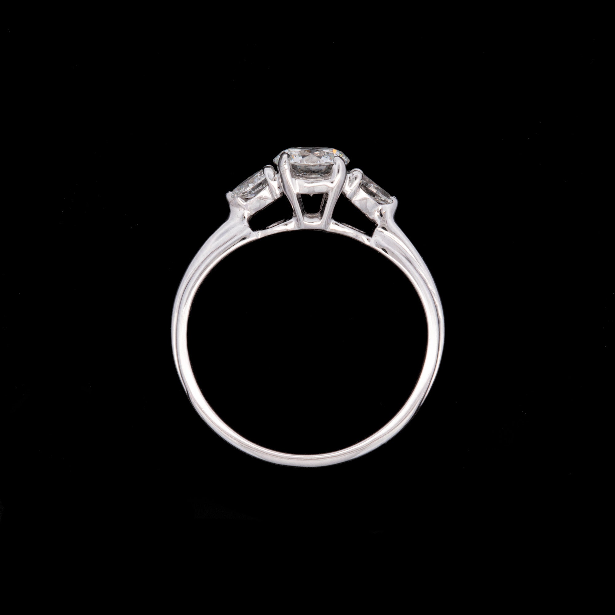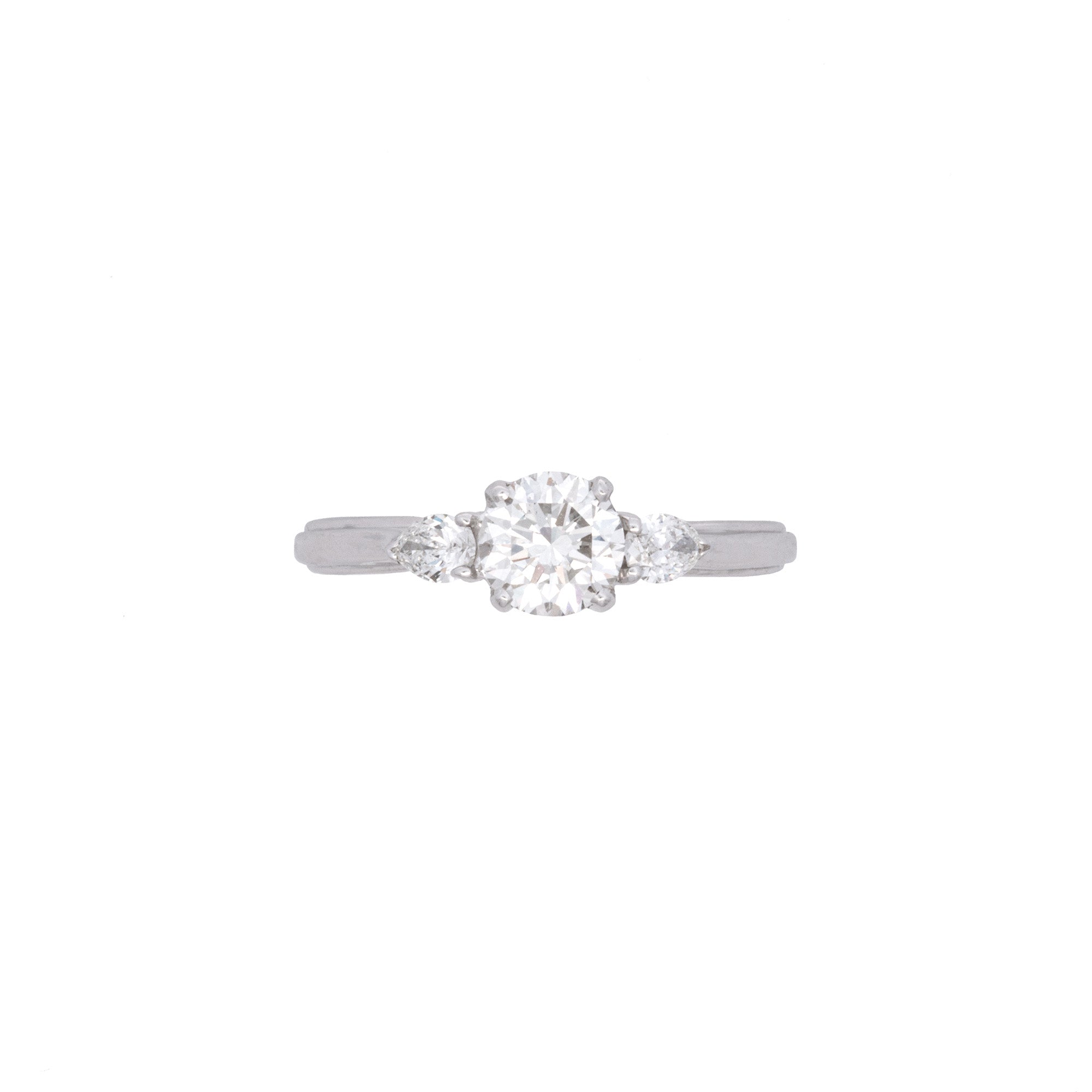 14K White Gold Diamond Engagement Ring. Center Diamond Weighs 0.71 Carats And Has G Color, VS2 Clarity; GIA Certified. Pear Shaped Accent Diamonds Weigh A Total Of 0.29 Carats And Have G Color, VS2 Clarity. Sizing Available.