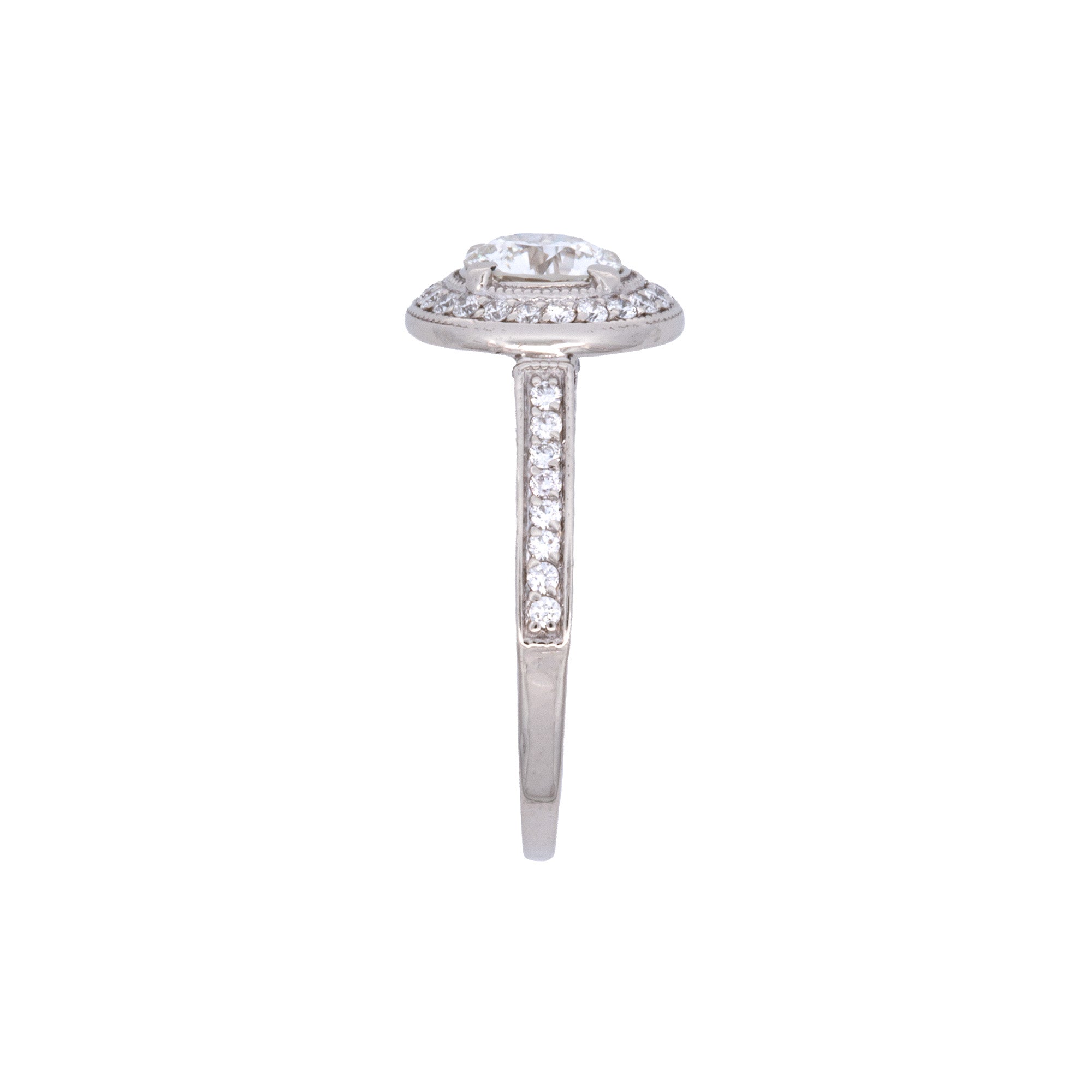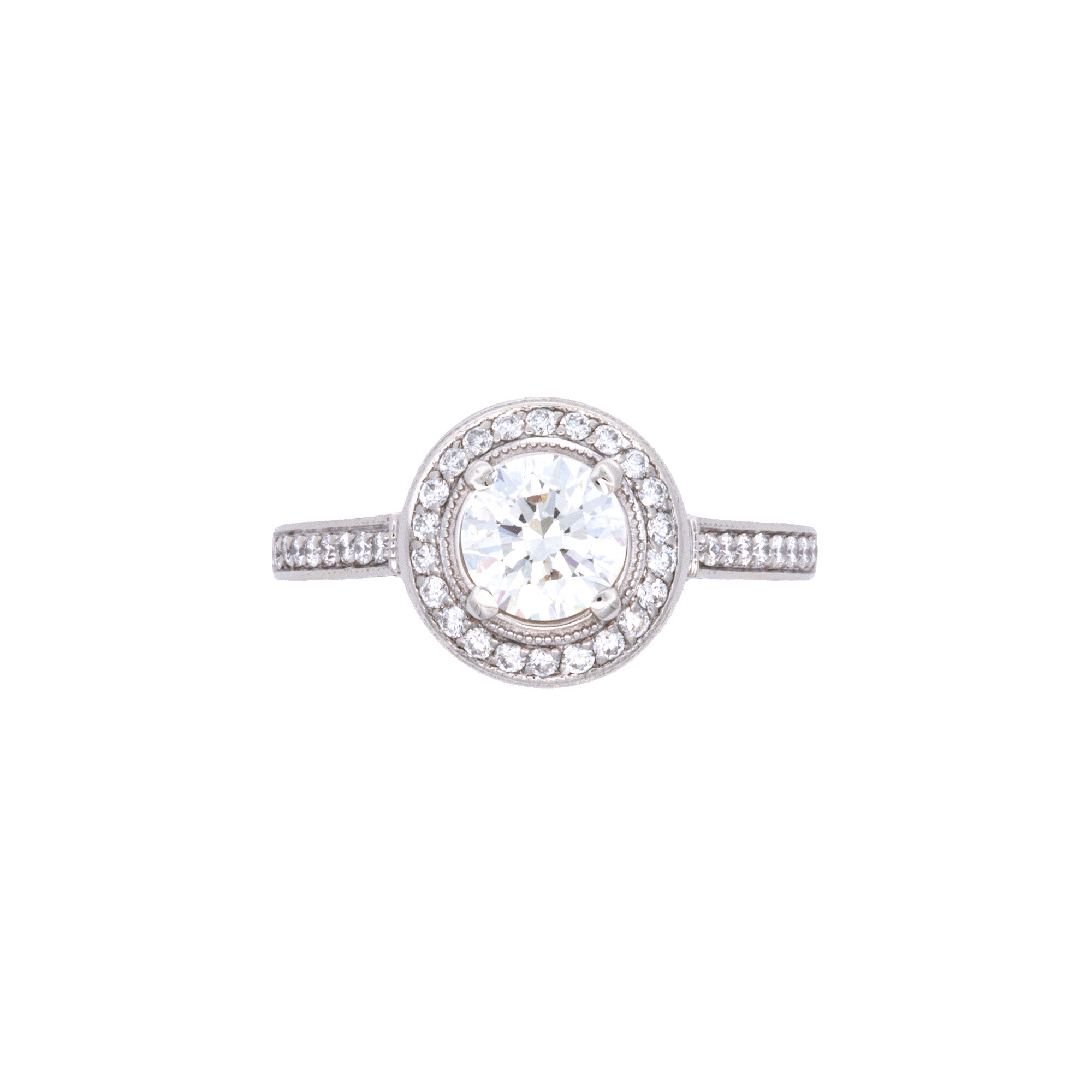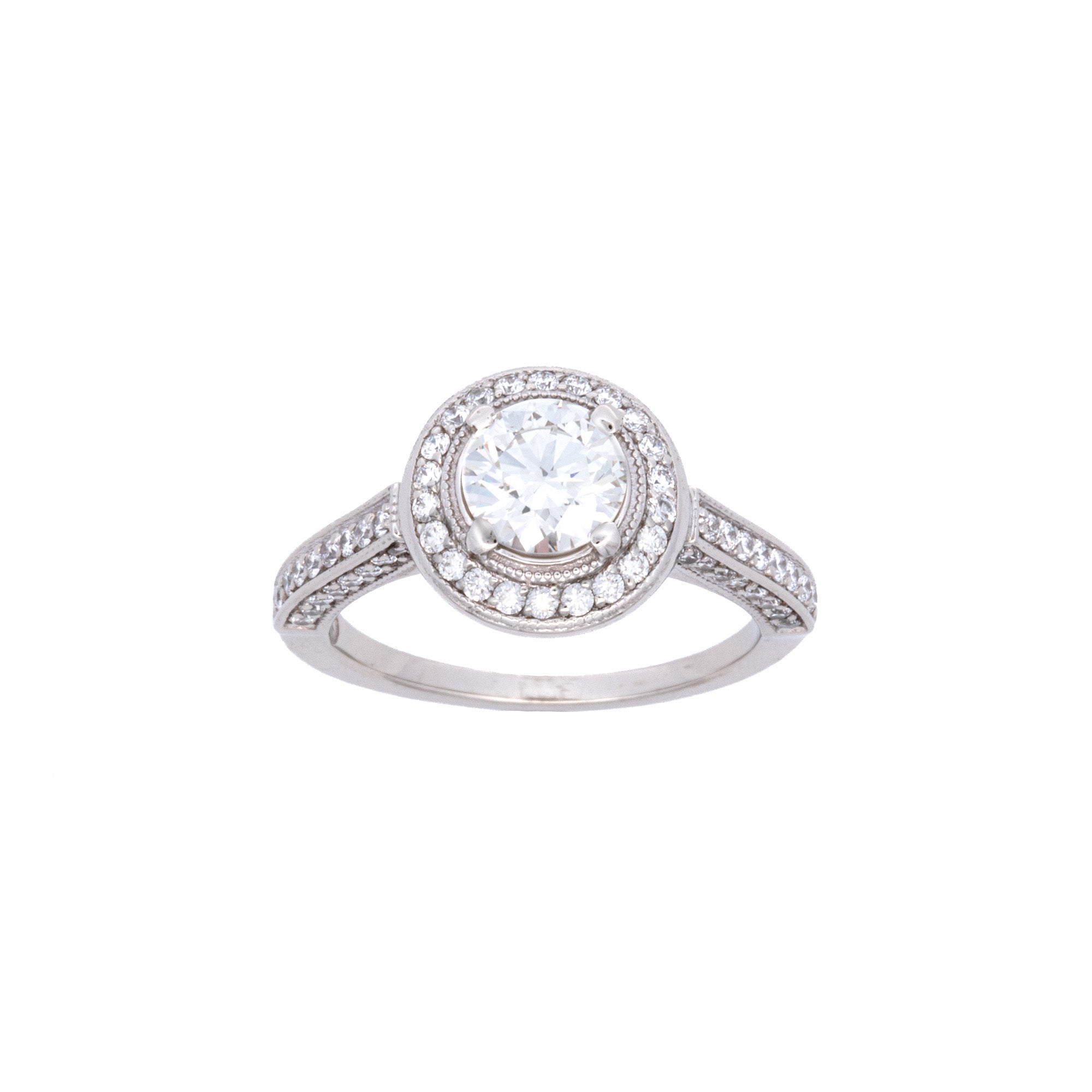 14K White Gold 'Lazare Kaplan & Sons' Round Brilliant Diamond And Micro Pave Diamond Ring. Center Diamond Weighs 0.96 Carats And Has H Color, VS2 Clarity. Micro Pave Diamonds Weigh A Total Of 0.70 Carats. Sizing Available.