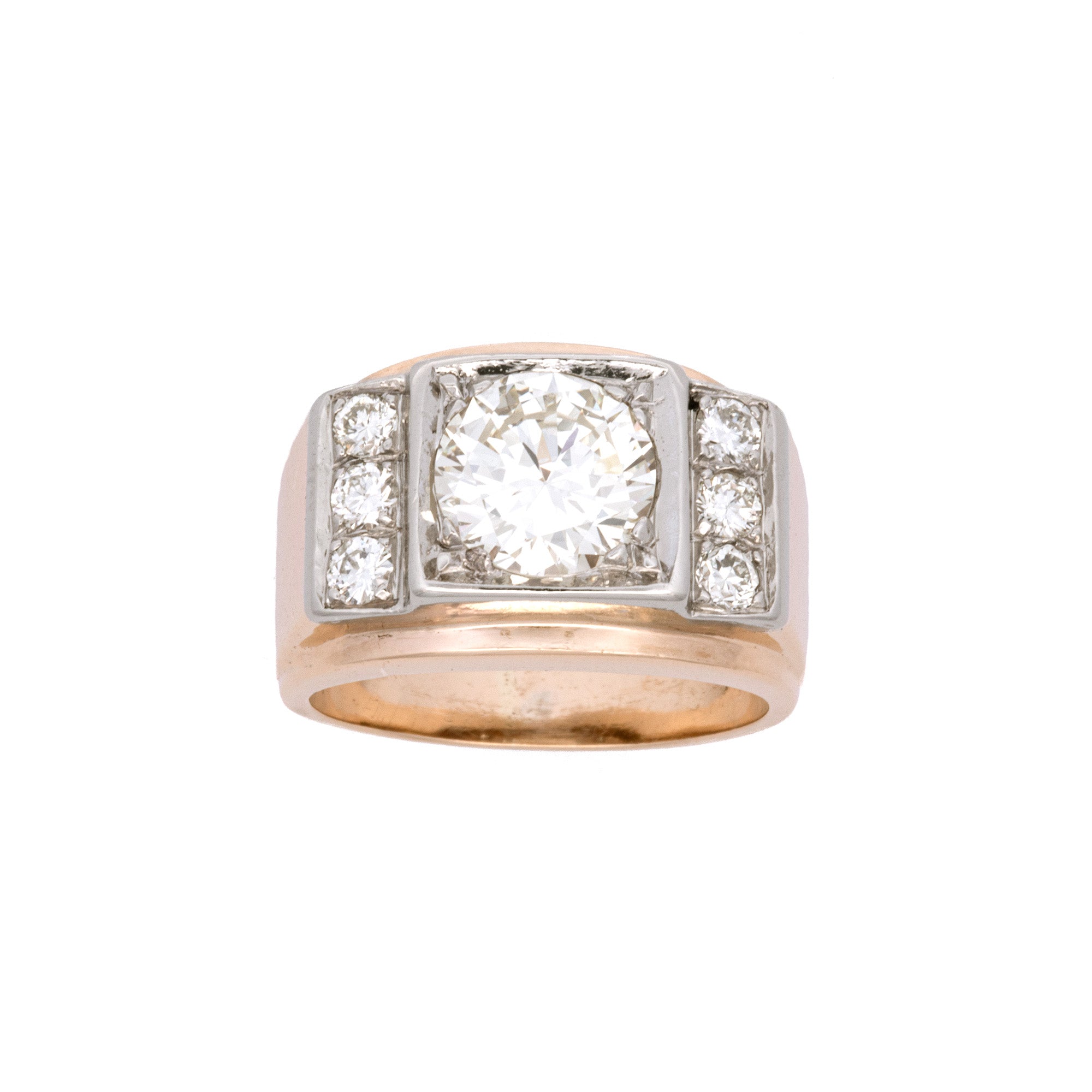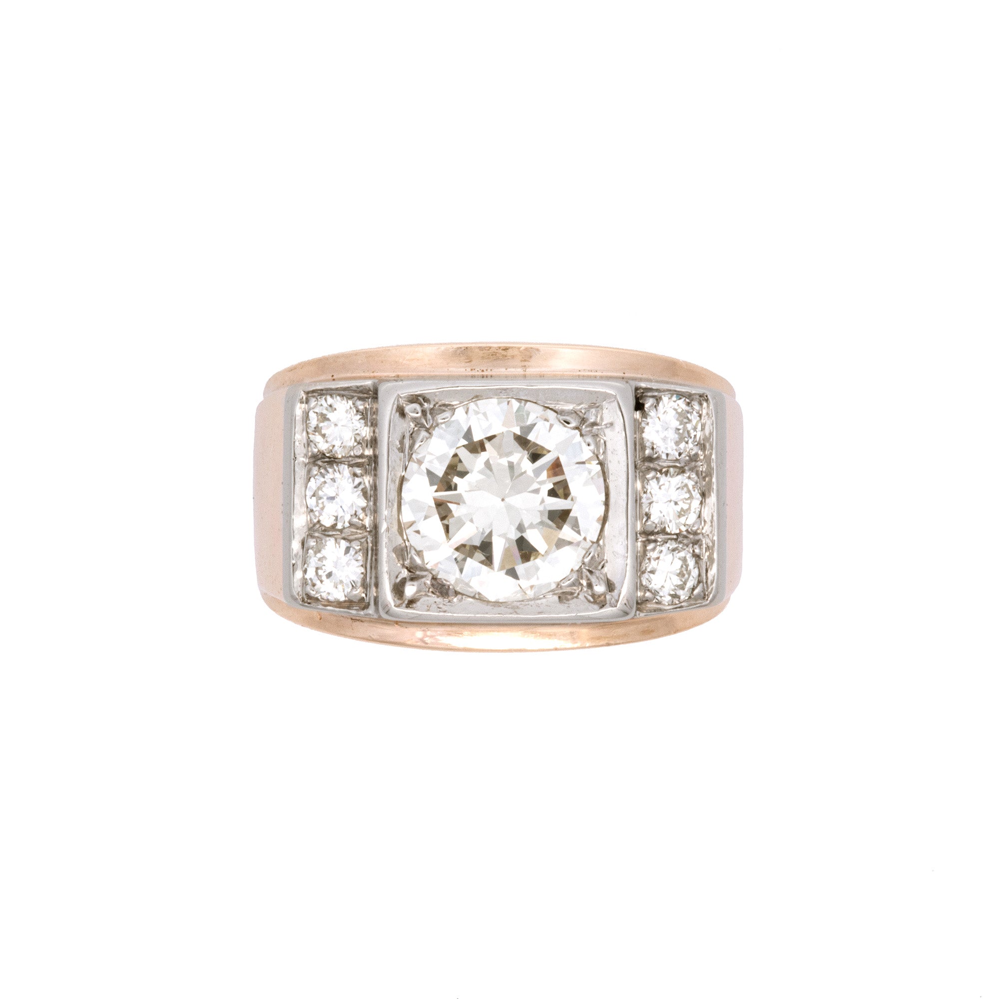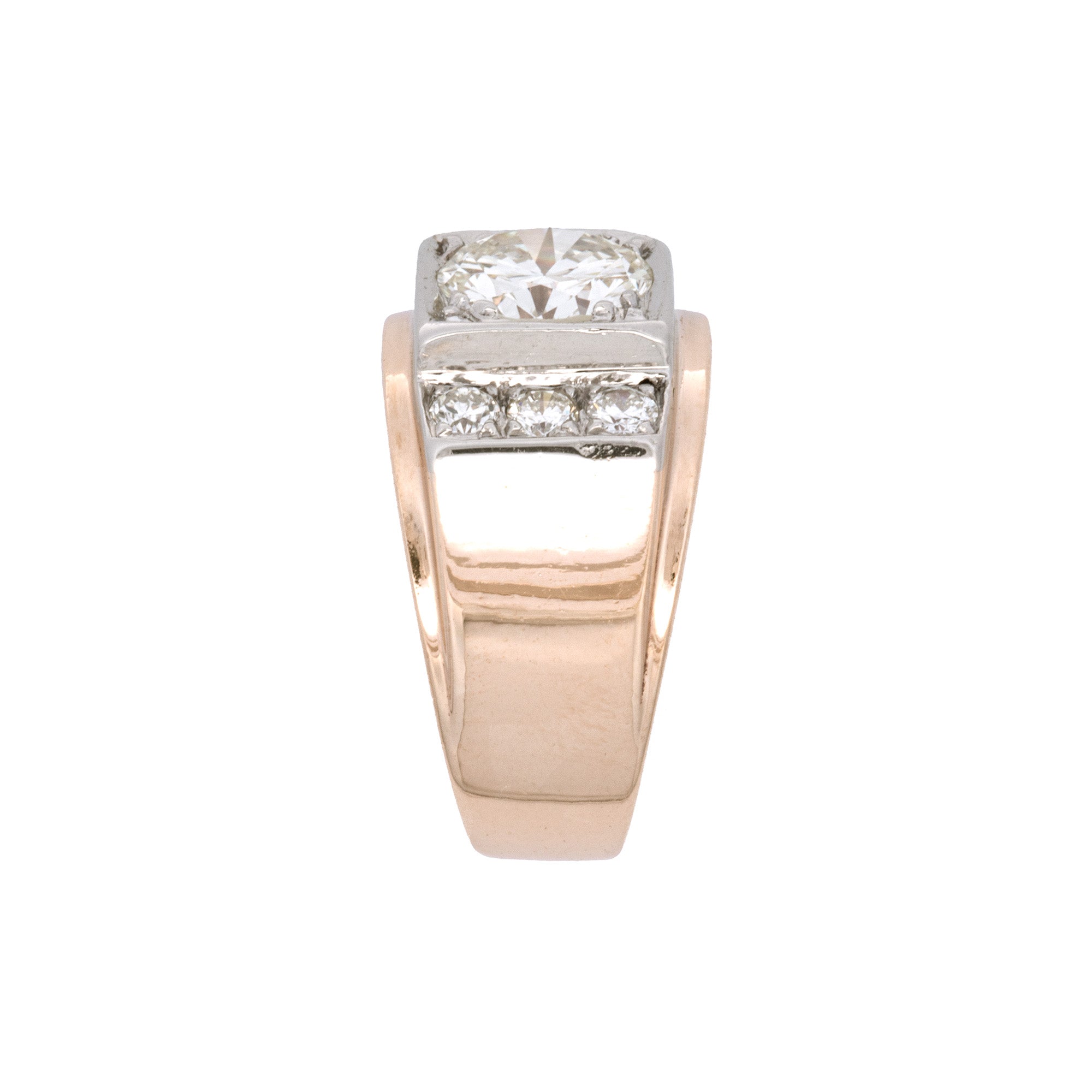 14K Yellow and White Gold Transitional Cut Diamond Men's Ring, Circa 1950