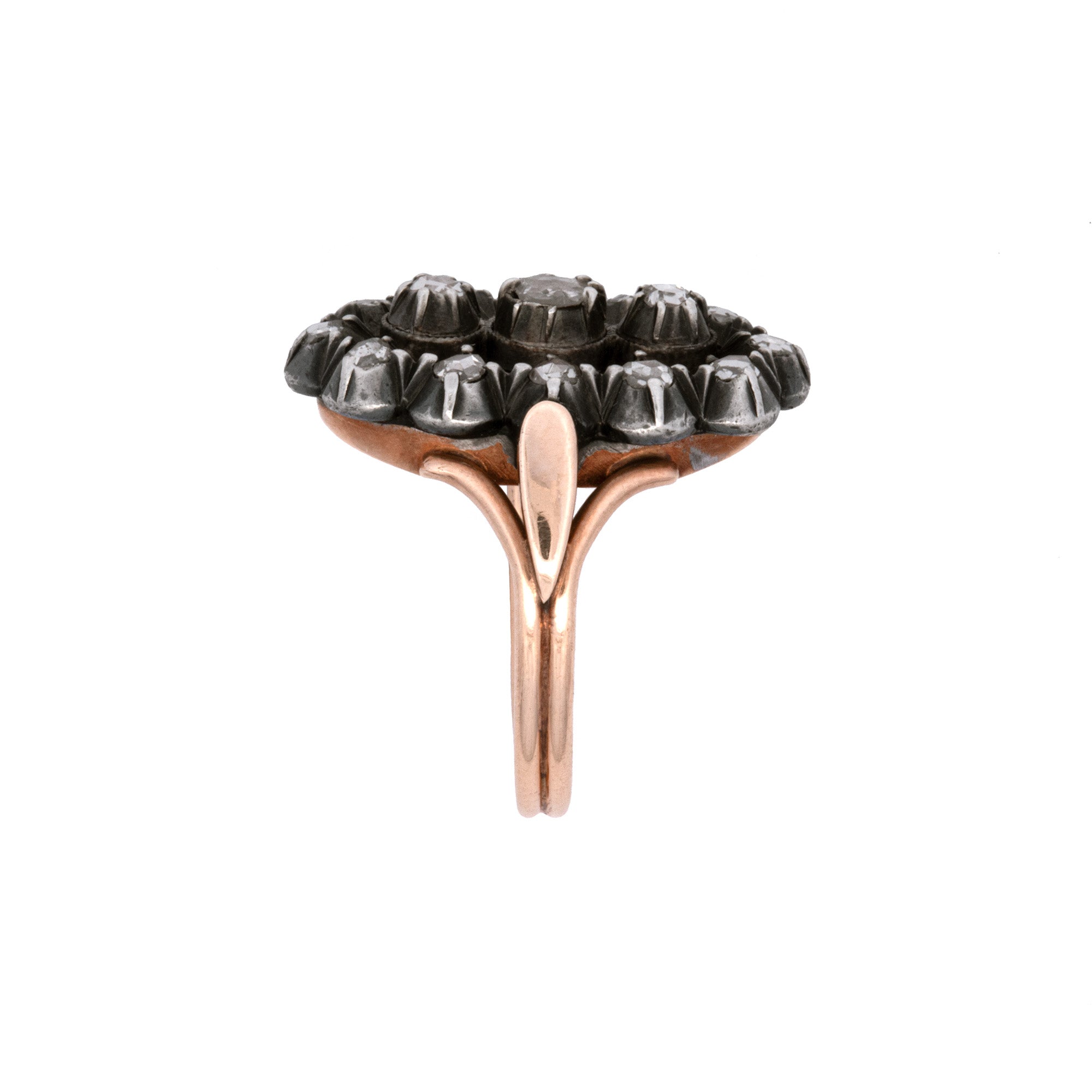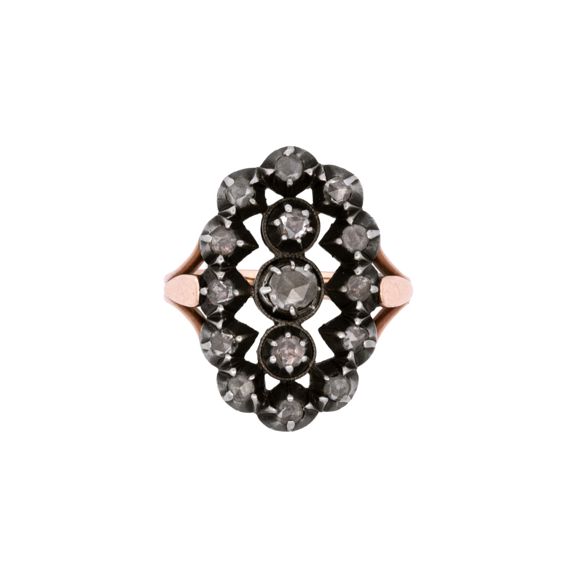 14K Yellow Gold And Oxidized Silver Rose Cut Diamond Ring