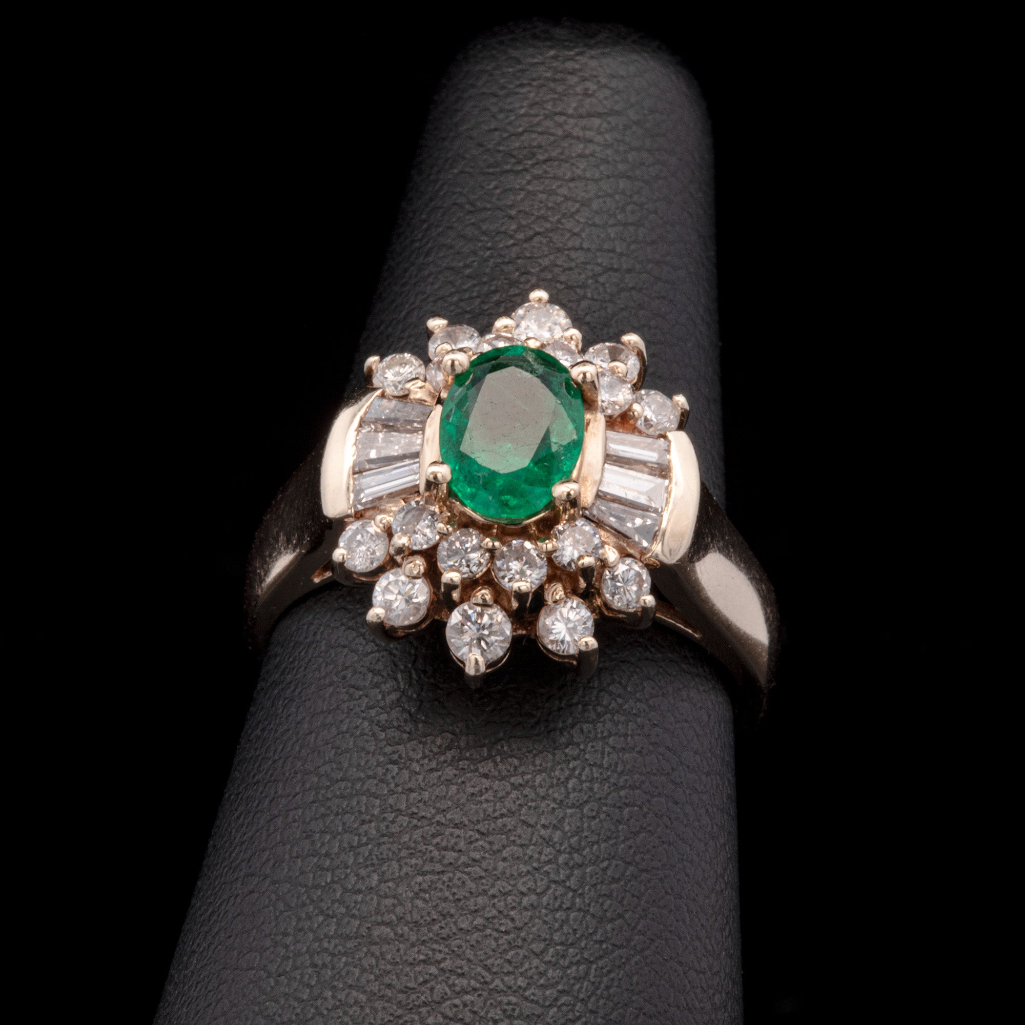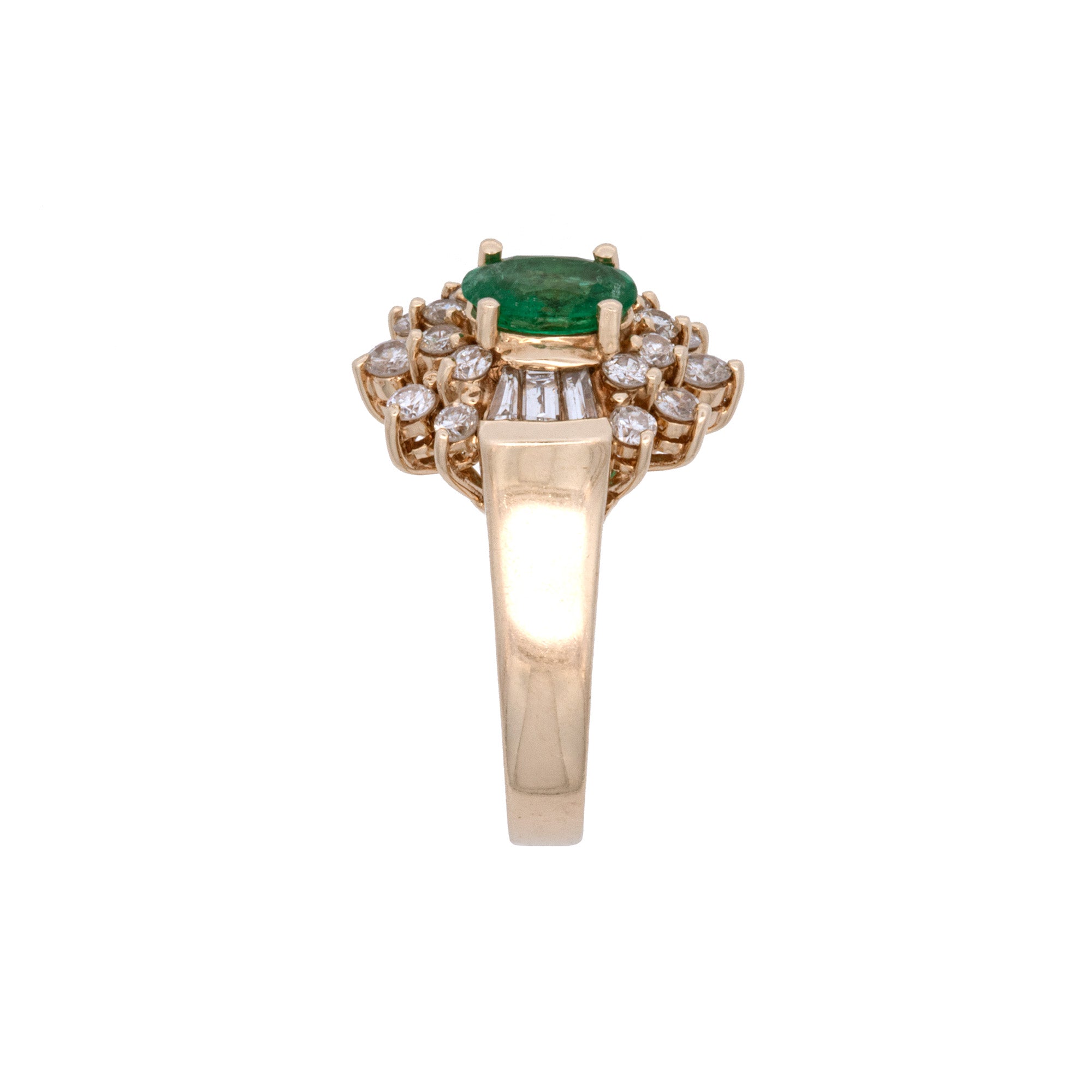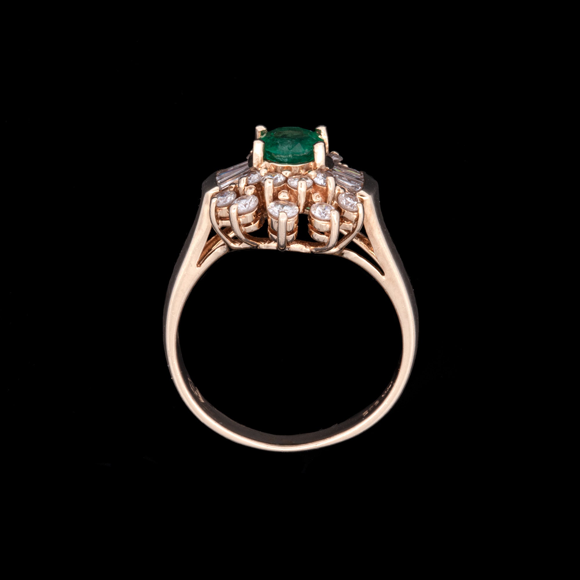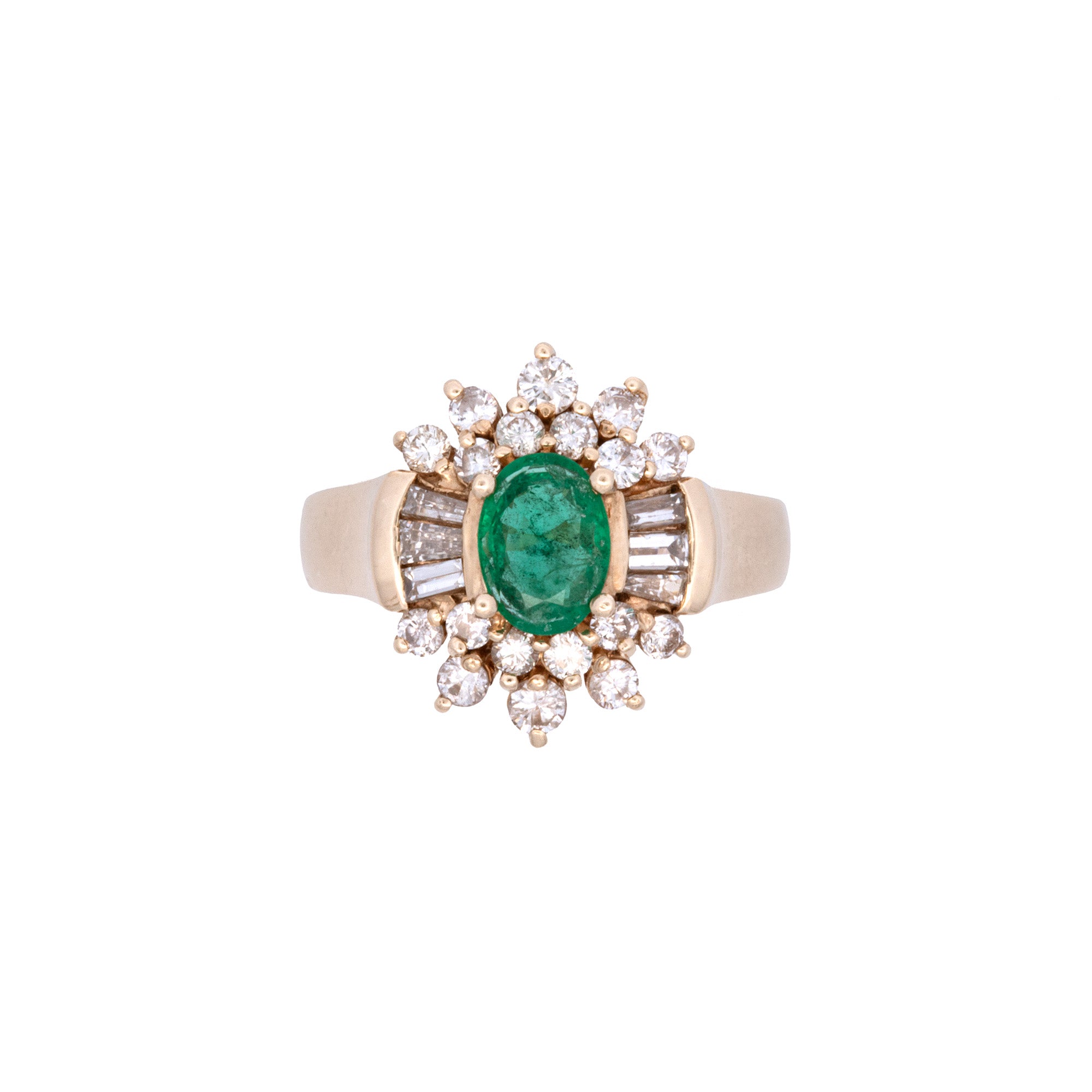 14K Yellow Gold Oval Emerald And Diamond Ring