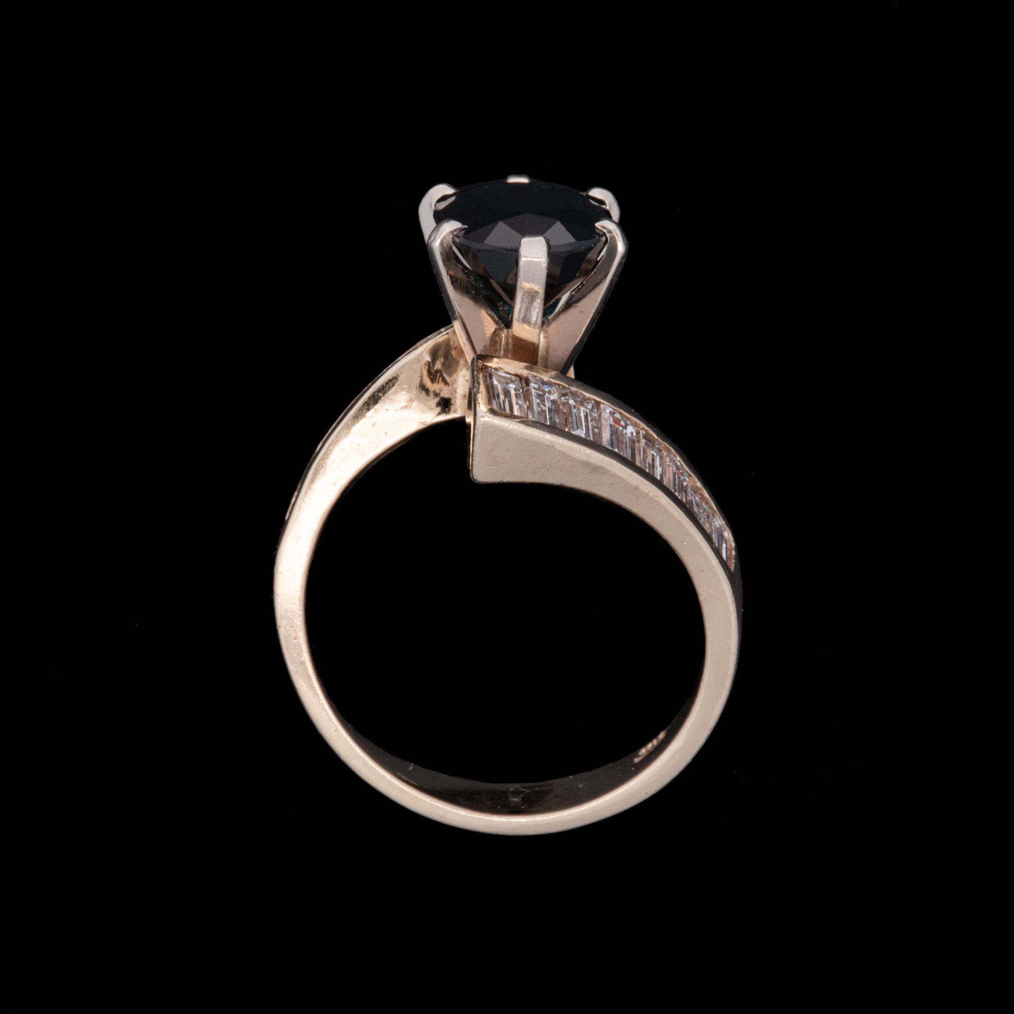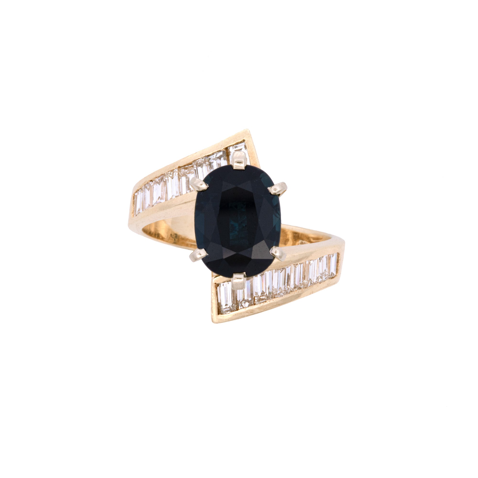 14K Yellow Gold Oval Sapphire And Baguette Diamond Ring