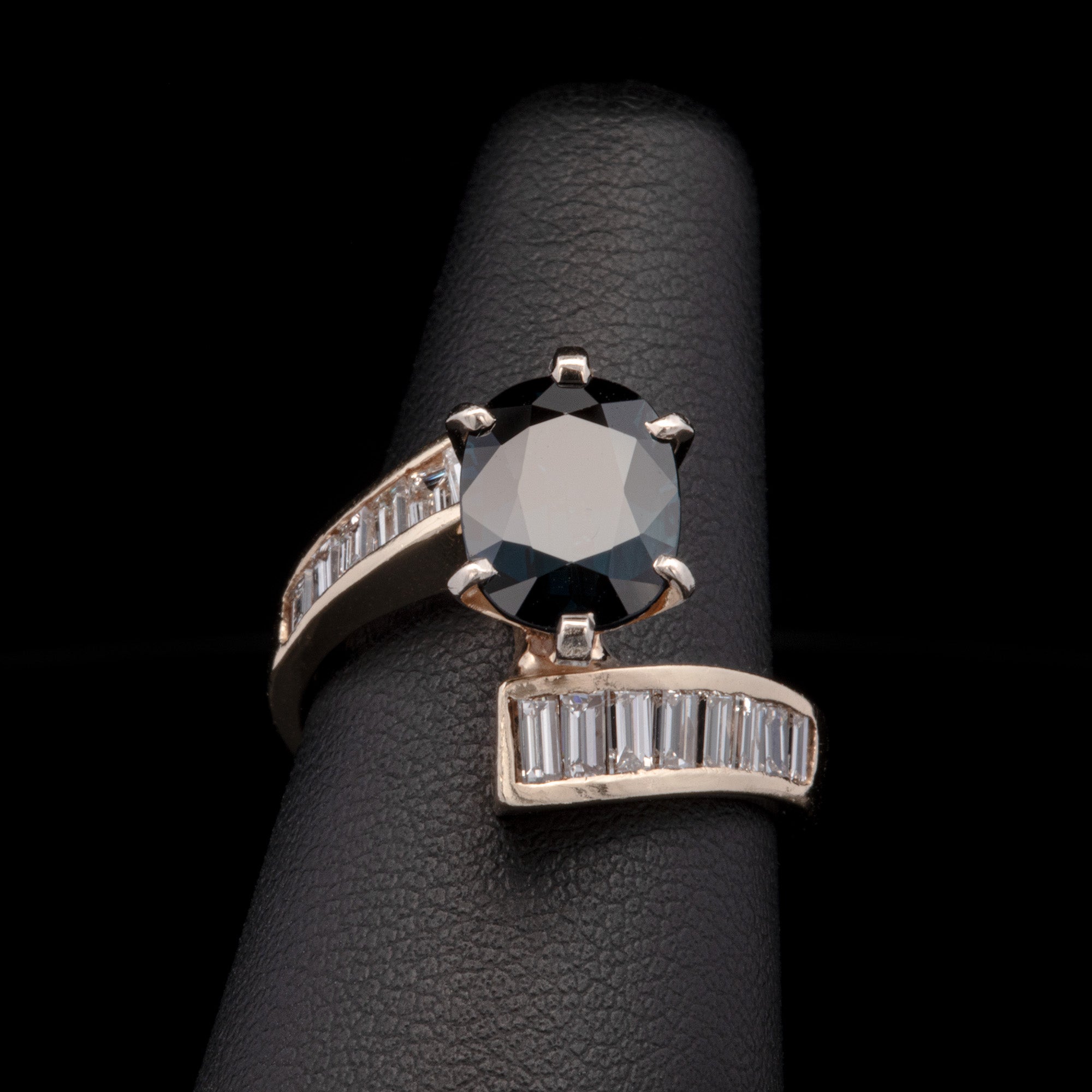 14K Yellow Gold Oval Sapphire And Baguette Diamond Ring. Sapphire Weighs 2.75 Carats. Diamonds Weigh A Total Of 1.25 Carats And Have G-H Color, SI1 Clarity. Sizing Available.