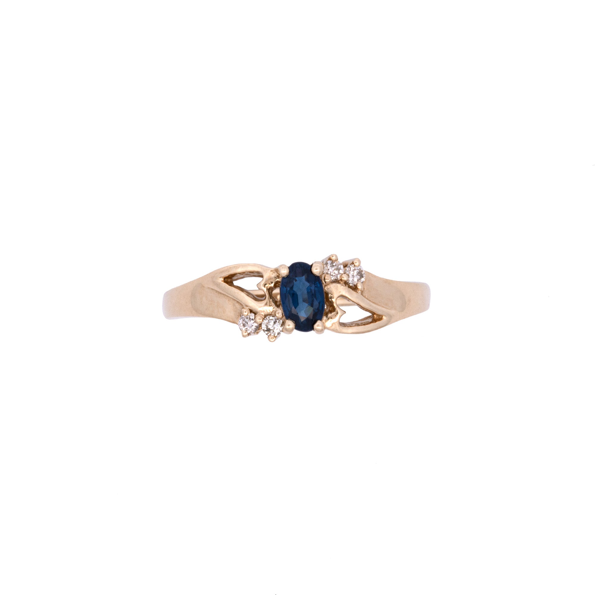 14K Yellow Gold Oval Sapphire And Diamond Ring. Sapphire Weighs 0.35 Carats. Diamonds Weigh A Total Of 0.06 Carats And Have G Color, SI1 Clarity. Sizing Available.