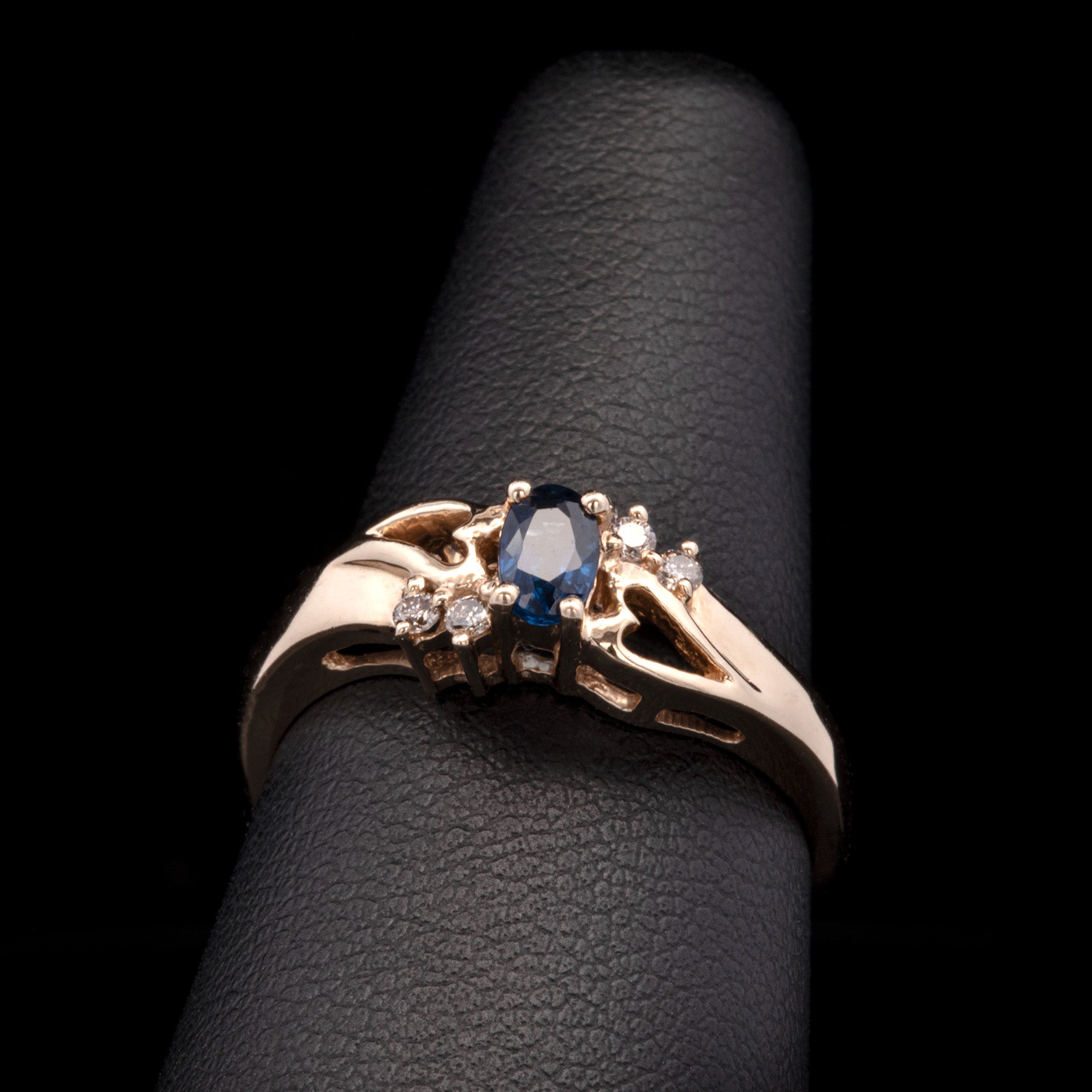 14K Yellow Gold Oval Sapphire And Diamond Ring
