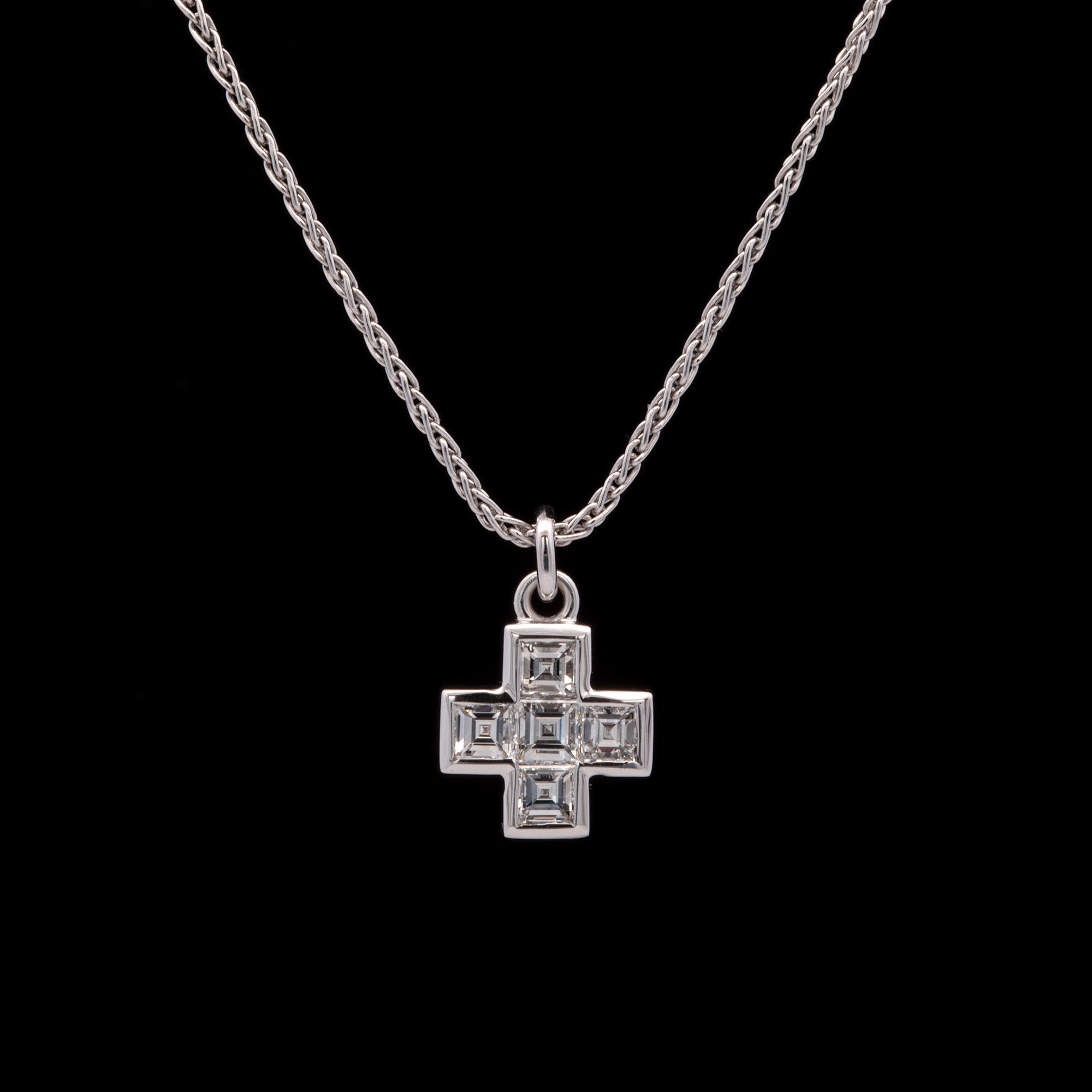 18K White Gold Vintage "Bulgari" Diamond Cross Pendant With 18 Inch Chain
