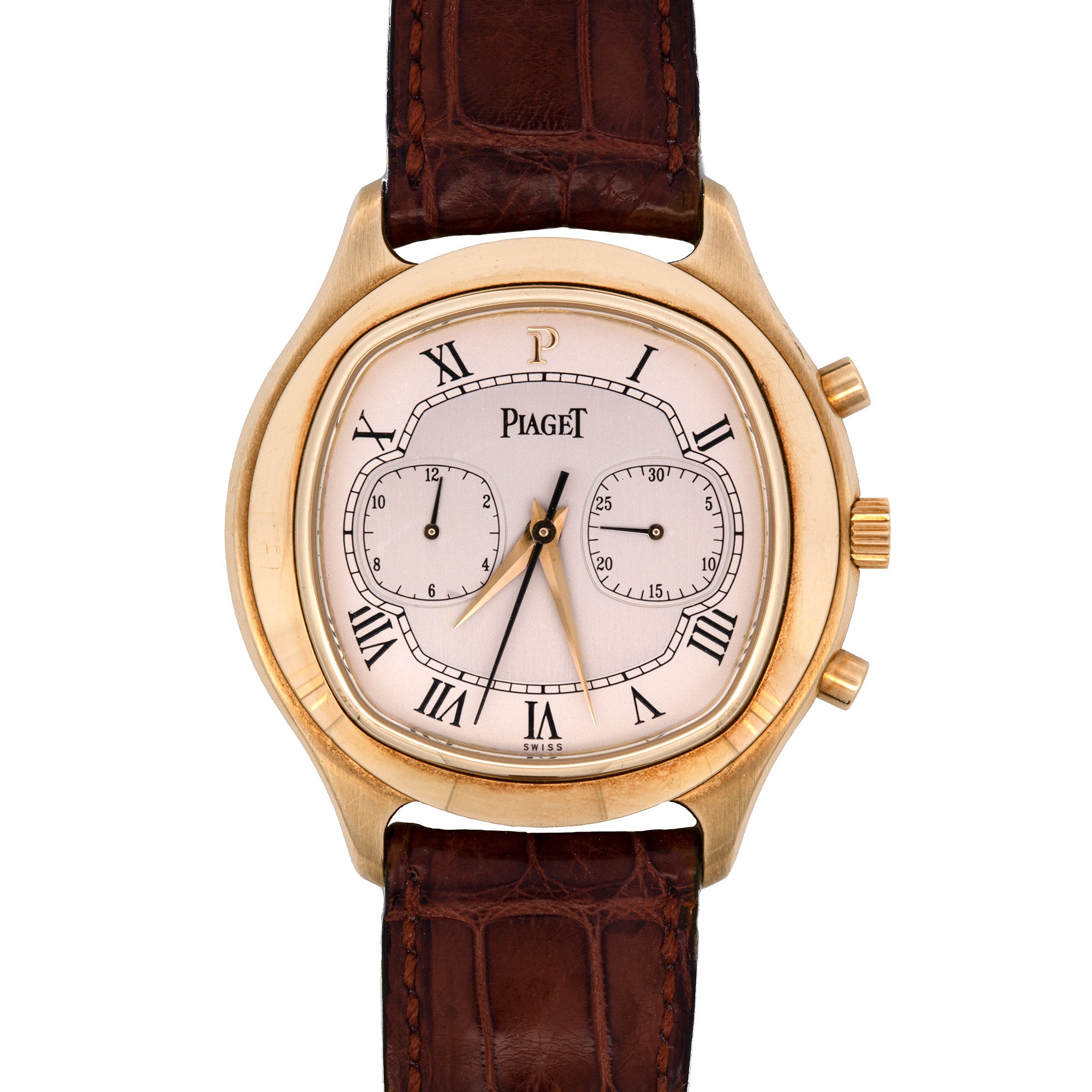 40mm 18K Yellow Gold 'Piaget' Emperador Chronograph Automatic Watch With Leather Strap, Circa 2008