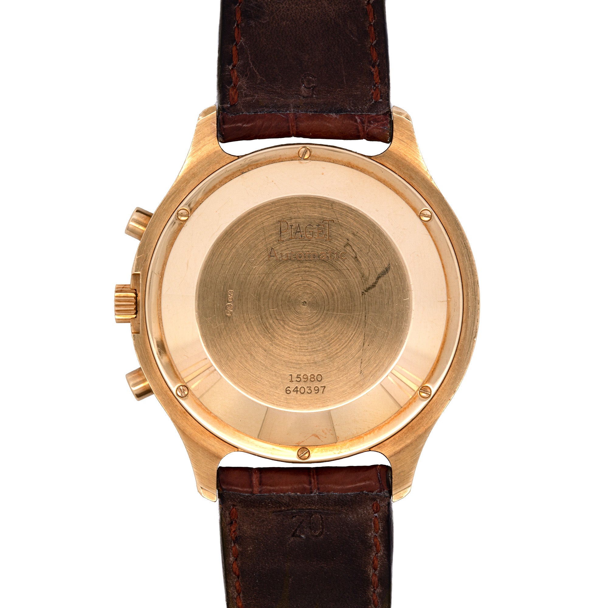 40mm 18K Yellow Gold 'Piaget' Emperador Chronograph Automatic Watch With Leather Strap, Circa 2008. Case Number 640397, Reference Number 15980, Movement 1188.