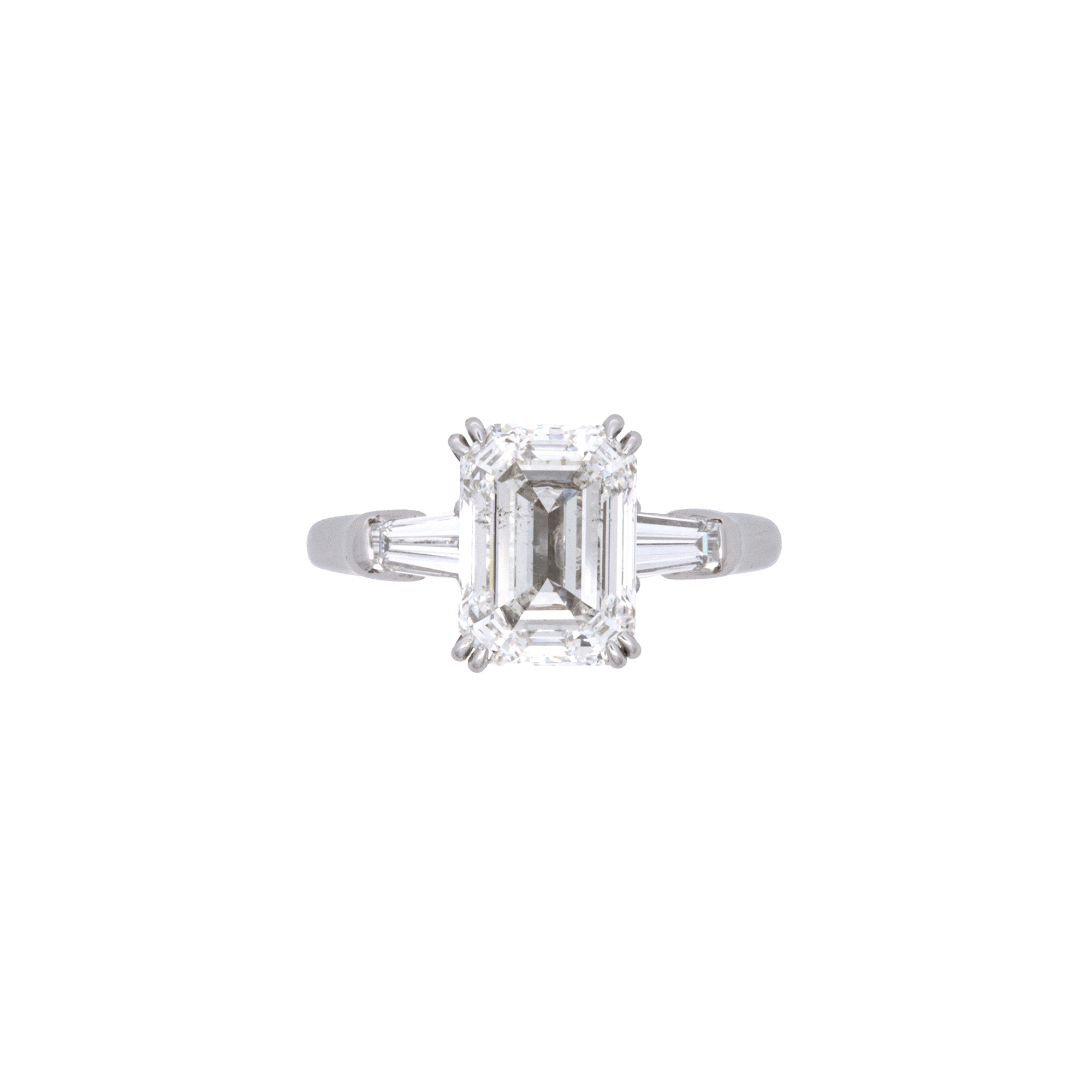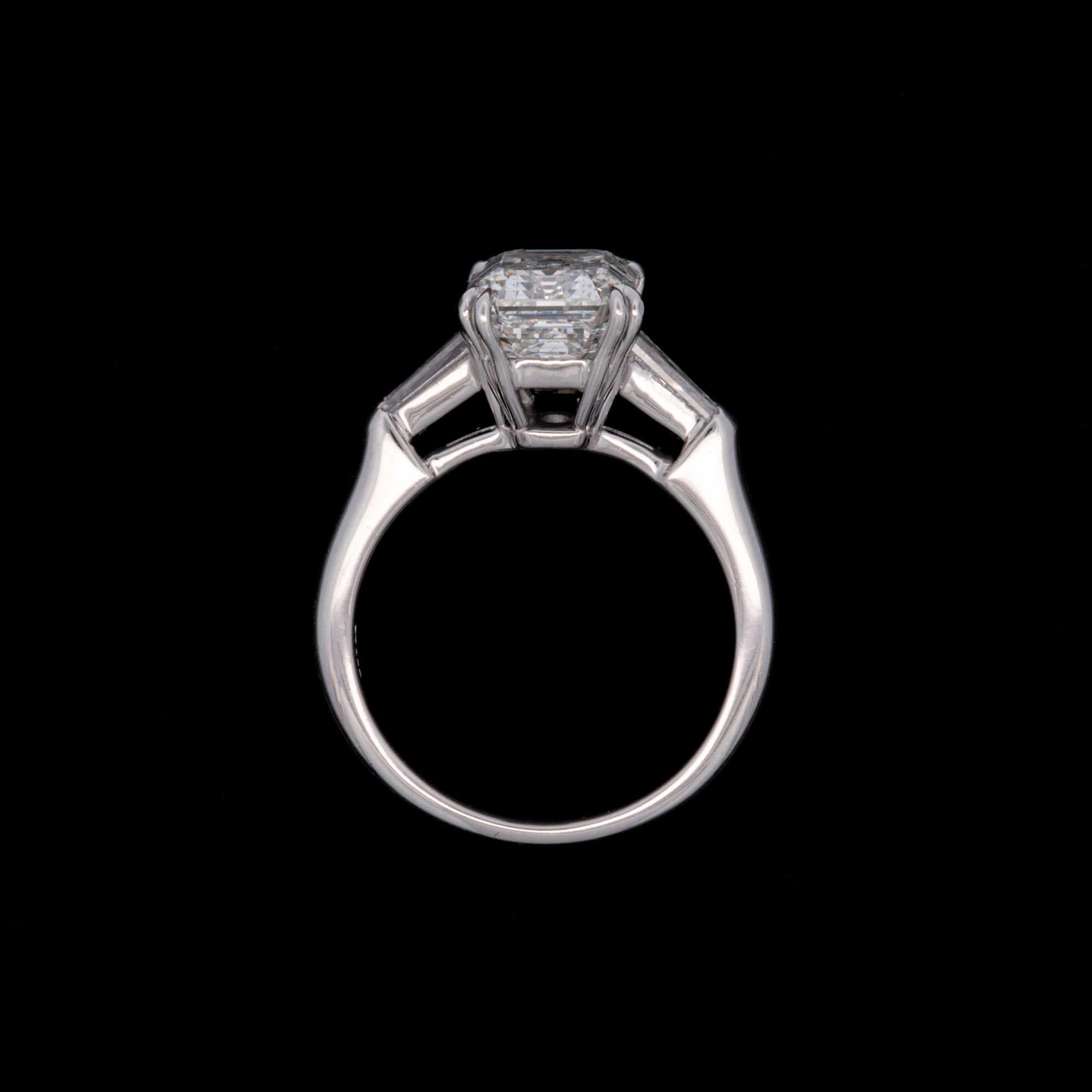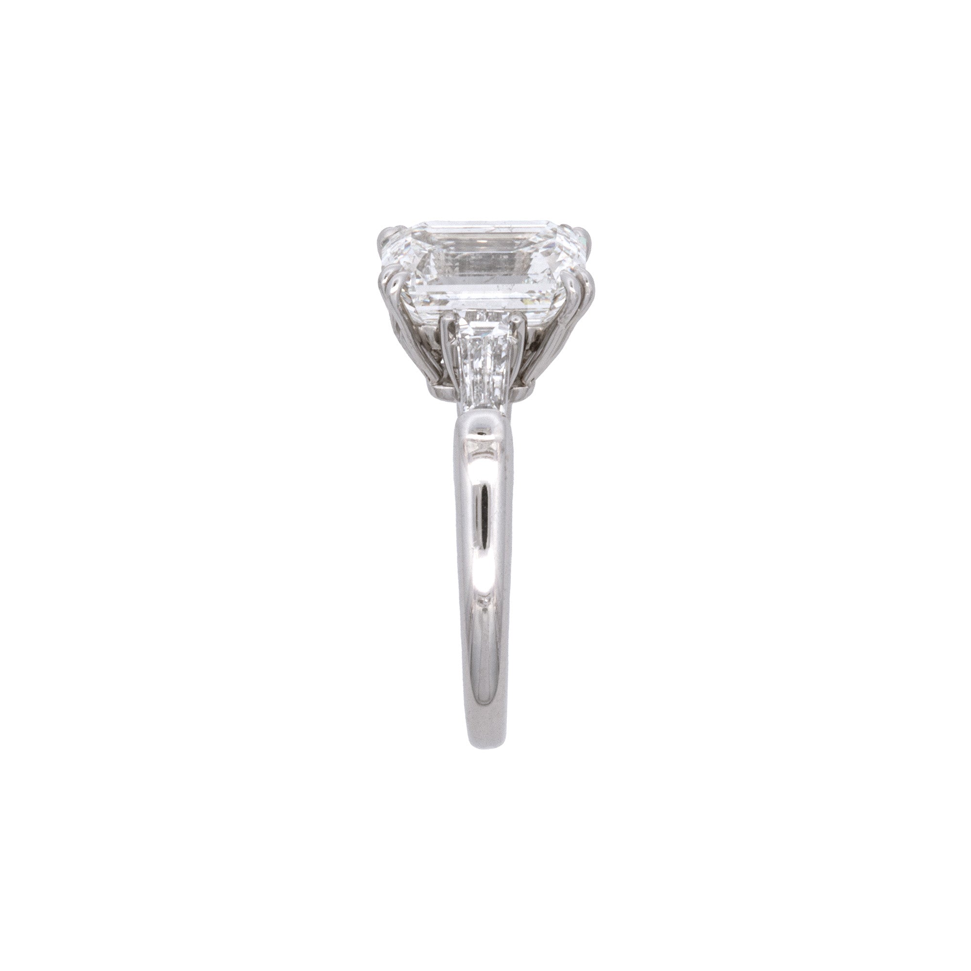 Platinum 3.02ctw Emerald Cut Diamond Engagement Ring With Tapered Baguettes