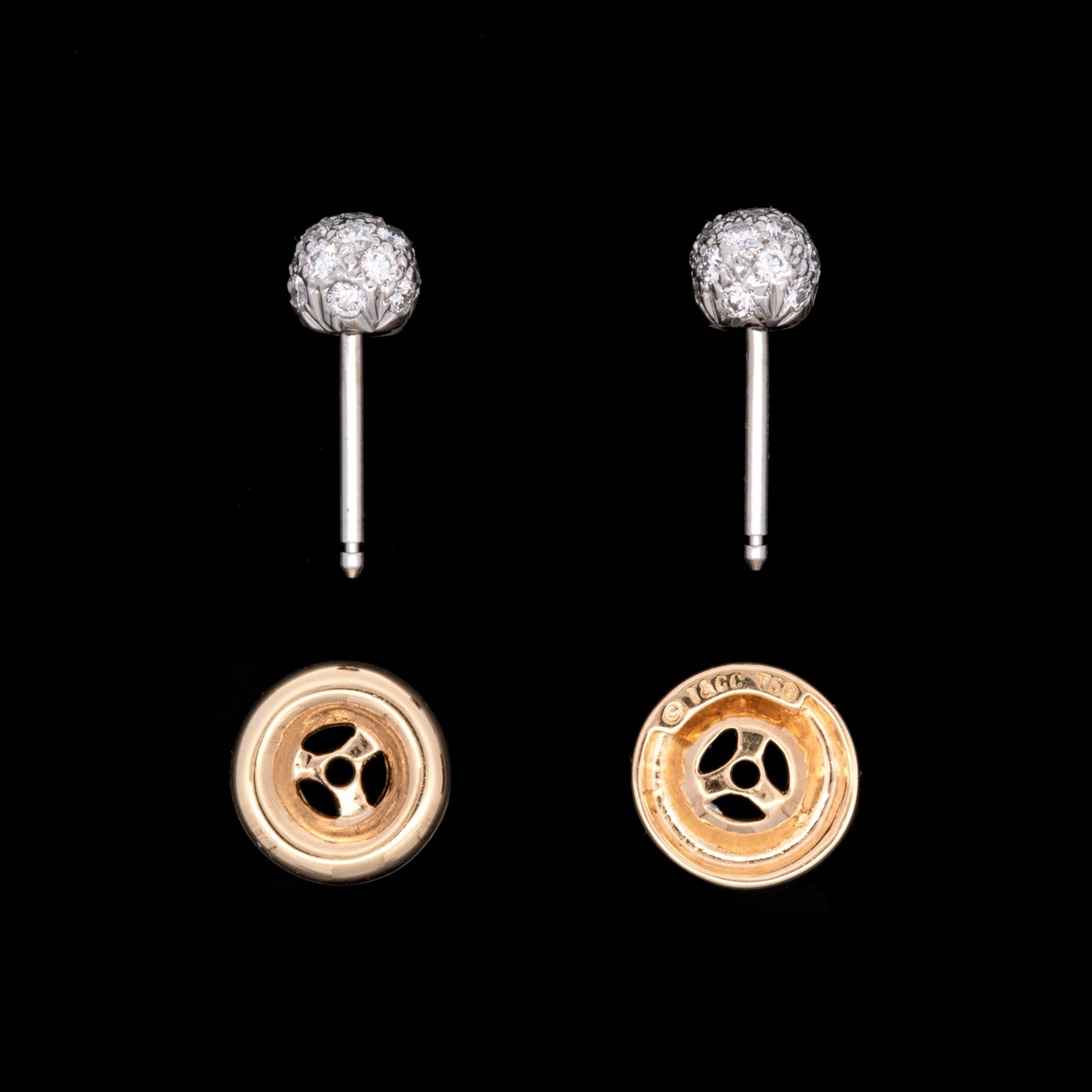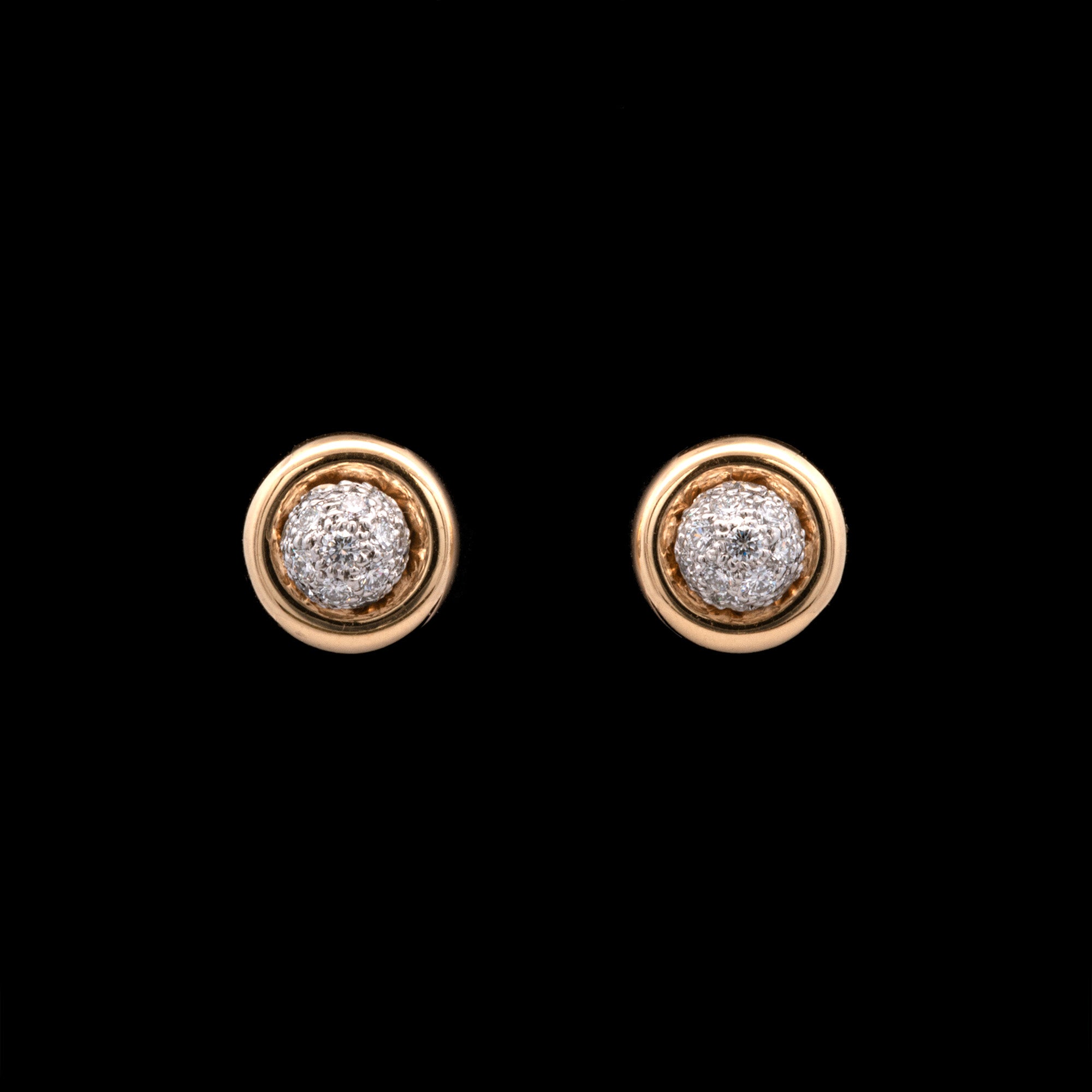 Platinum And 18K Yellow Gold "Tiffany & Co." Pave Diamond Ball Stud Earrings With Jackets. Diamonds Weigh A Total Of 1.05 Carats.