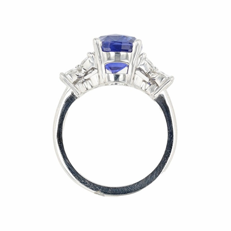 Platinum Ceylon "No Heat" Purple Sapphire And Diamond Ring. Sapphire Weighs 4.83 Carats. Diamonds Weigh A Total Of 0.75 Carats. Sizing Available.