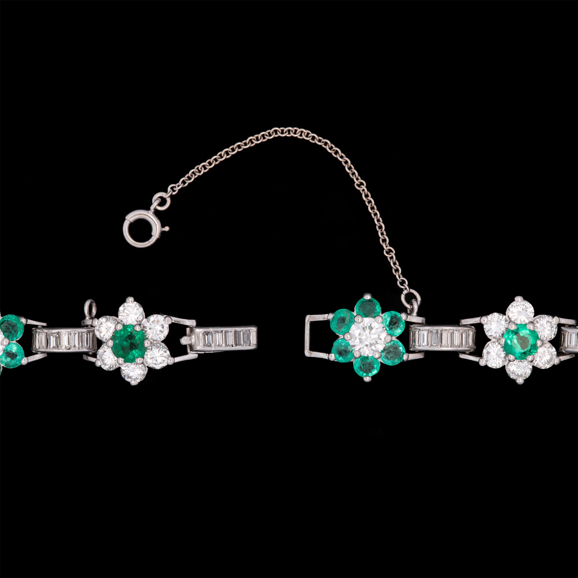 Platinum Emerald And Diamond Floral Cluster Bracelet