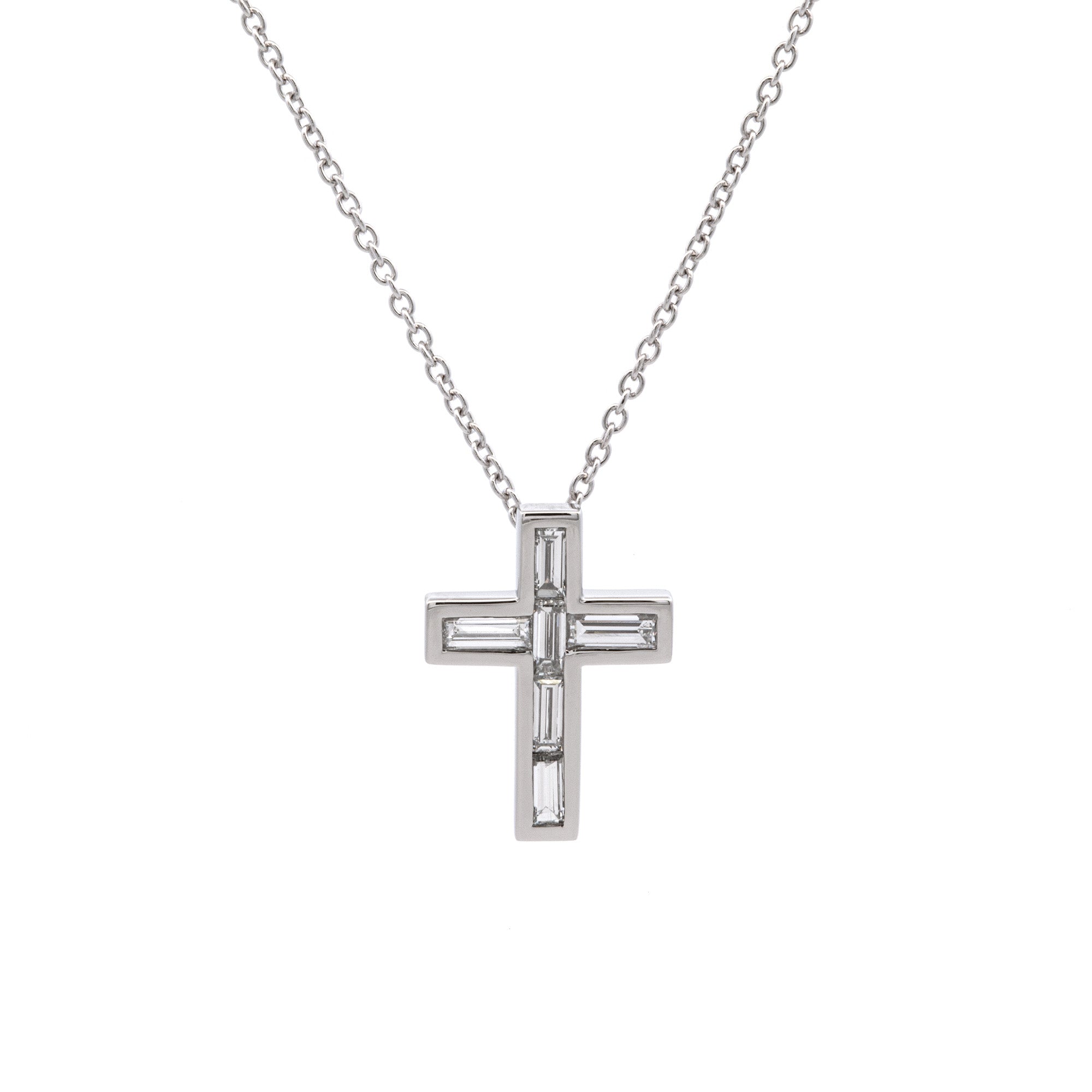 Custom Channel Set Baguette Diamond Cross Pendant With 17 Inch Chain