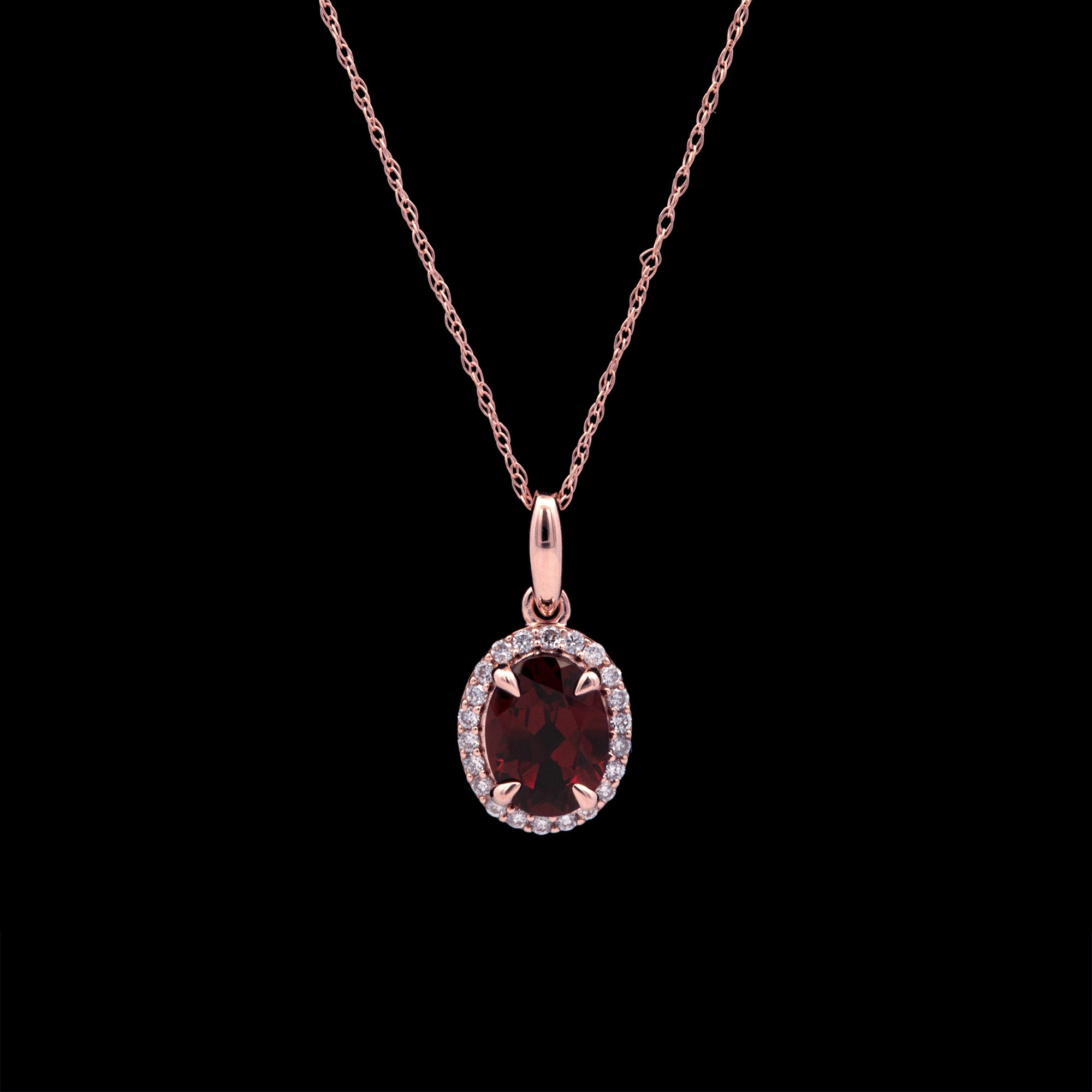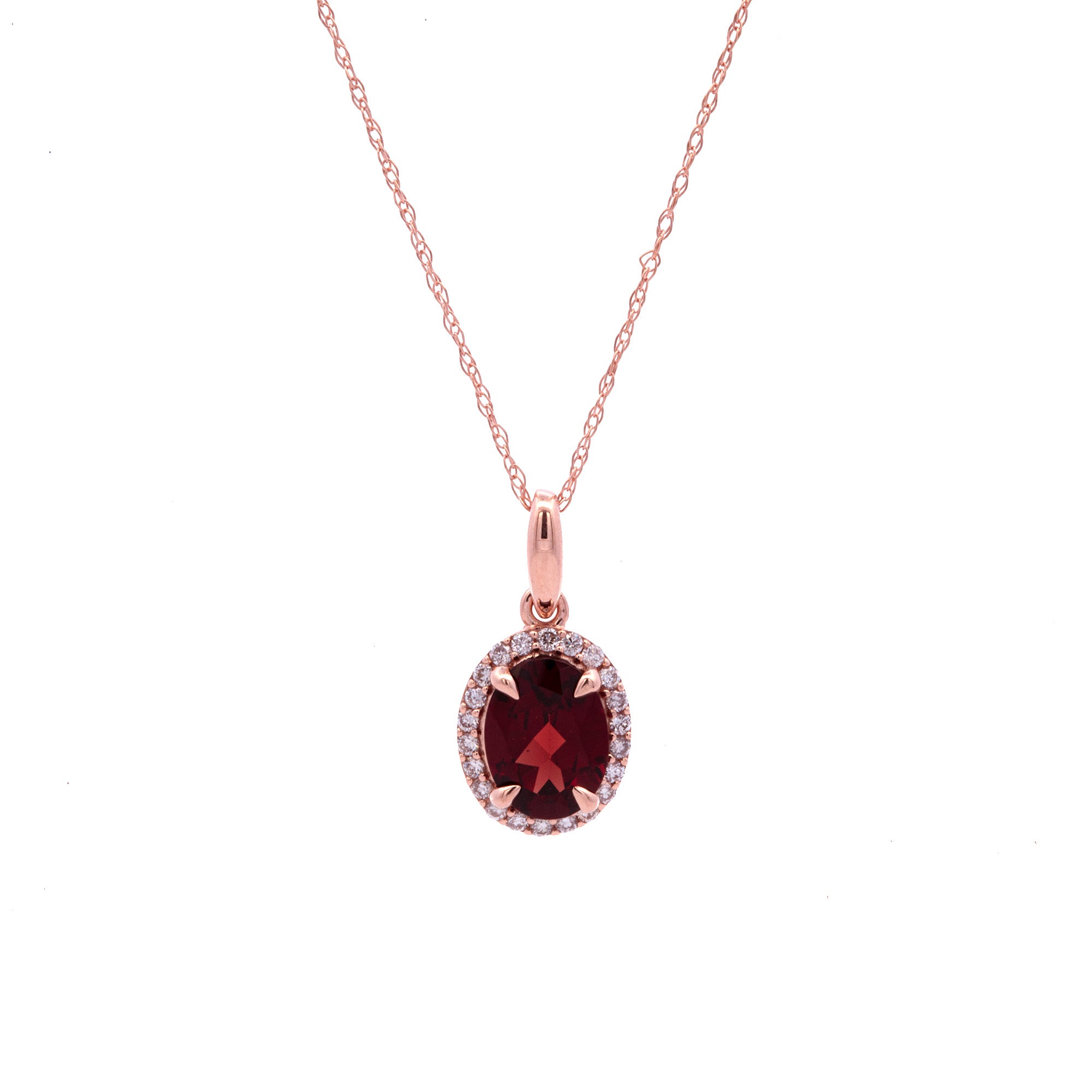 14K Rose Gold Garnet And Diamond Halo Pendant With 19 Inch Chain