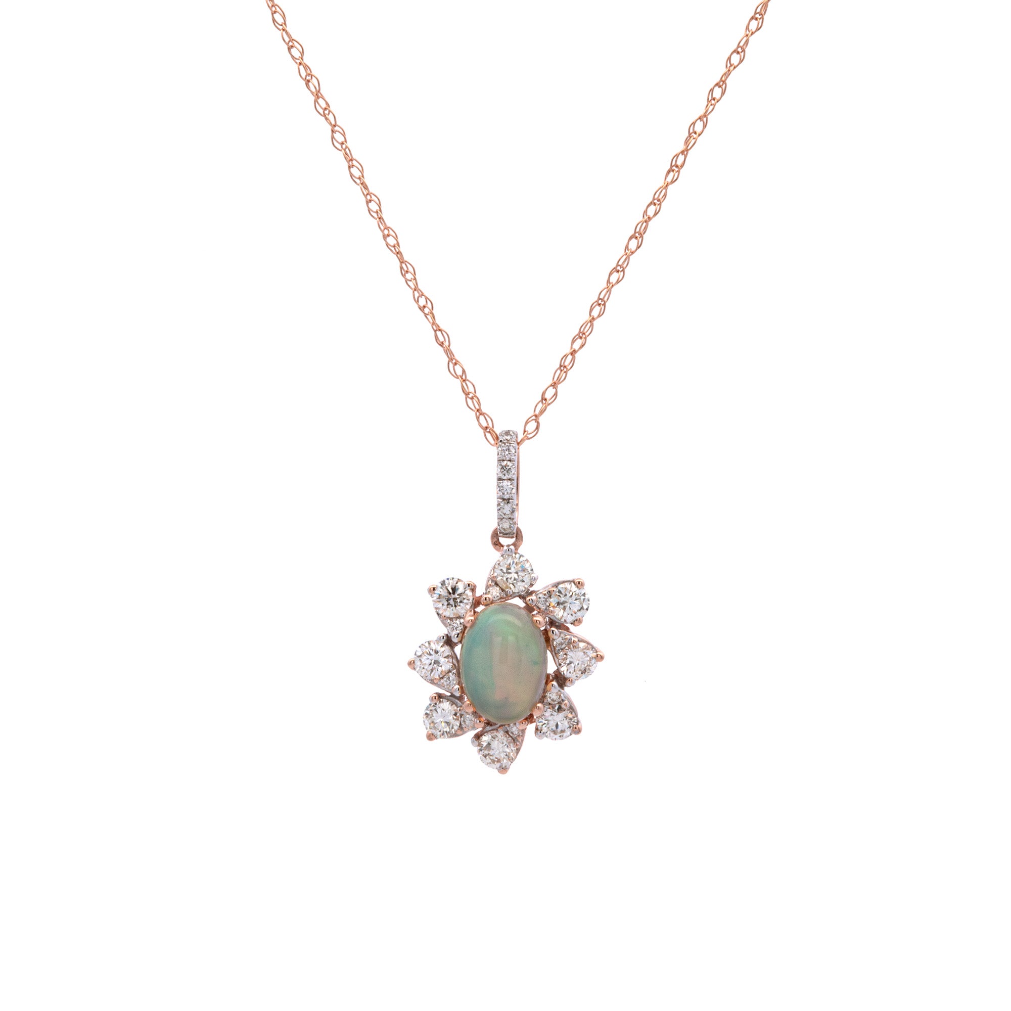 14K Rose Gold Opal And Diamond Pendant With 18 Inch Chain