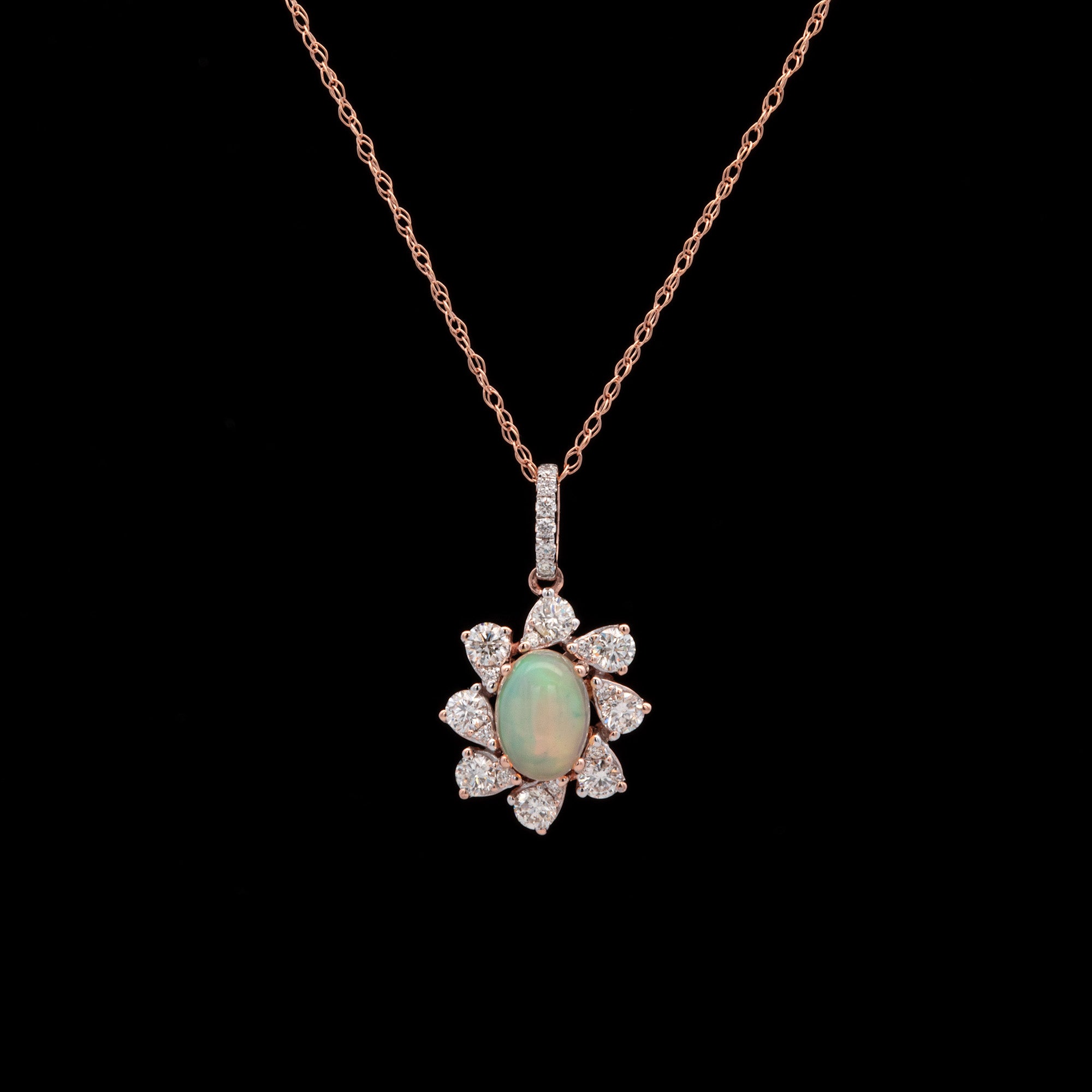 14K Rose Gold Opal And Diamond Pendant With 18 Inch Chain. Opal Weighs 0.50 Carats. Diamonds Weigh A Total Of 0.47 Carats And Have G-H Color.