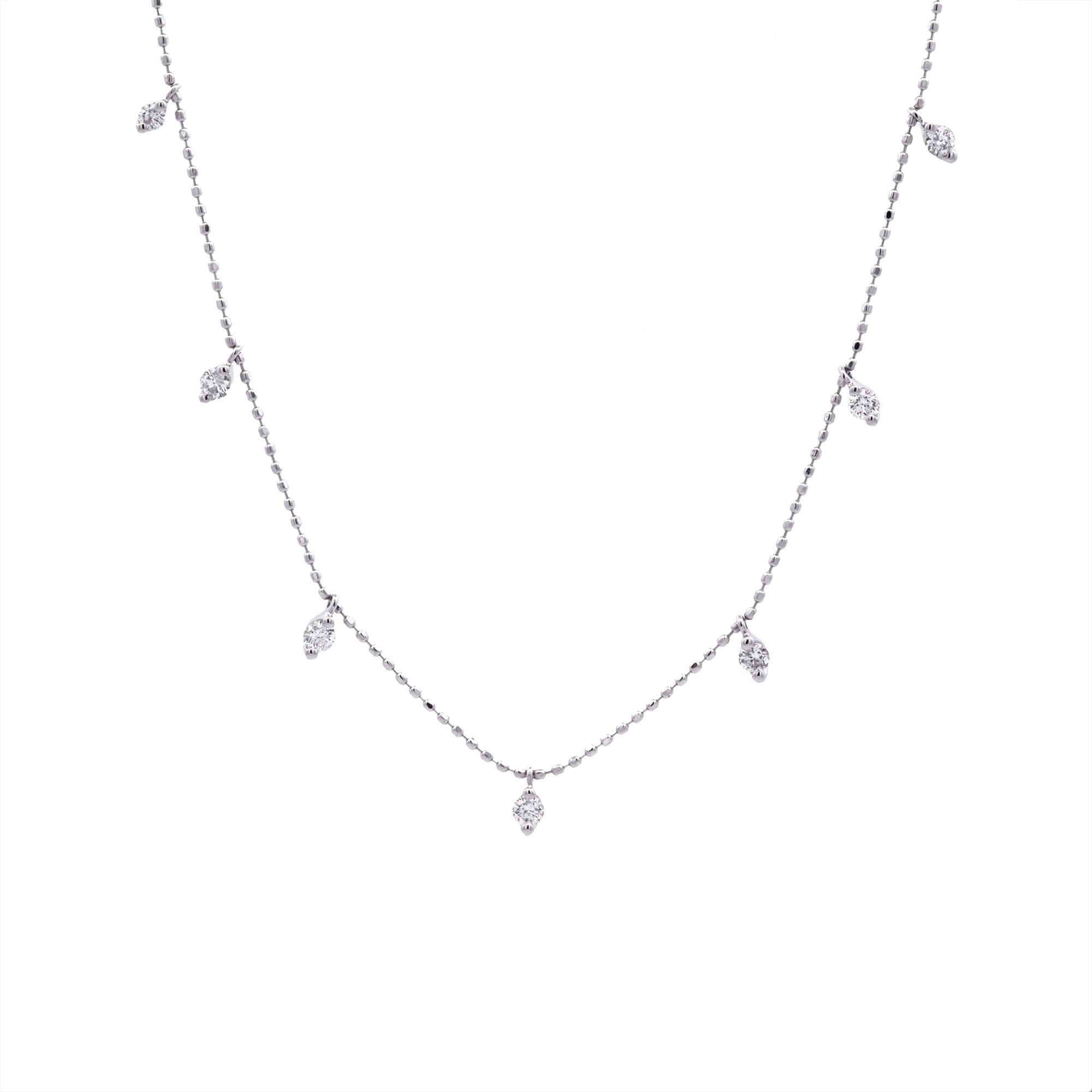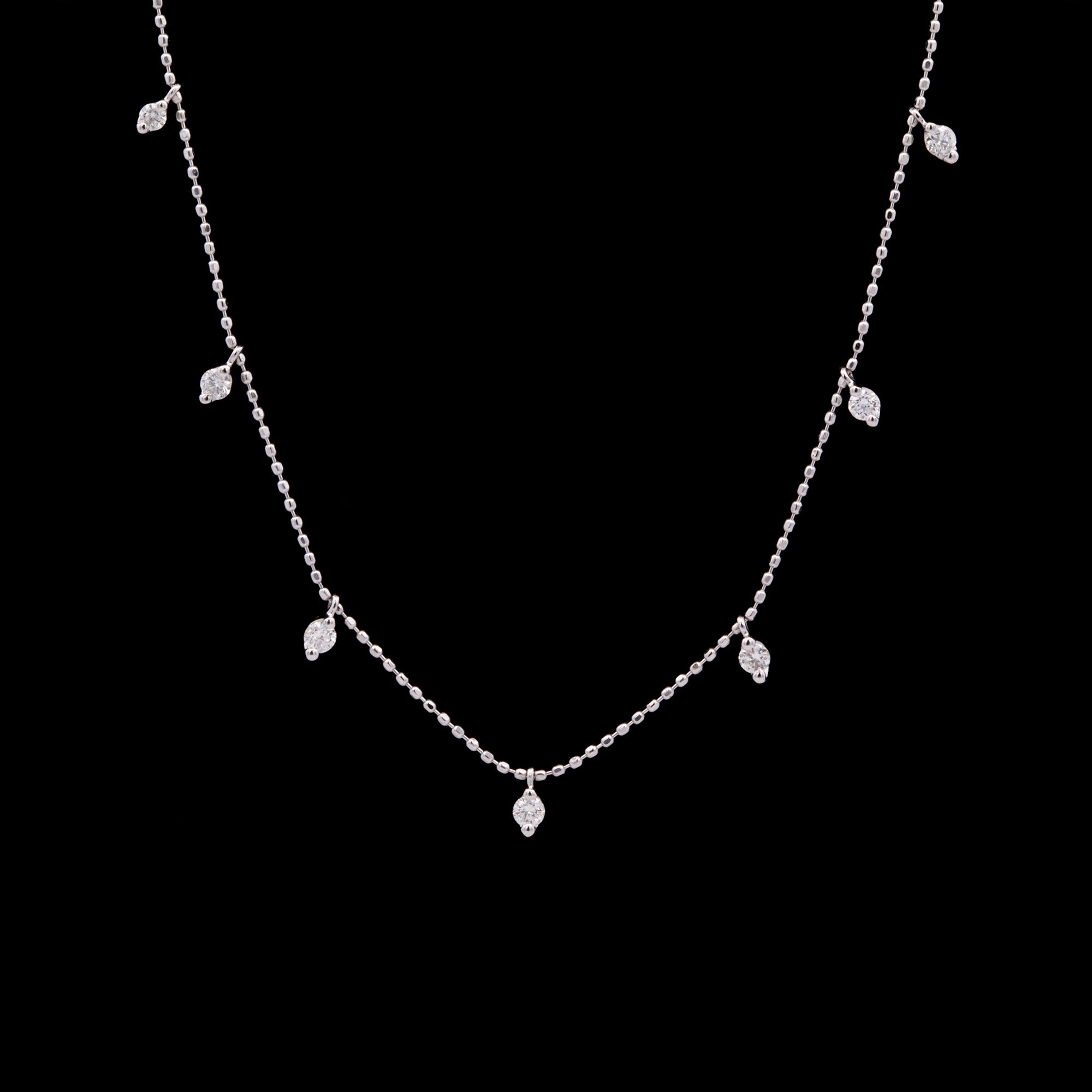 14K White Gold Diamond Dangle Station Necklace With Adjustable Chain